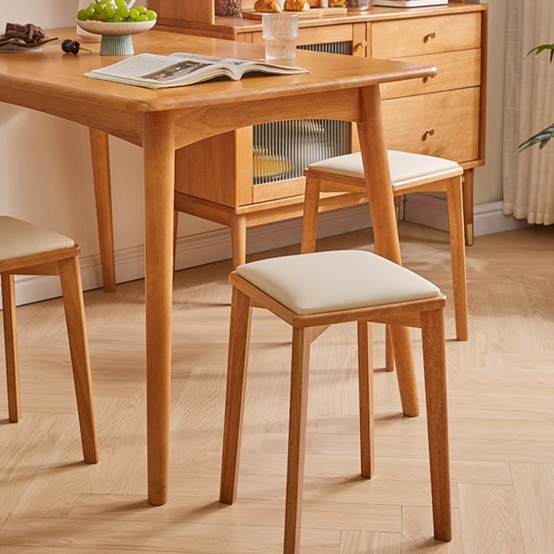 [순수 원목 방수 PU 가죽 스툴 표면] 통나무 다리 + 커피 컬러 스툴 표면