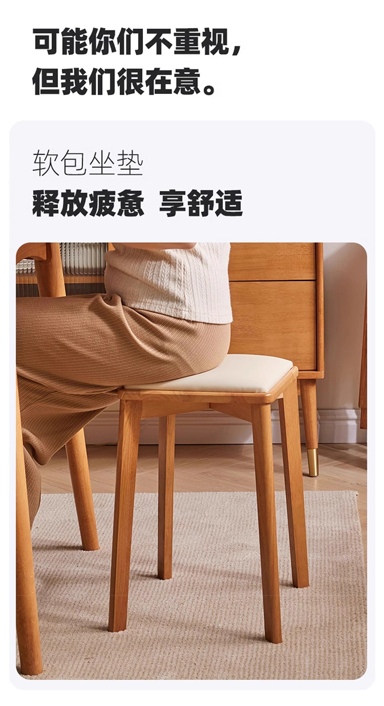 [순수 원목 방수 PU 가죽 의자 표면] 통나무 다리 + 흰색 의자 표면