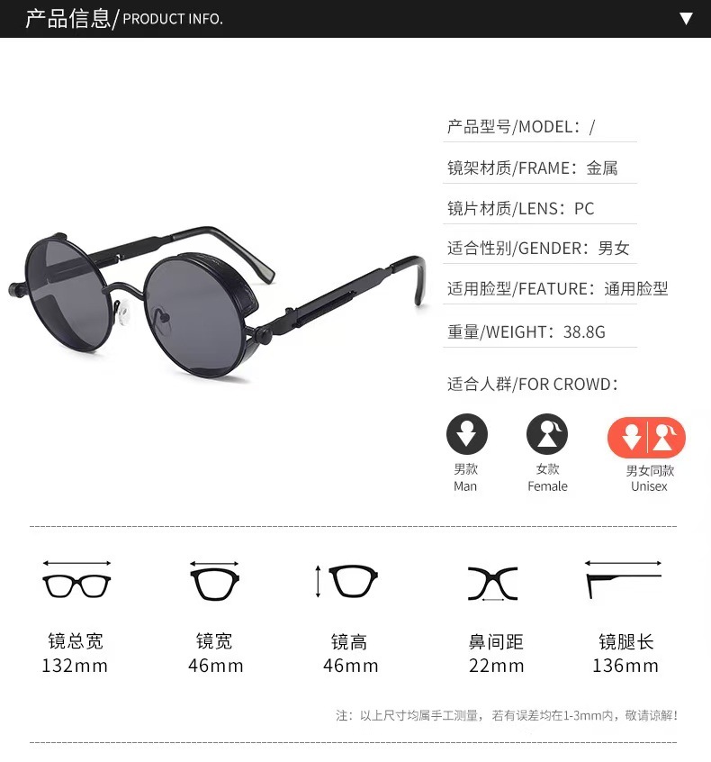 2025 새로운 펑크 패션 라운드 선글라스 유럽과 미국의 레트로 트렌디 안경 유니섹스 국경