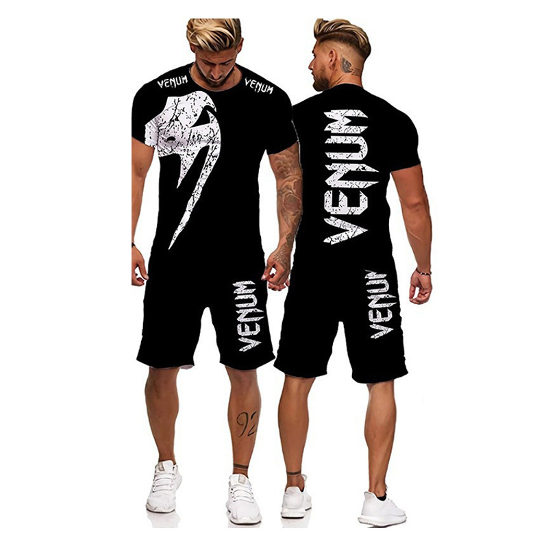 2025 새로운 유럽과 미국의 국경 간 남자 정장 3D 디지털 문자 인쇄 짧은 소매 반바지 남자 비치웨어 정장