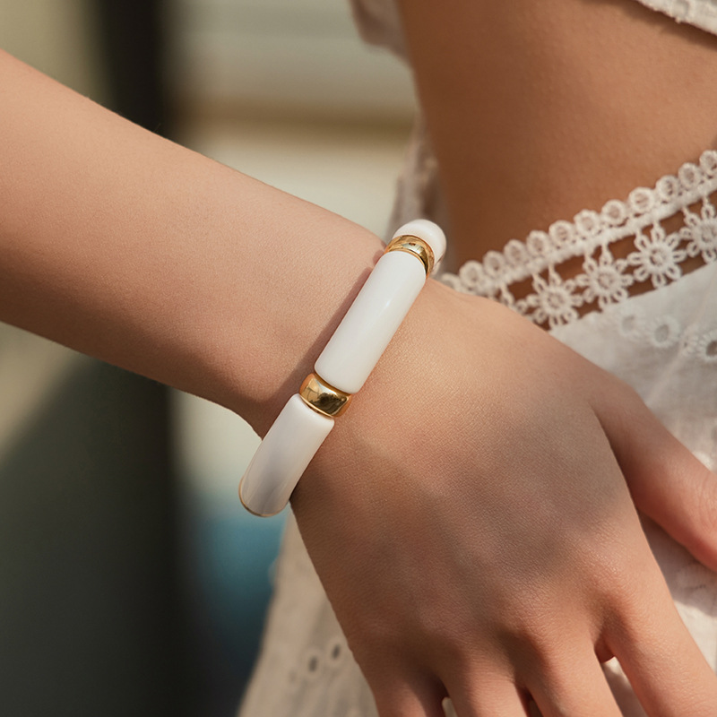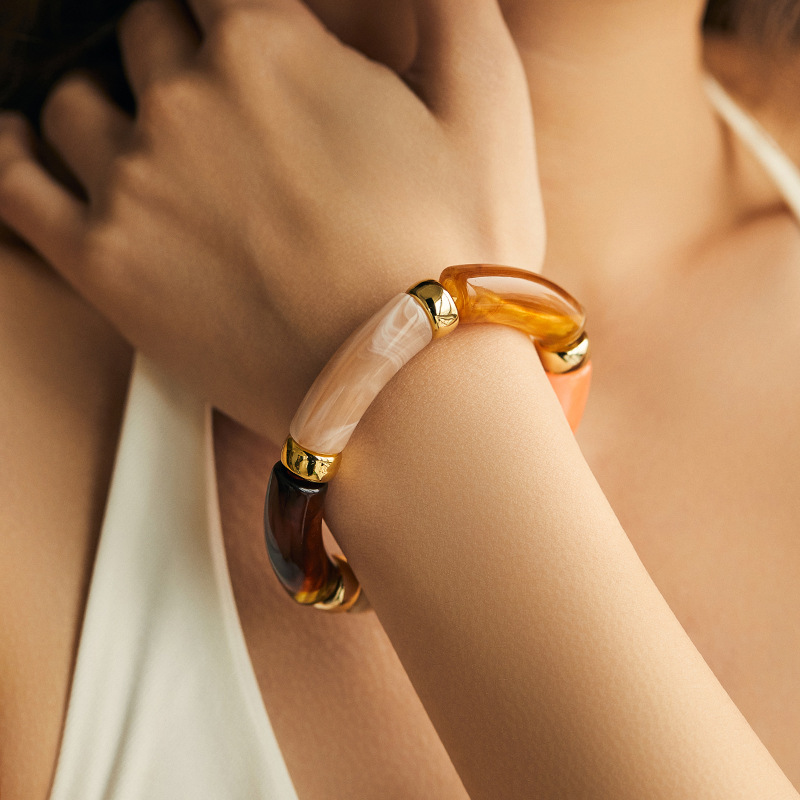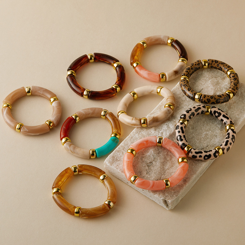 대외 무역 새로운 보헤미안 스타일 뜨거운 판매 스트레치 아크릴 팔찌 패션 맞춤형 수지 시미 염료 팔찌