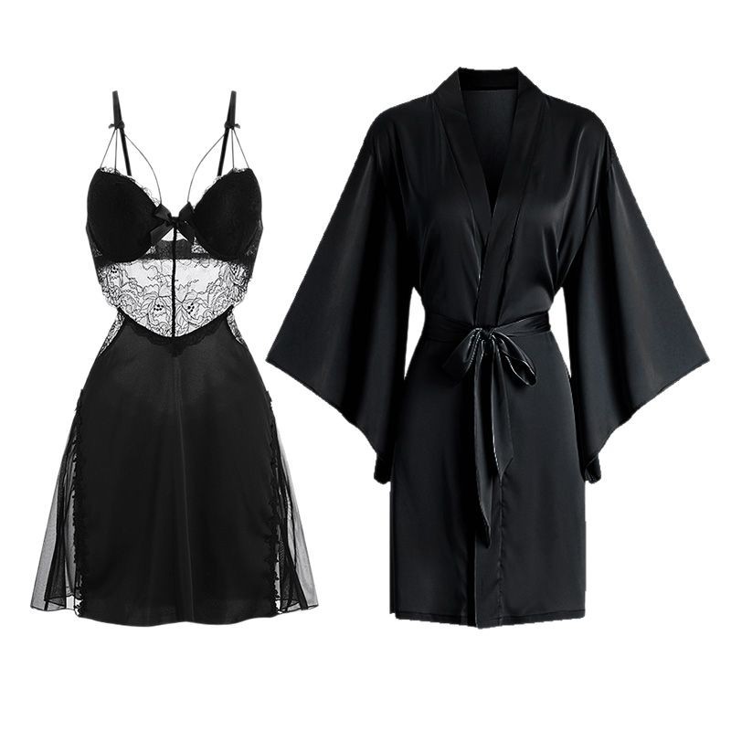 파자마, 여성스럽고 고급스러운 여름 파자마, 아이스 실크 레이스 백리스 서스펜더 가슴 패드 잠옷, 얇은 투피스