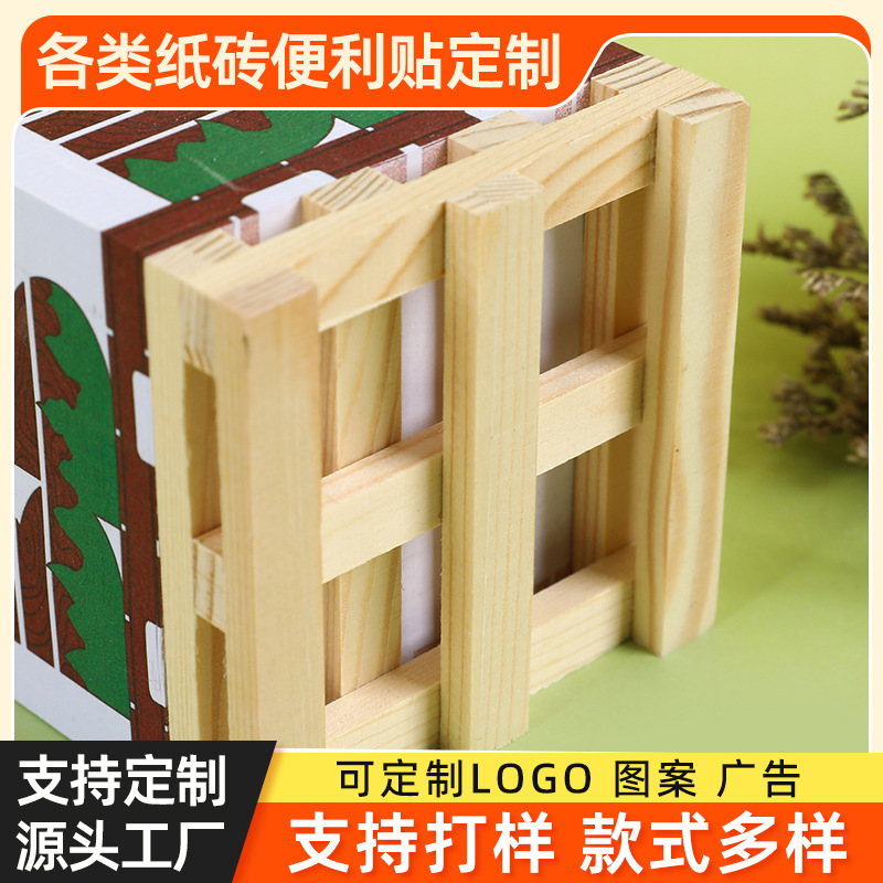 나무 트레이가 포함된 다채로운 창의적인 3차원 종이 벽돌 포스트잇 노트 맞춤형 사무용품 두꺼운 메모 패드 메시지 N회 스티커