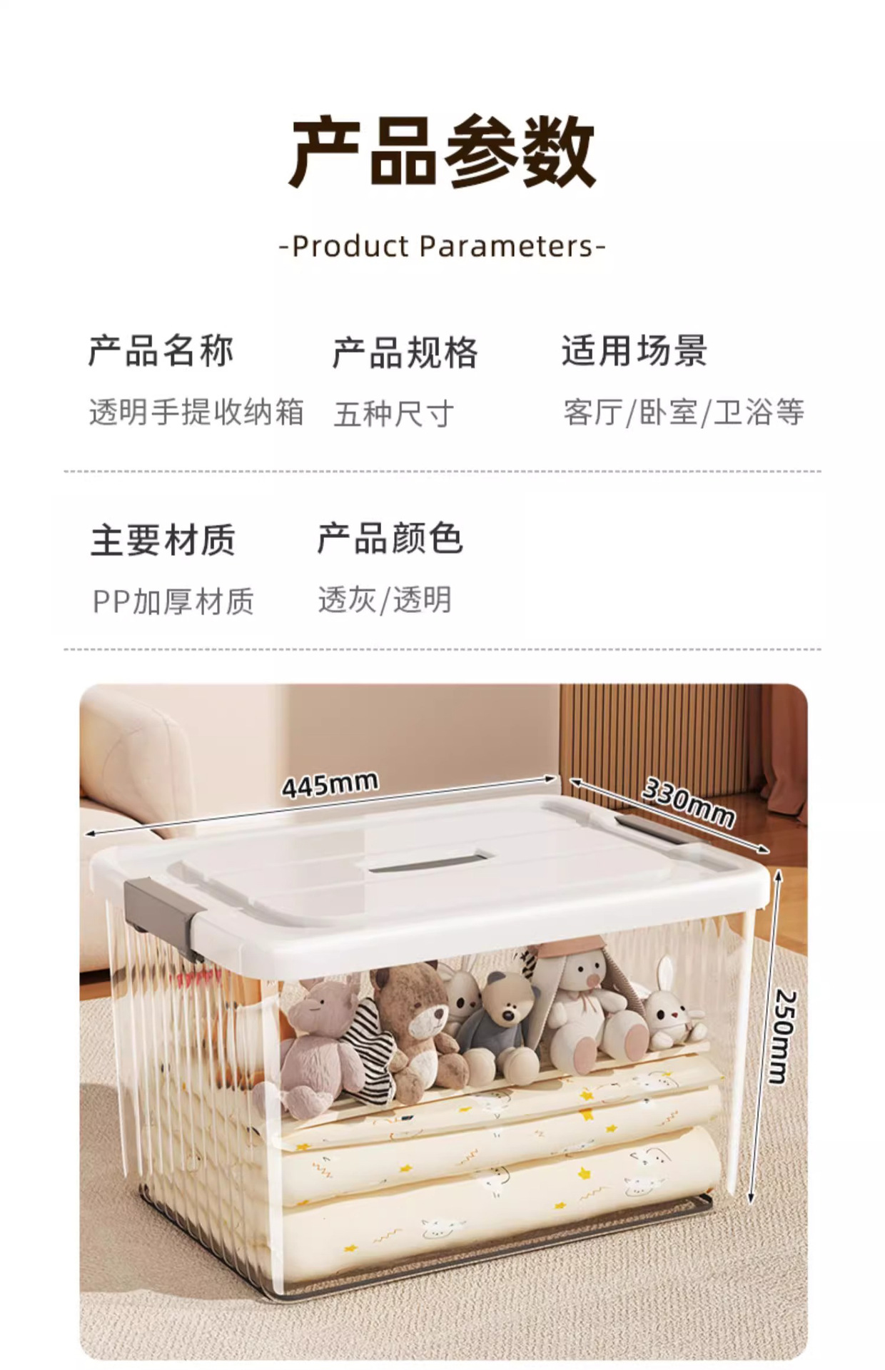 특대형 투명 [길이 44.5*가로 33*높이 25cm] 손잡이 포함