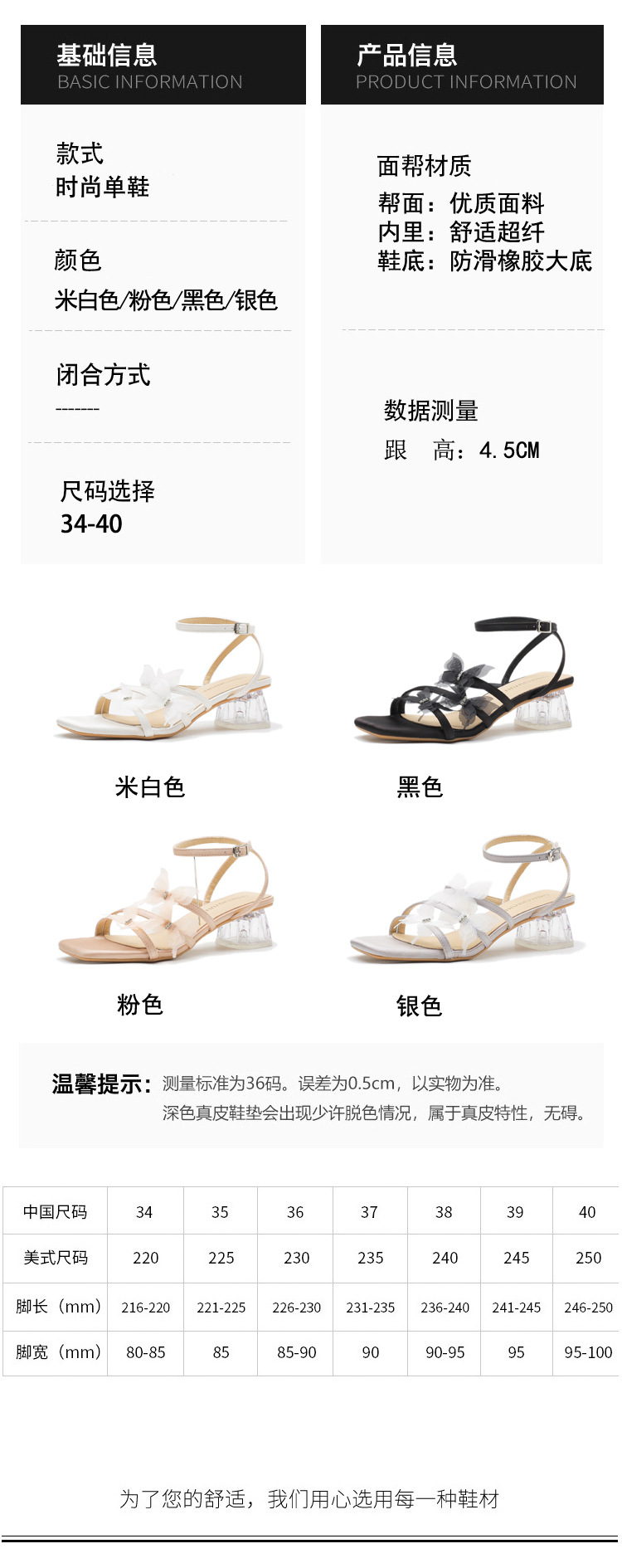 【跟高】 : 约4.5厘米