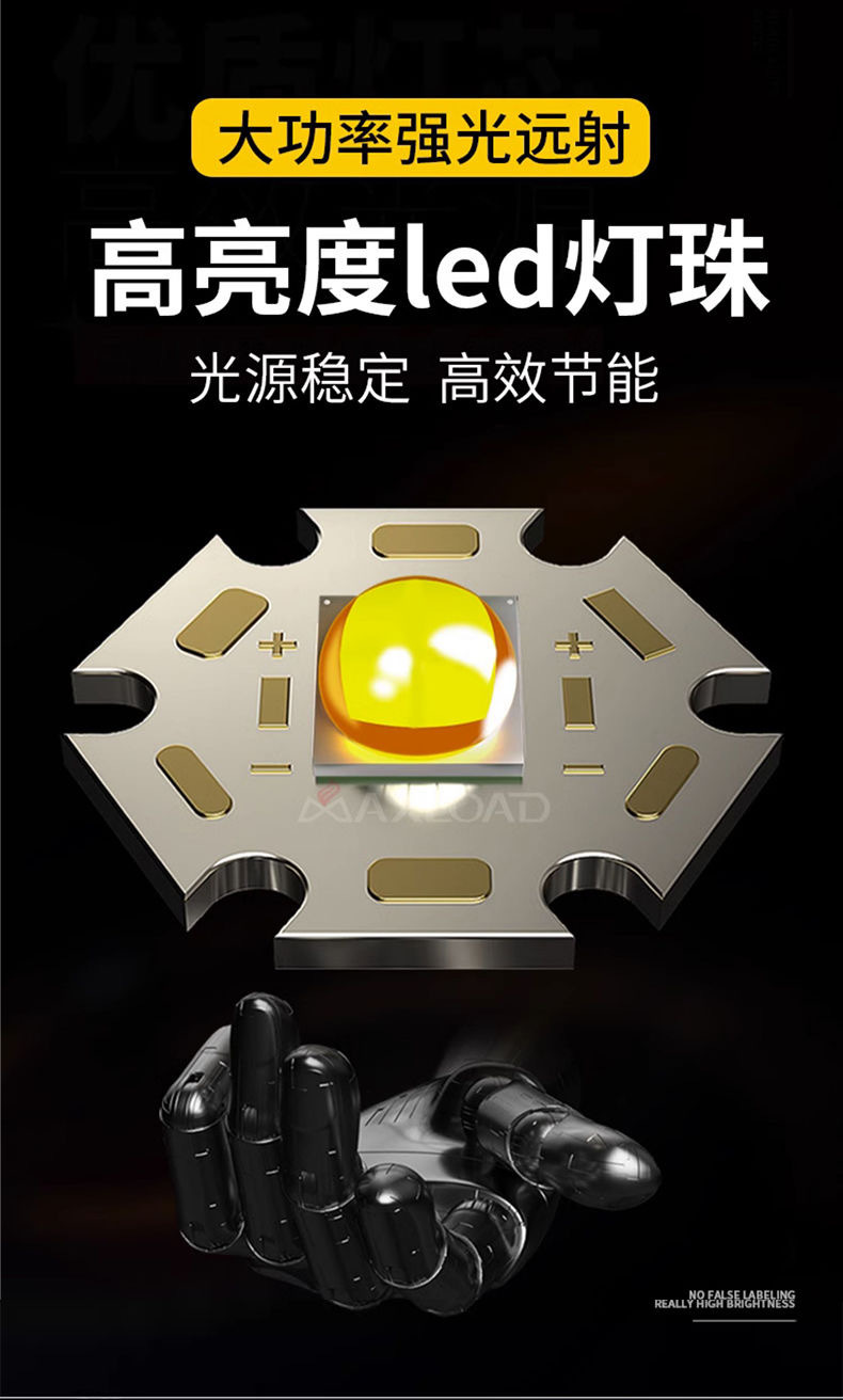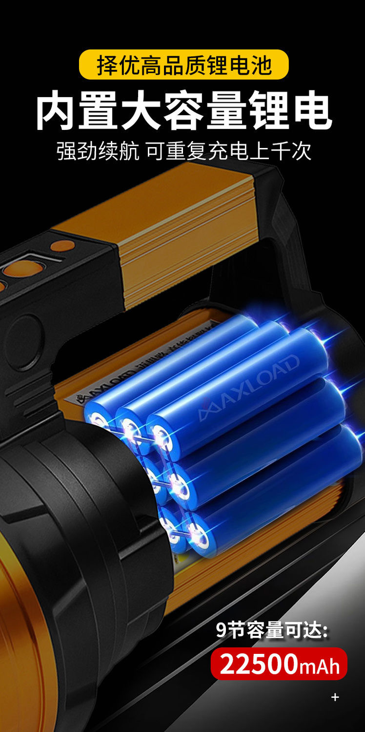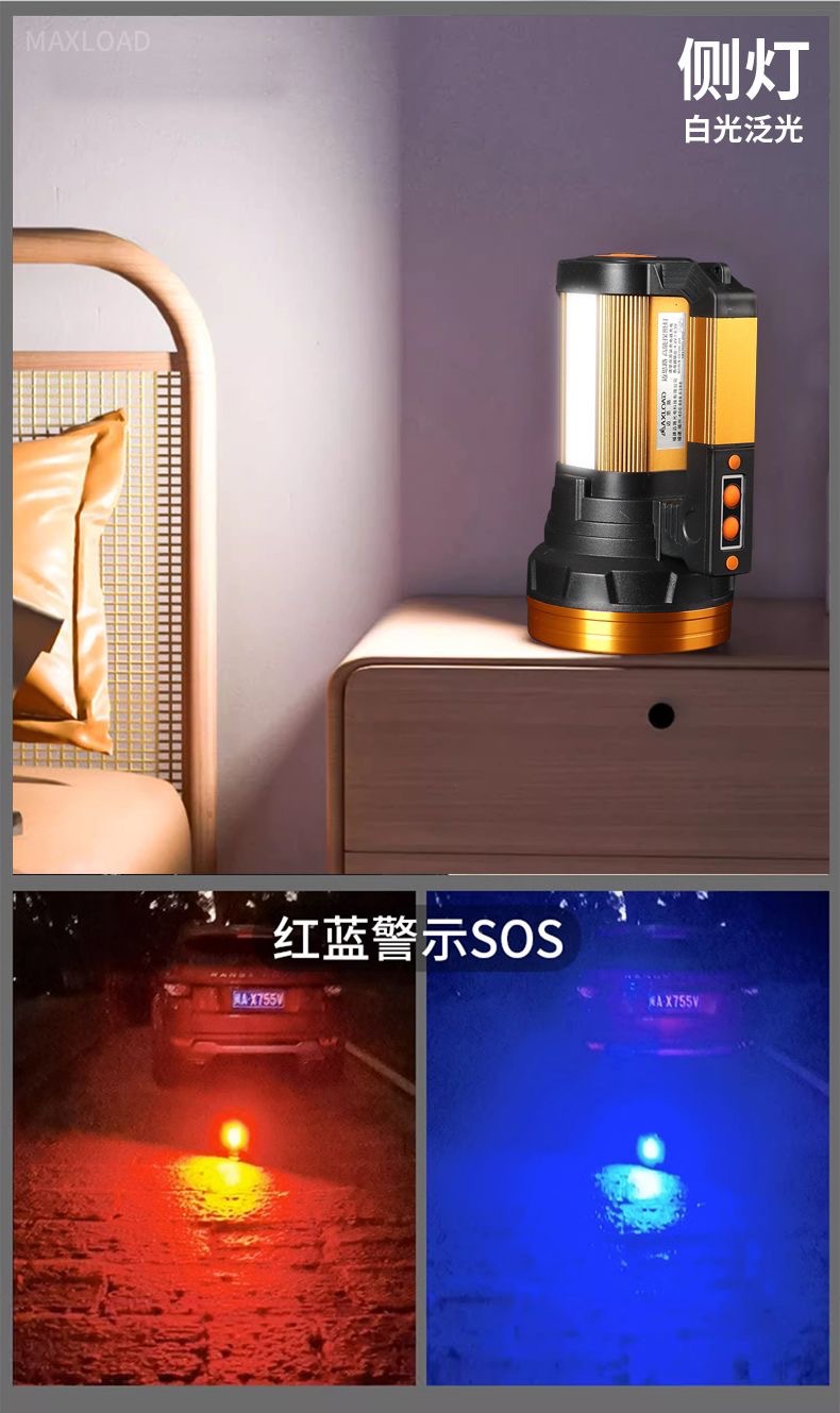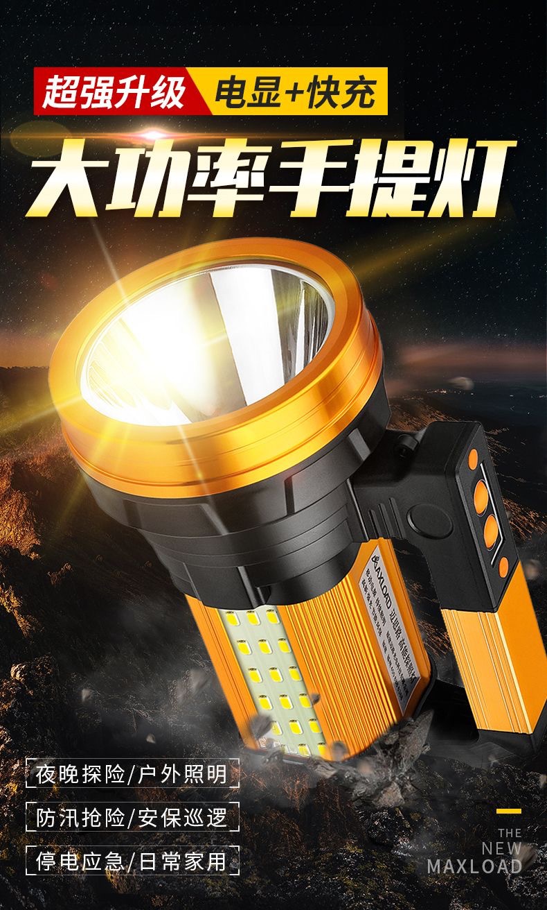 뜨거운 강한 빛 손전등, 밝은 야외 손전등 작업 조명, 휴대용 탐조등, 긴 배터리 수명, 휴대용, 방수 및 낙하 방지