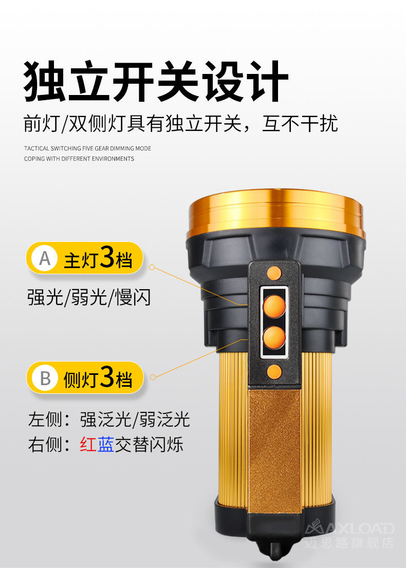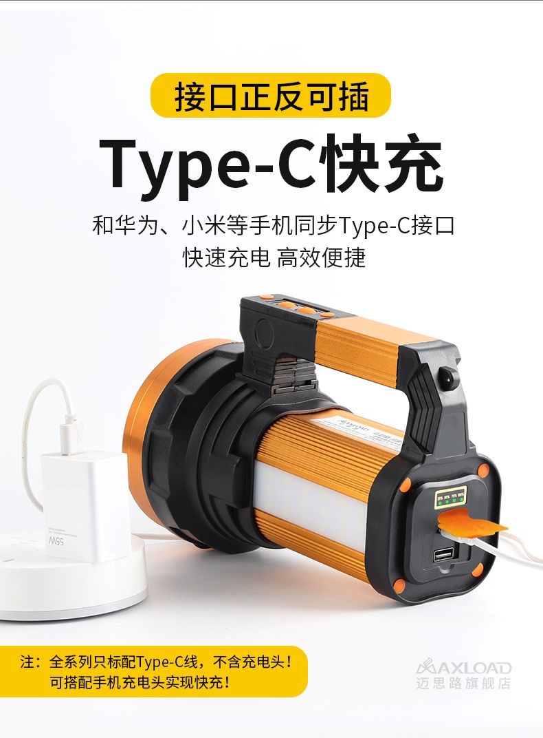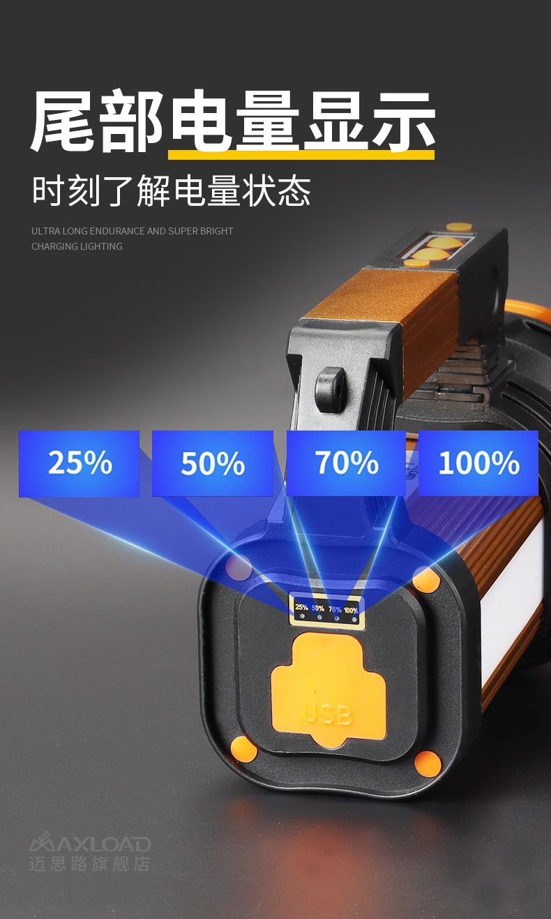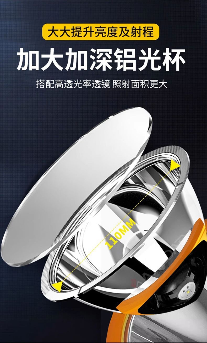 뜨거운 강한 빛 손전등, 밝은 야외 손전등 작업 조명, 휴대용 탐조등, 긴 배터리 수명, 휴대용, 방수 및 낙하 방지