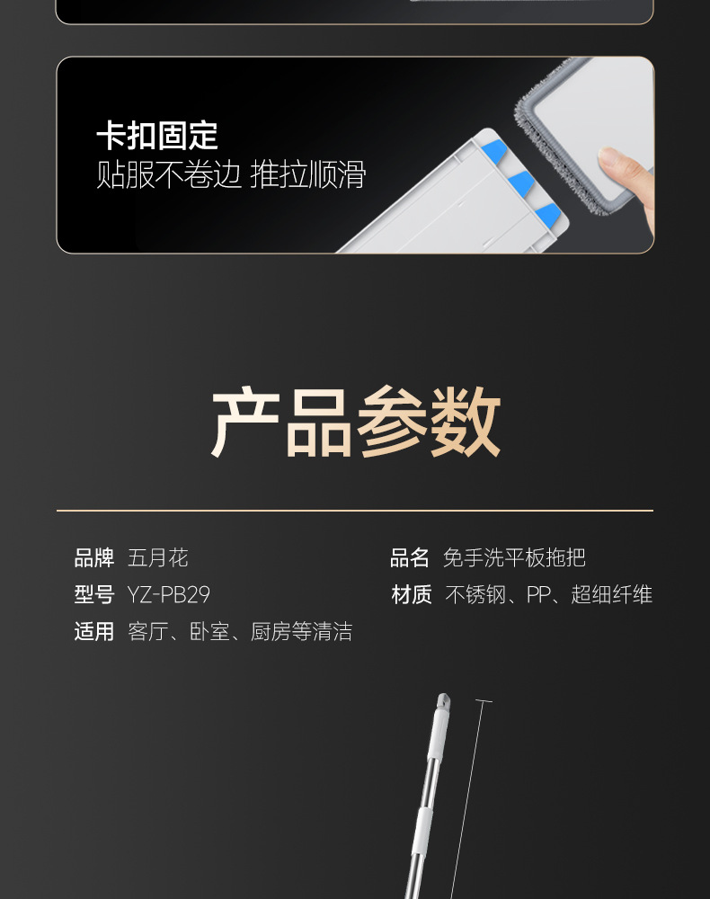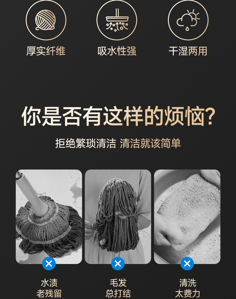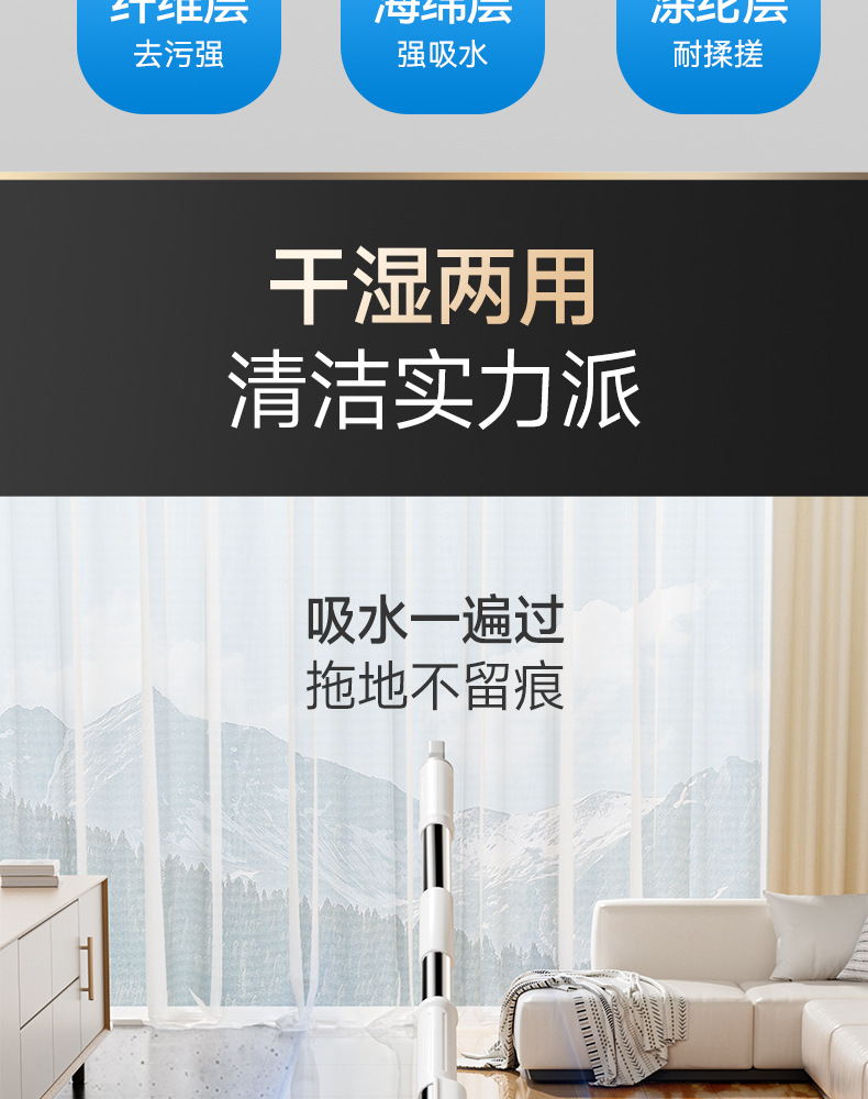 메이플 플라잉 플랫 걸레 38CM 막대 길이 125CM 총 4개의 천 두꺼운 섬유 천 가정용 걸레