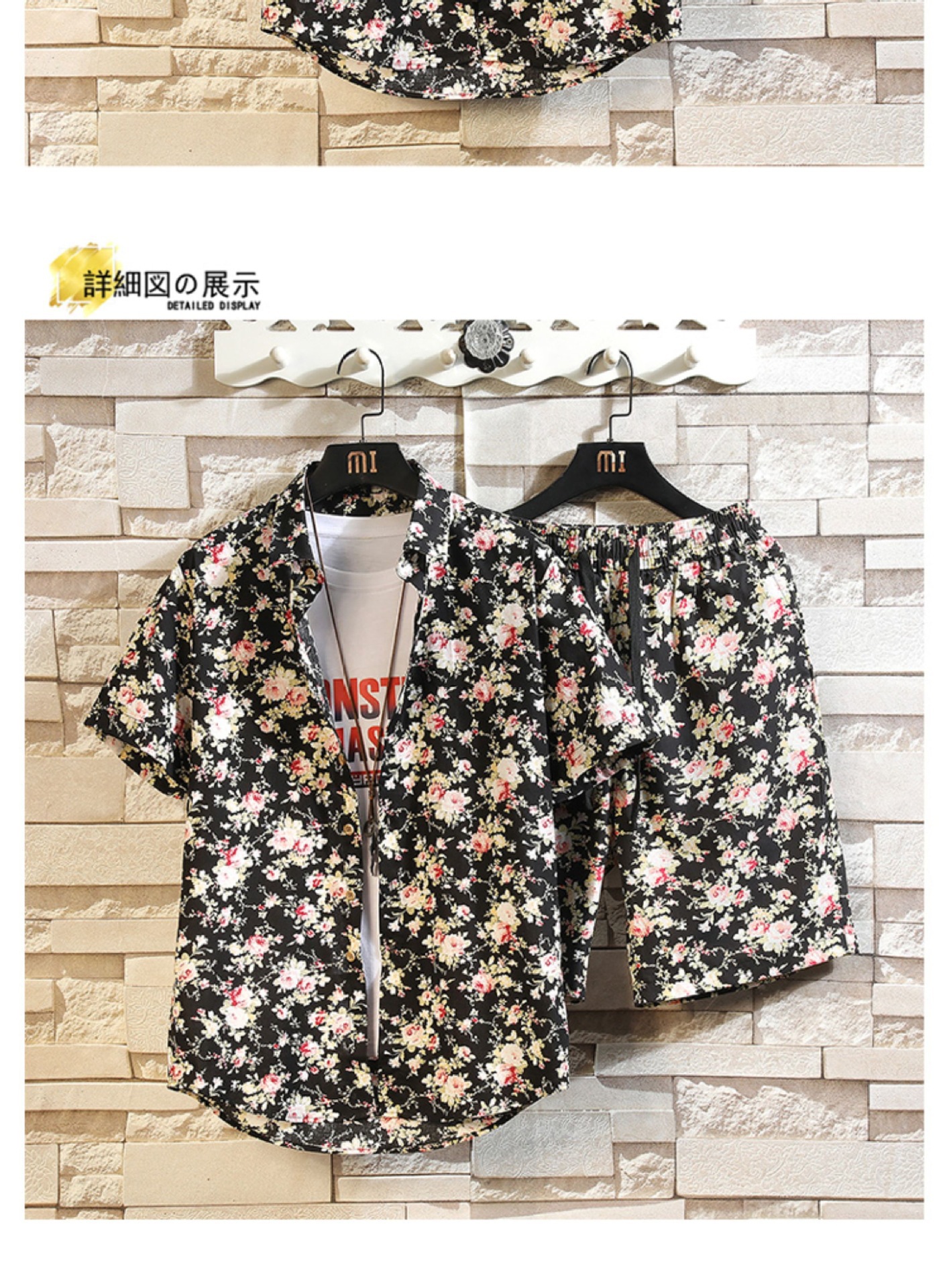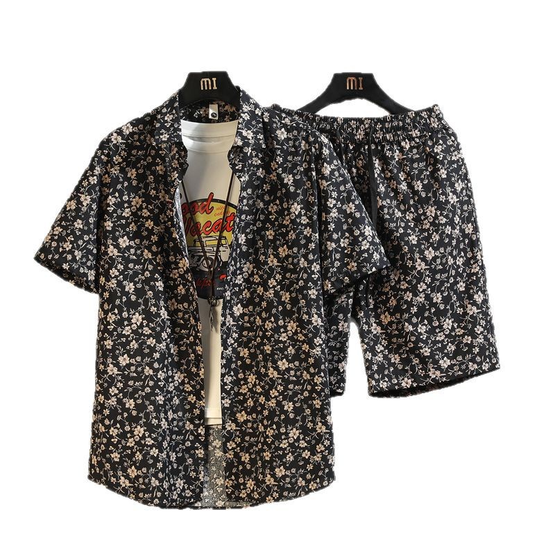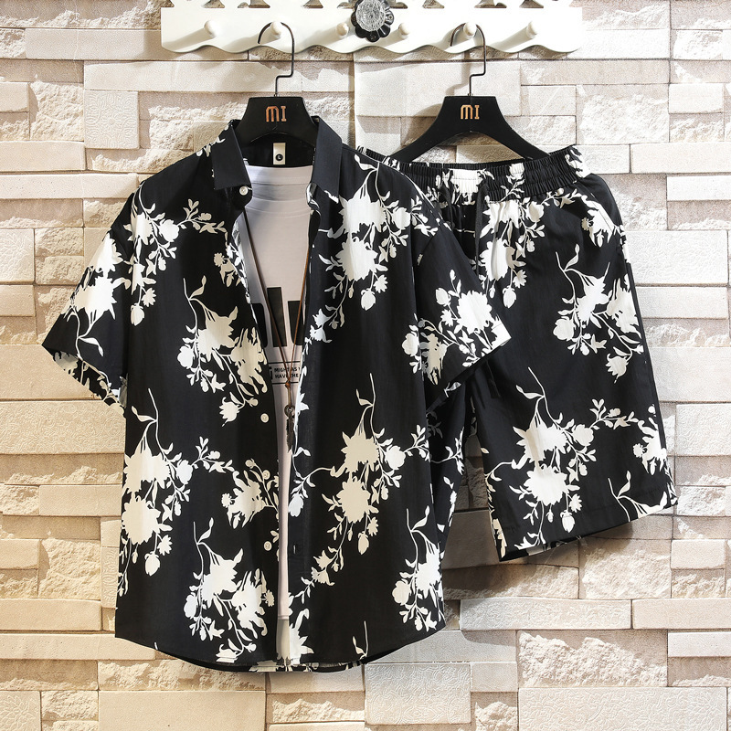 2025 년 여름 새로운 남성 패션 트렌디 팬츠 탑 코튼 세트 비치 반팔 반바지 투피스 세트
