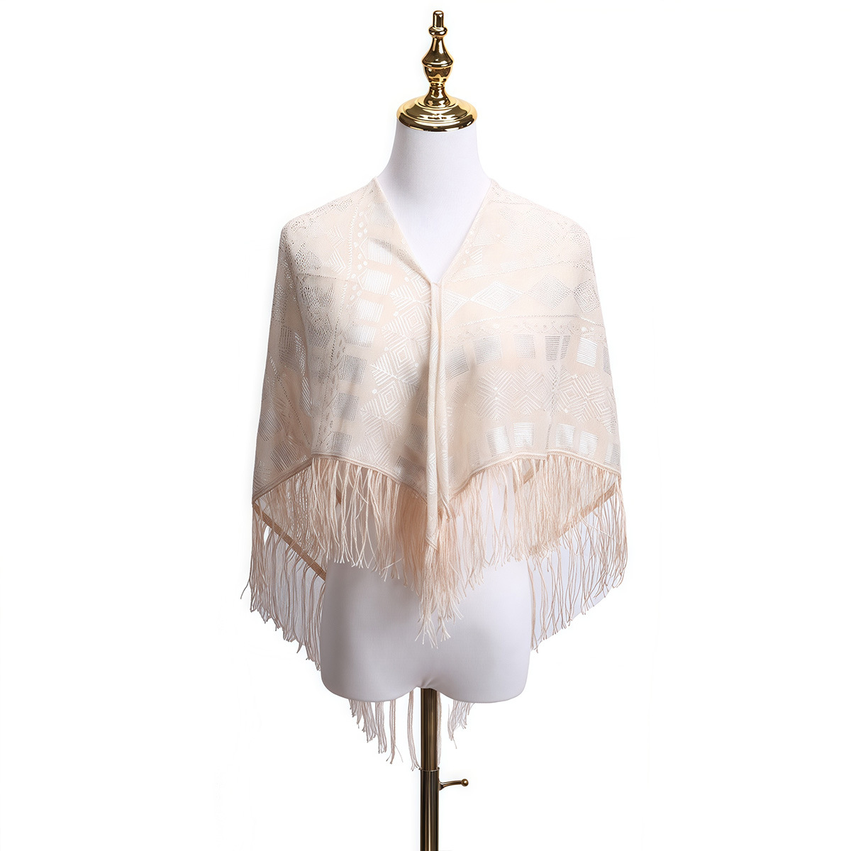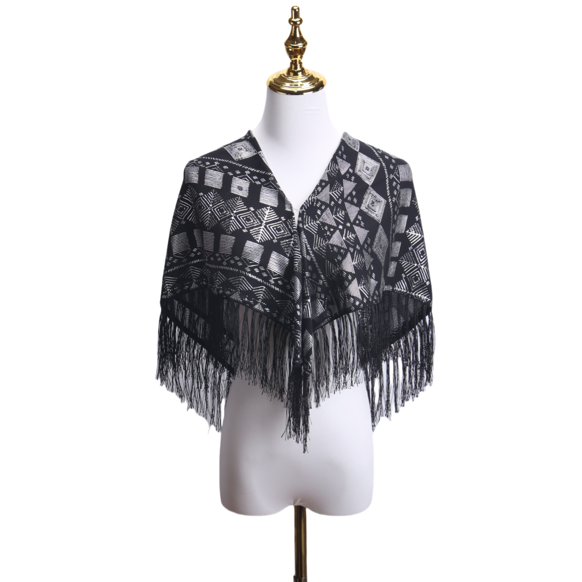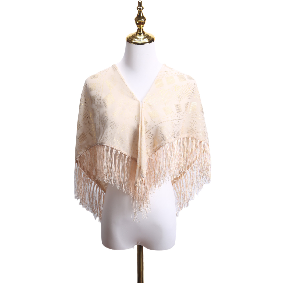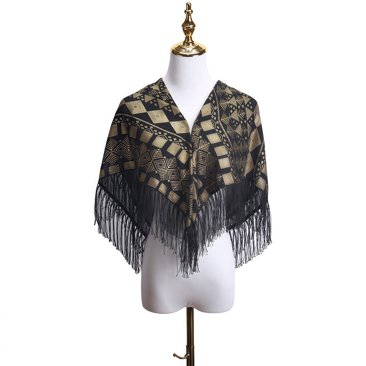 국경을 넘는 새로운 스타일의 여성용 프린트 태슬 복고풍 쉬폰 스카프, 여름 해변 자외선 차단 실크 스카프, 핫 스탬핑 숄