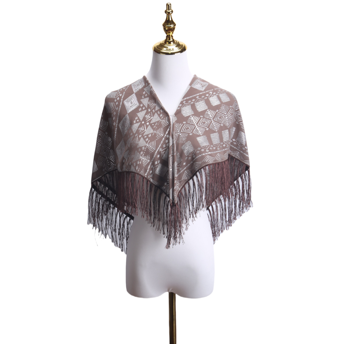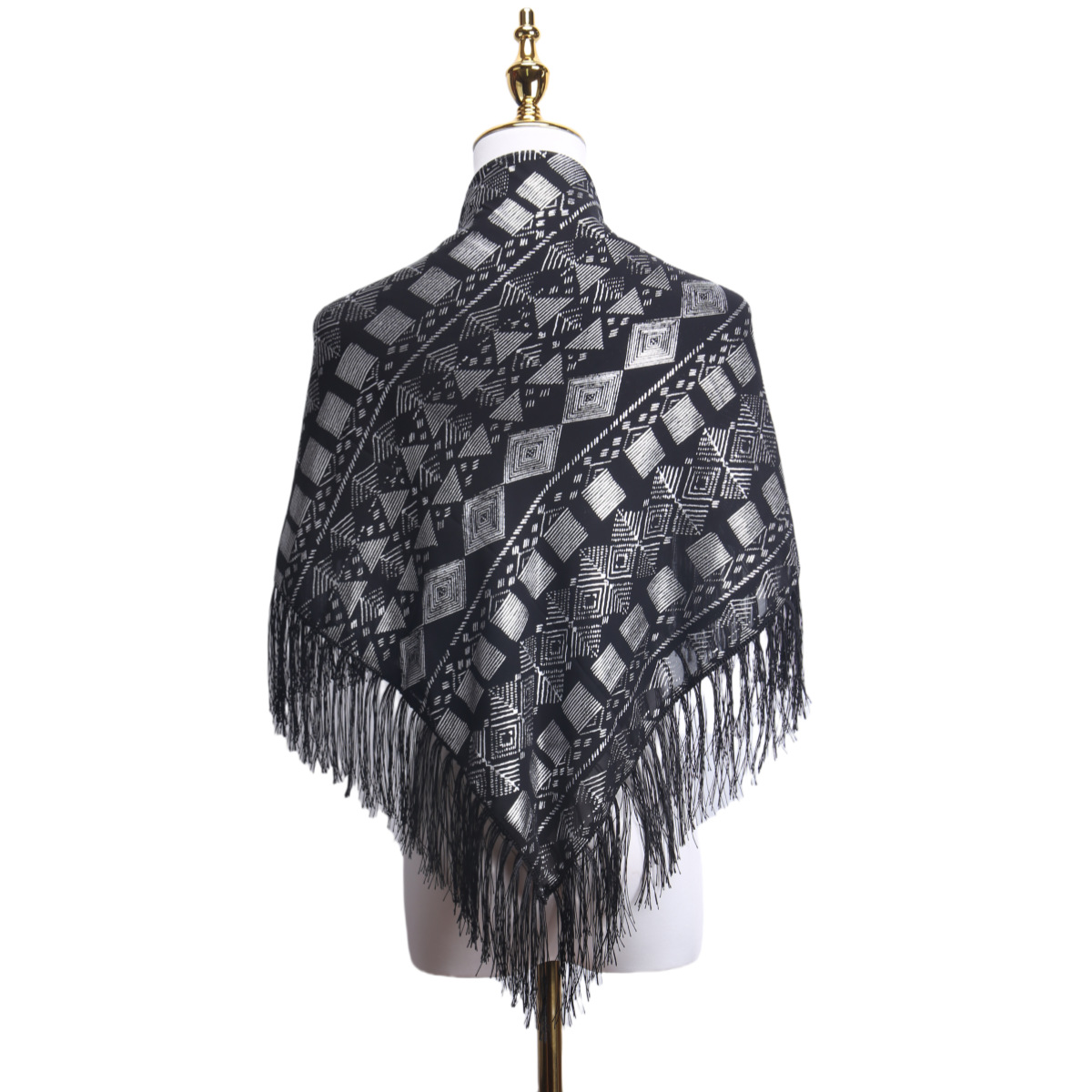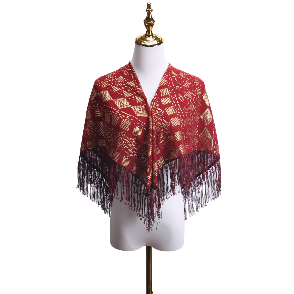 국경을 넘는 새로운 스타일의 여성용 프린트 태슬 복고풍 쉬폰 스카프, 여름 해변 자외선 차단 실크 스카프, 핫 스탬핑 숄