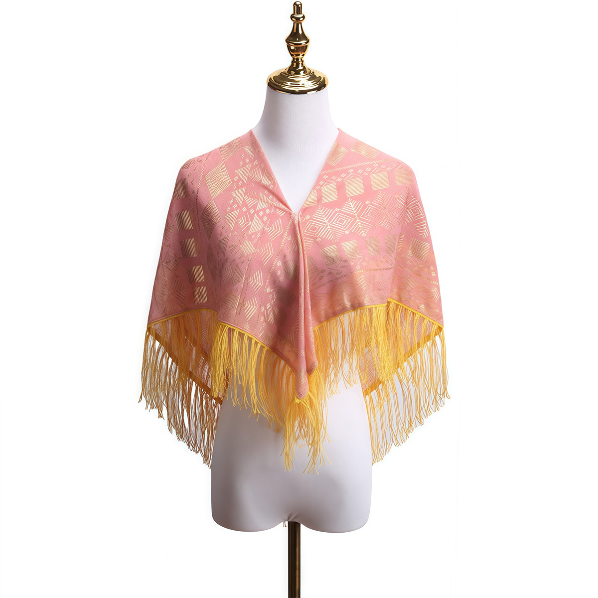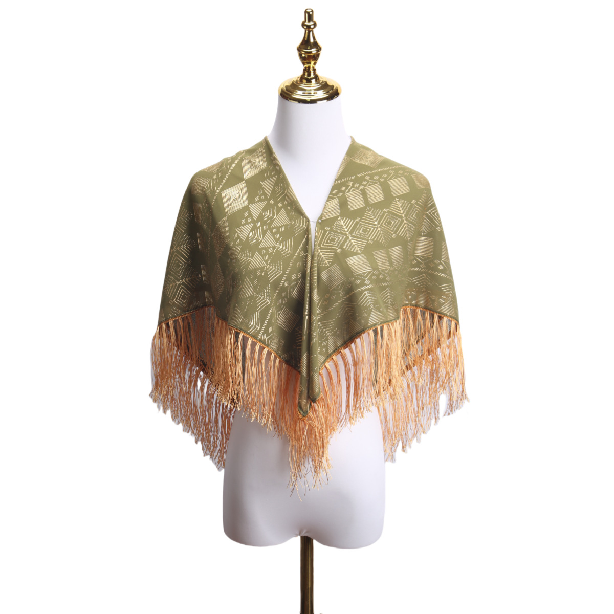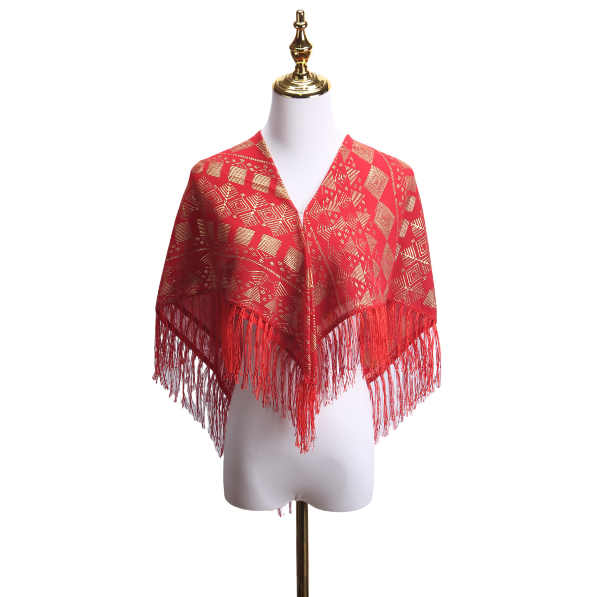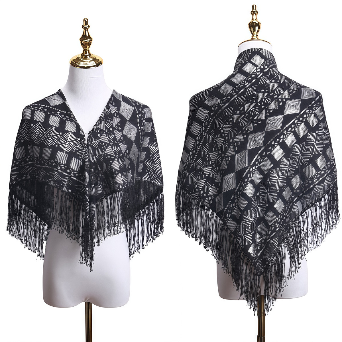 국경을 넘는 새로운 스타일의 여성용 프린트 태슬 복고풍 쉬폰 스카프, 여름 해변 자외선 차단 실크 스카프, 핫 스탬핑 숄