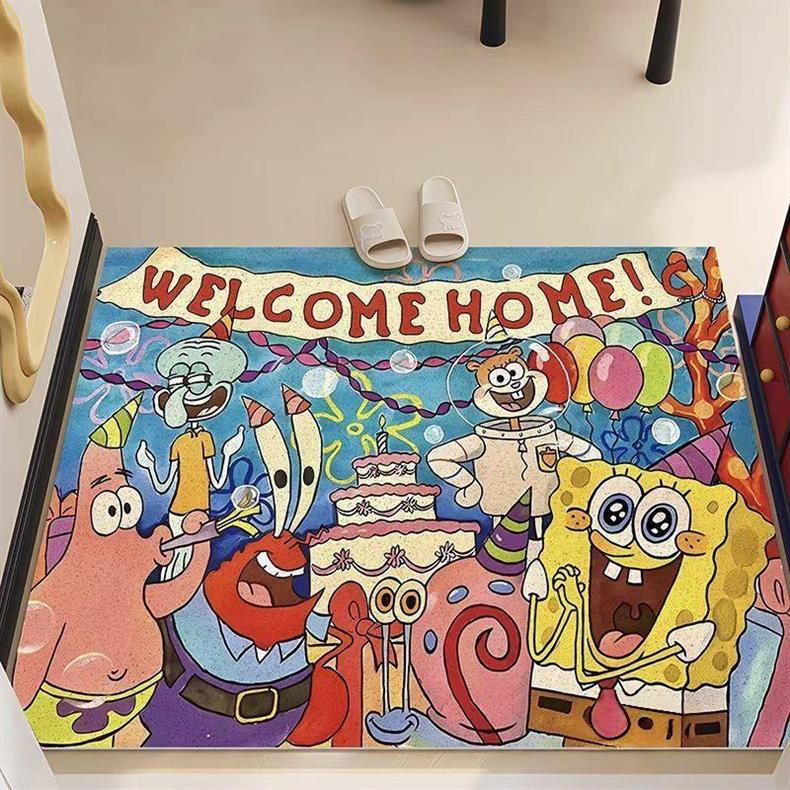 스폰지밥 바닥매트, 출입문매트, 미끄럼방지, 방진 와이어링 바닥매트, 만화 출입문매트, 가정용 얼룩방지 현관매트