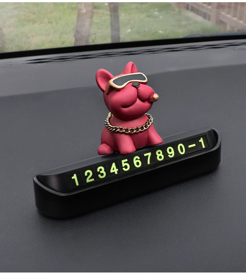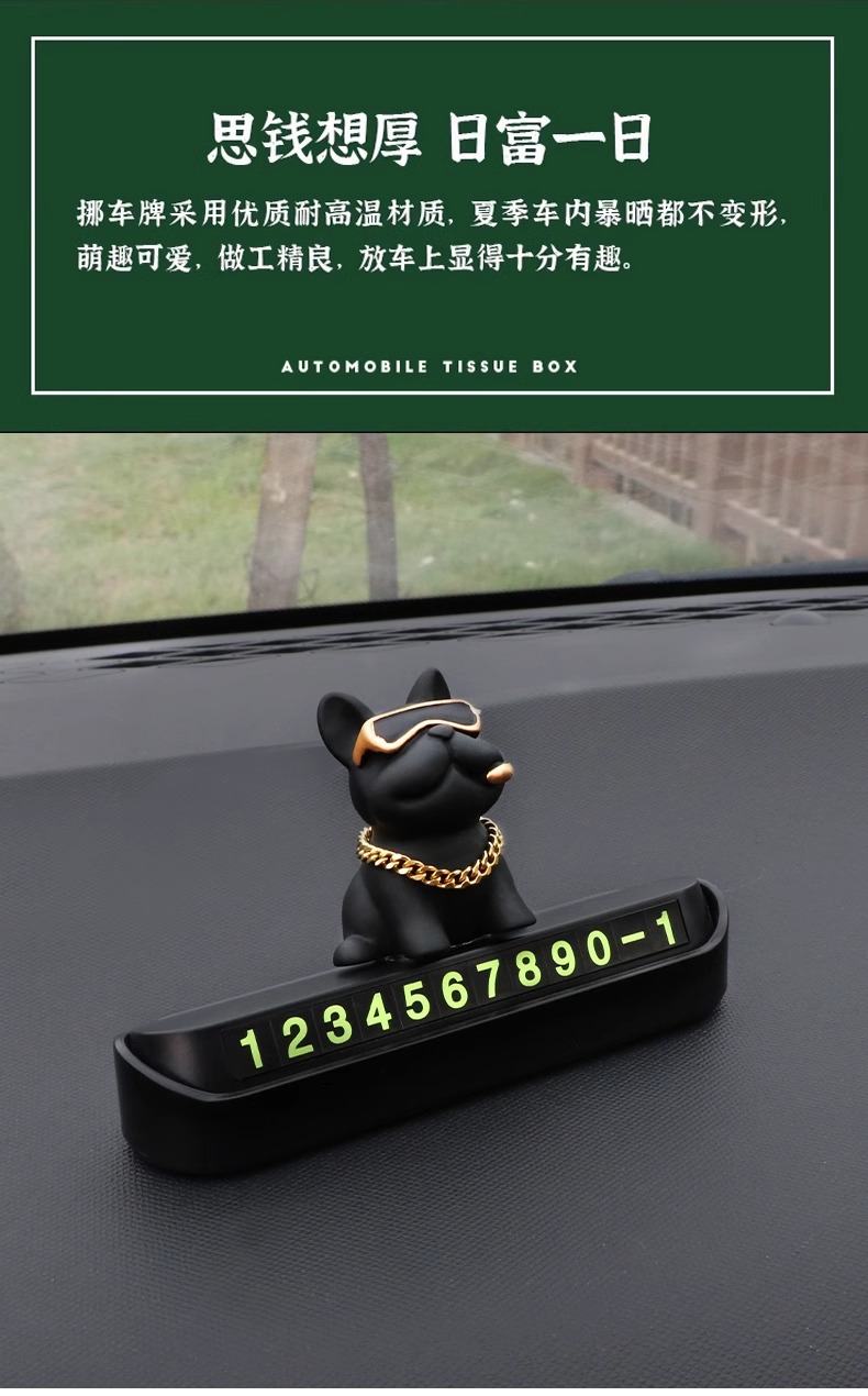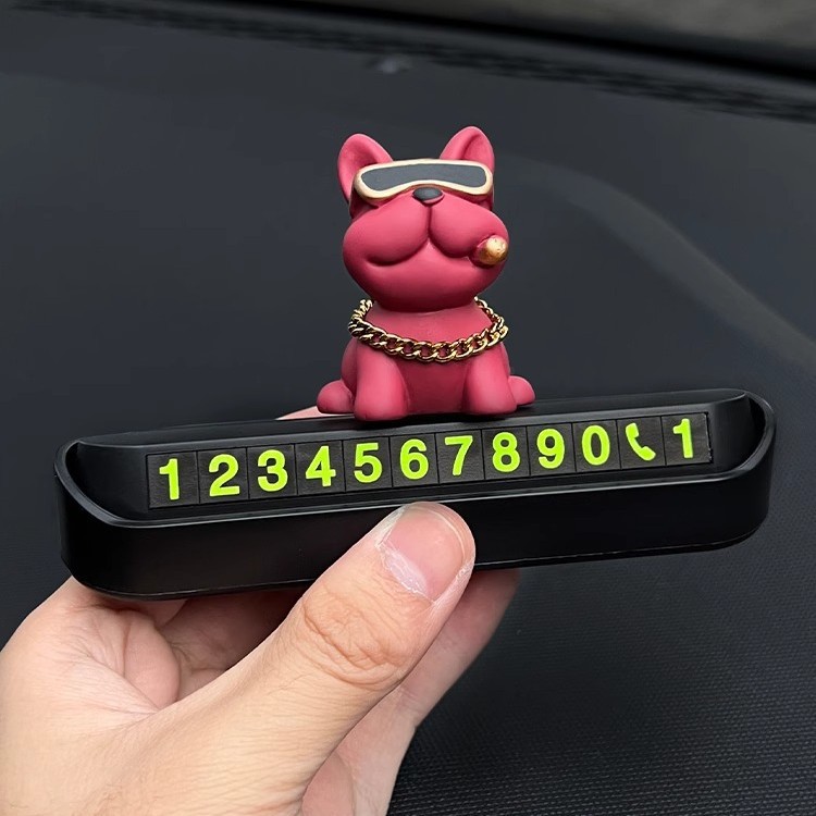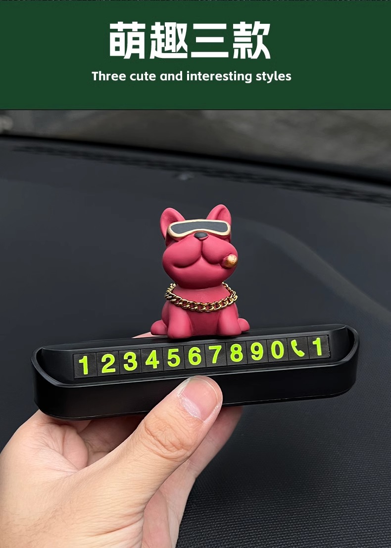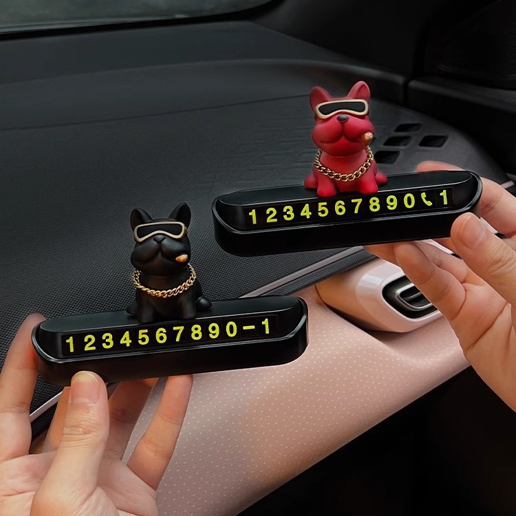프렌치 불독 자동차 주차 카드 임시 주차 전화 번호판 장식 용품 이동 번호판 이동 카드