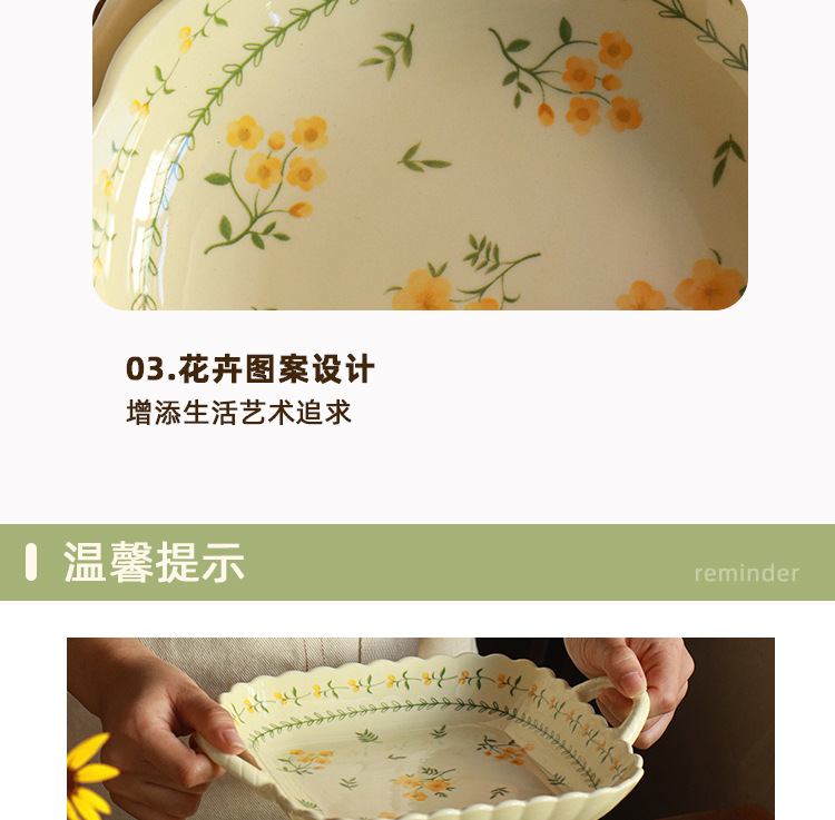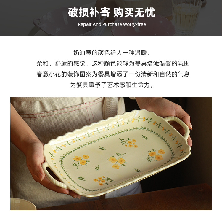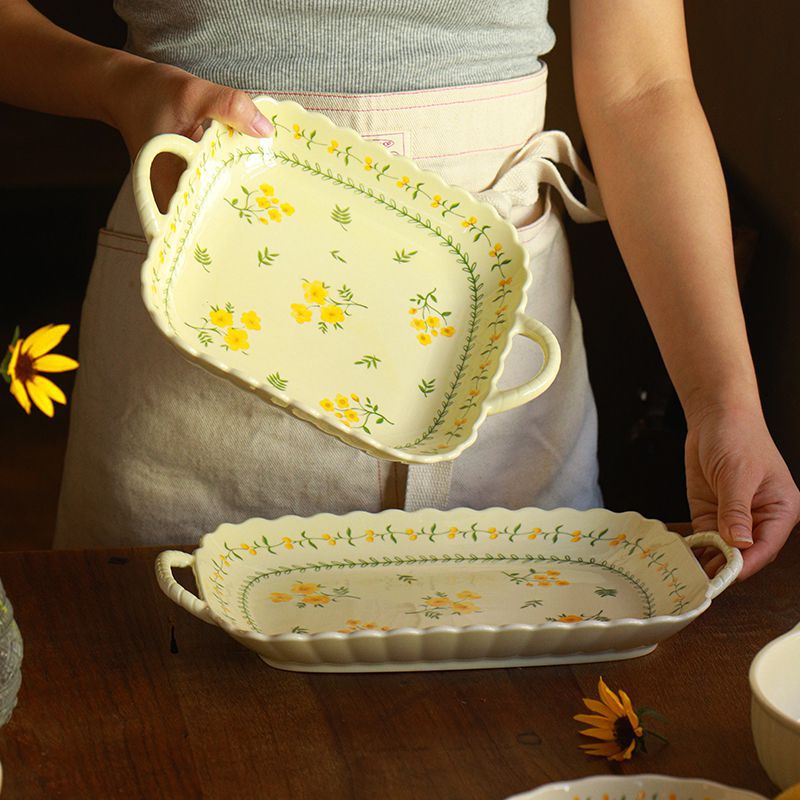 노란색 유약 봄 - 귀가 두 개 달린 직사각형 접시 11.8inch개(한 상자에 36개)