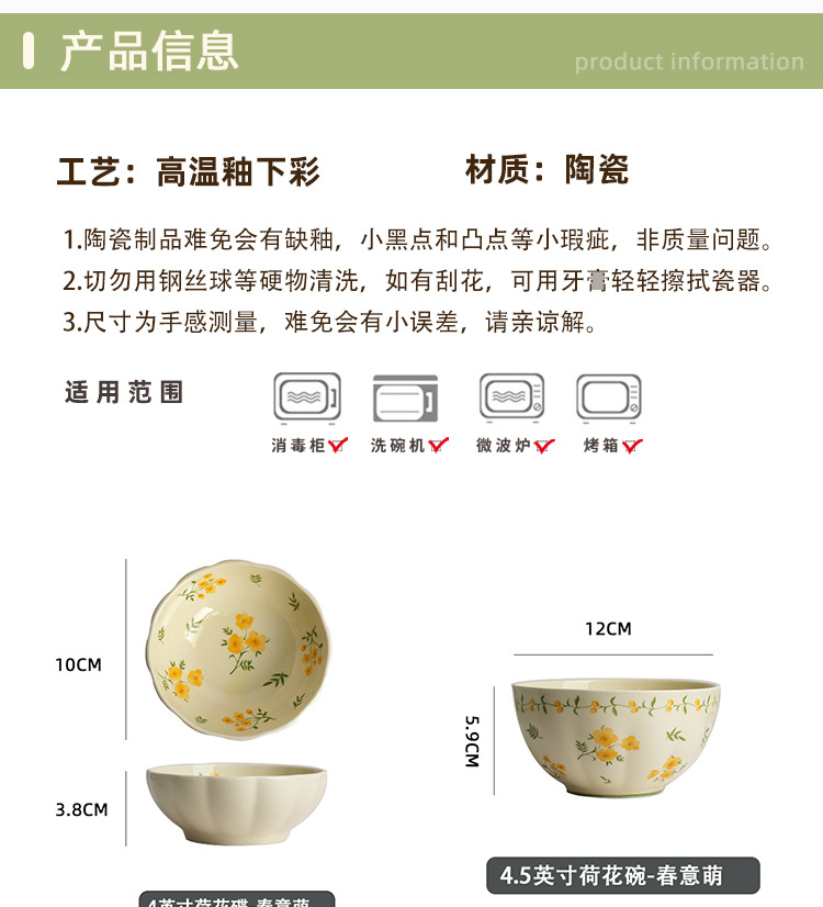 노란색 유약 봄의 매력 - 네덜란드 이중귀 그릇 9.5inch개(1상자에 24개)