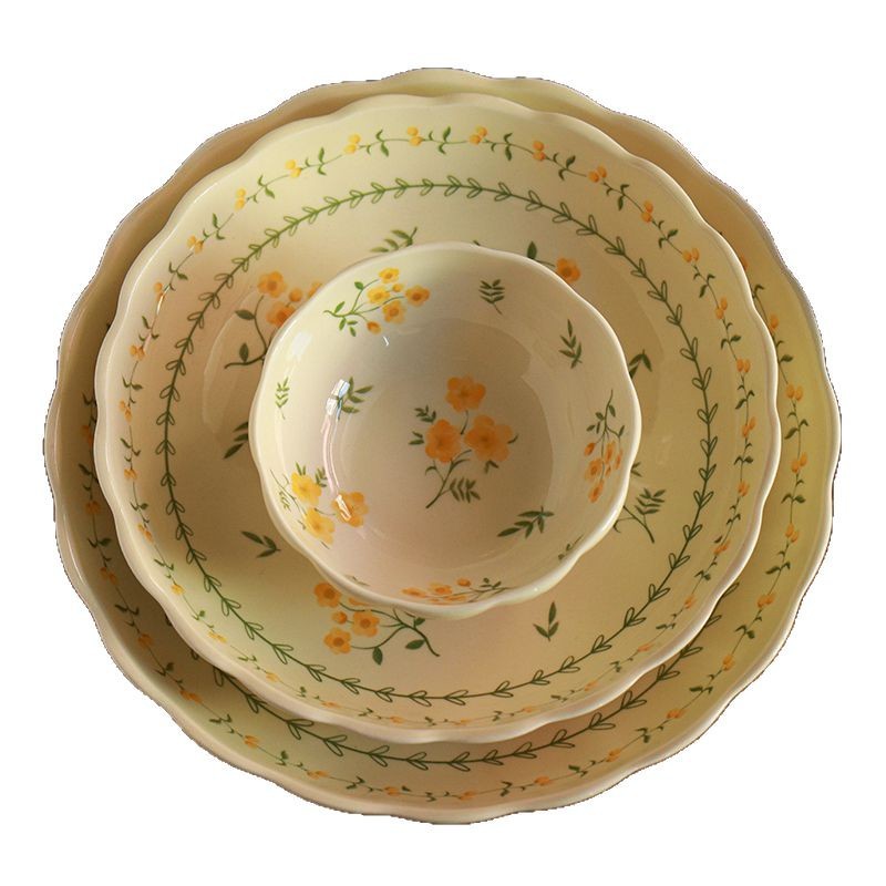 세라믹 목가적 스타일 언더글레이즈 컬러 접시 일본식 접시 식기 가정용 접시 그릇 접시 수프 접시 생선 접시 접시 원형 접시