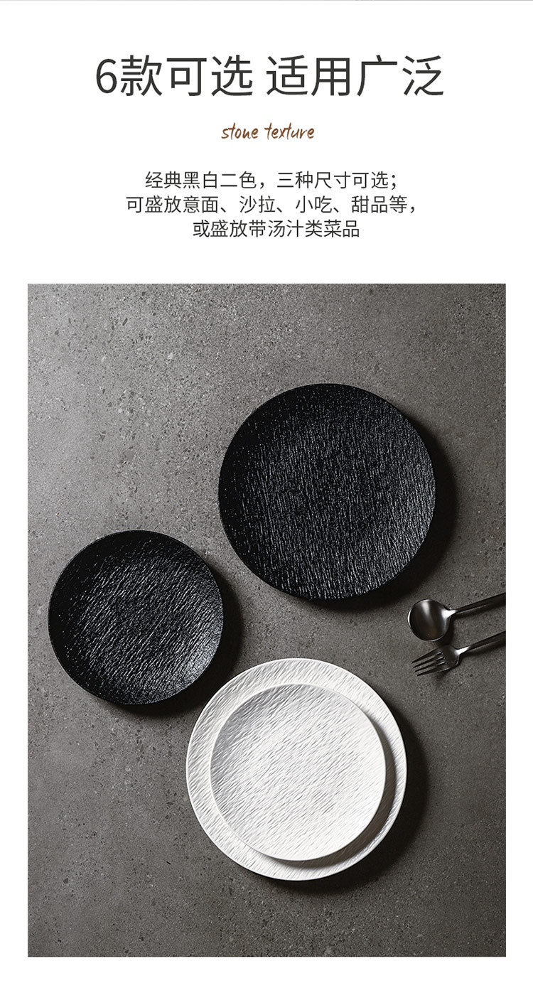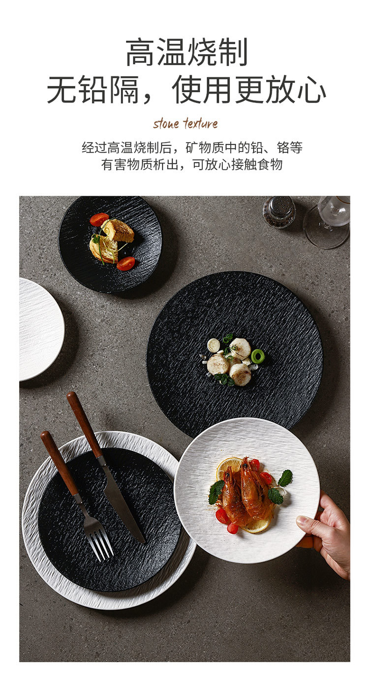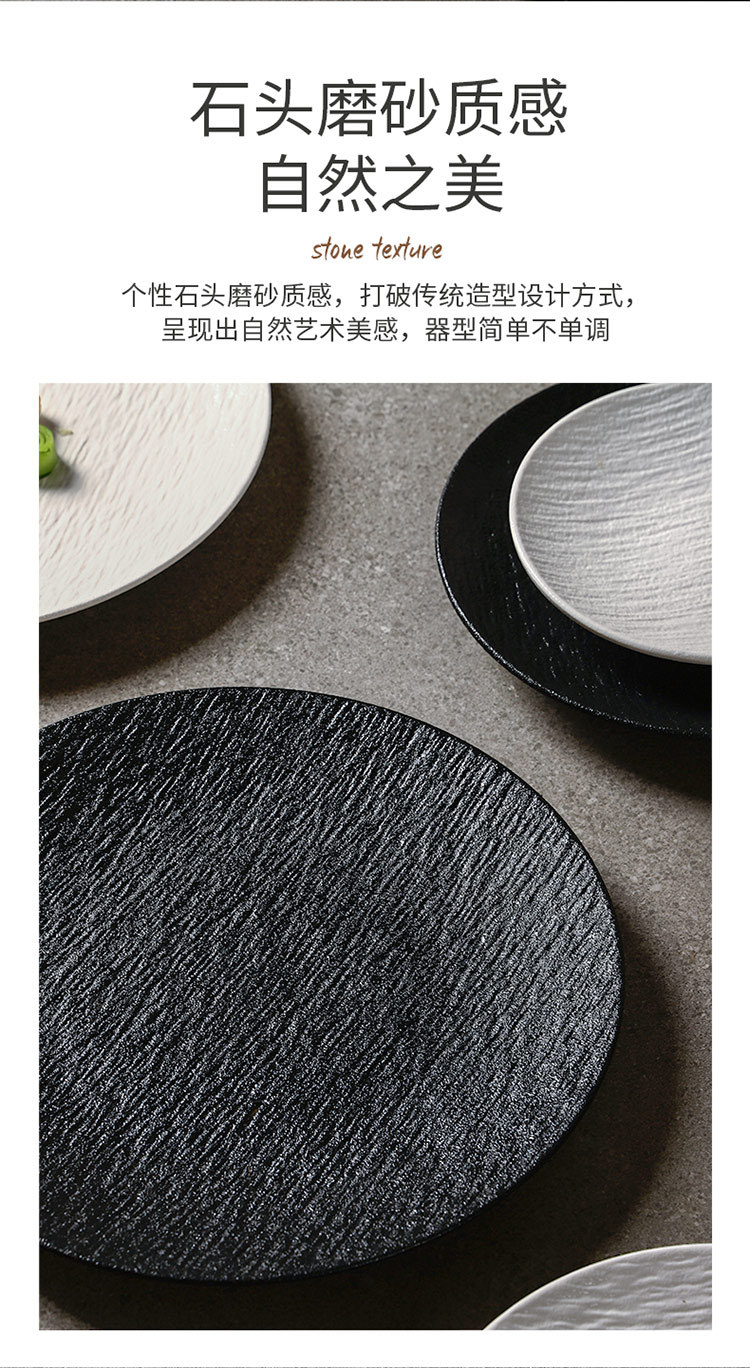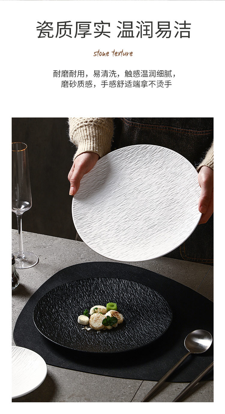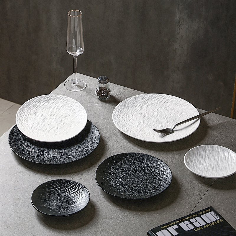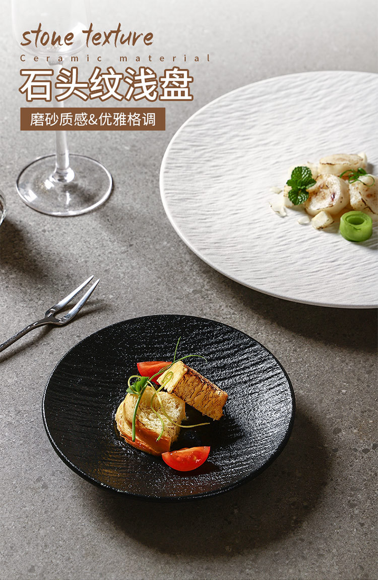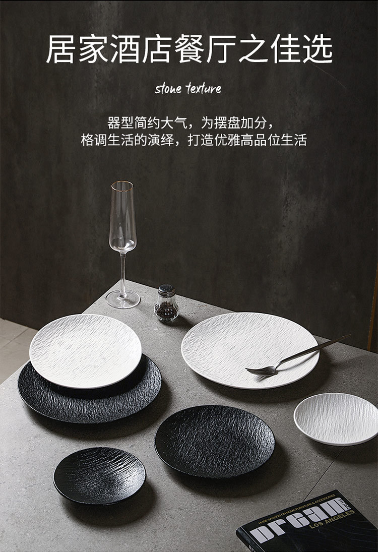 흑백 암석 패턴 세라믹 식기 서양 음식 가정용 접시 8inch 얕은 접시 플랫 플레이트 하이 엔드 스테이크 접시 원형 접시
