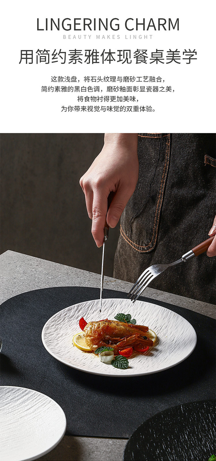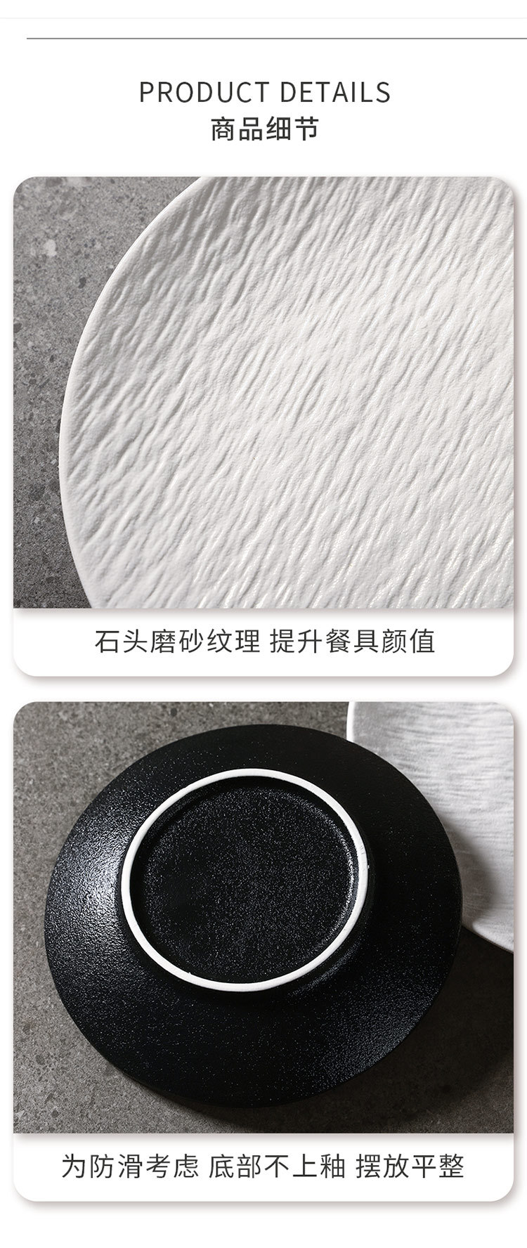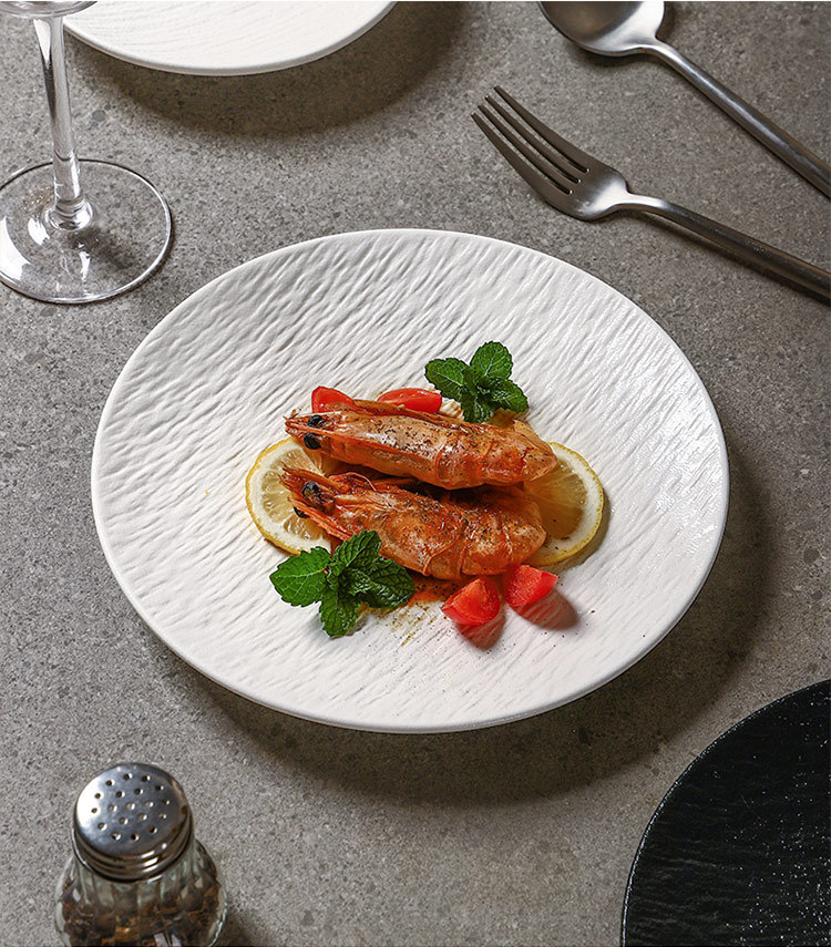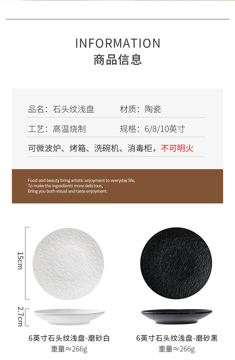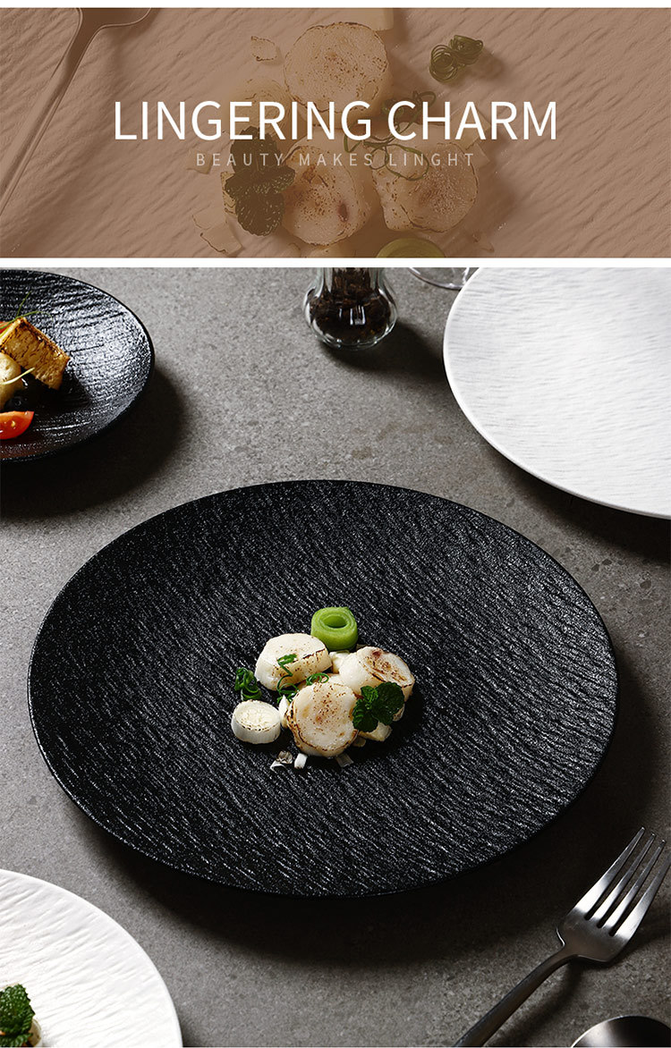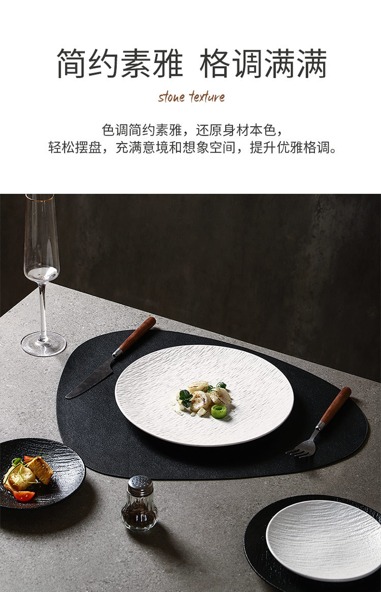 흑백 암석 패턴 세라믹 식기 서양 음식 가정용 접시 8inch 얕은 접시 플랫 플레이트 하이 엔드 스테이크 접시 원형 접시