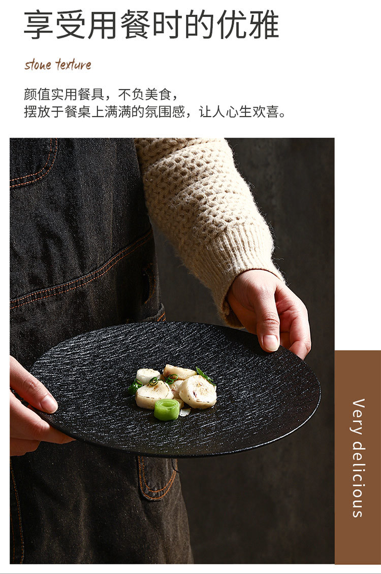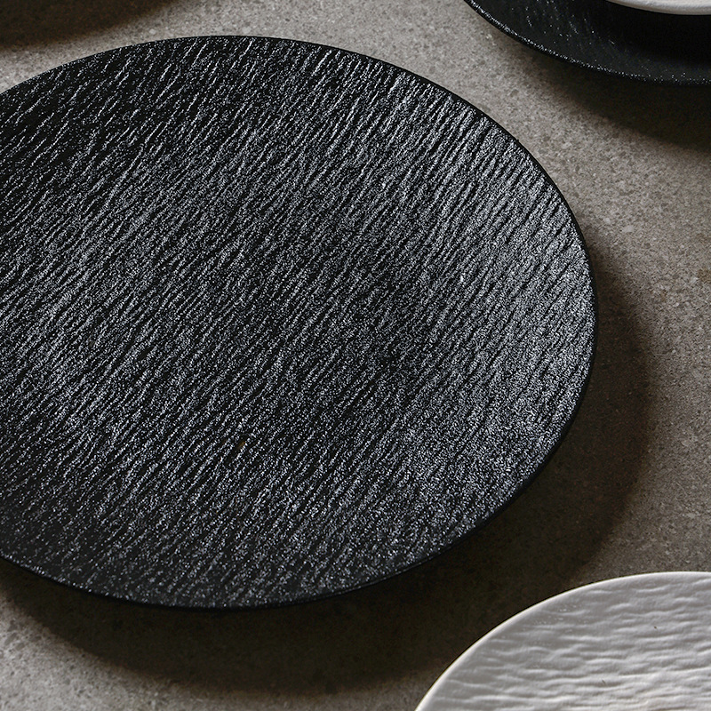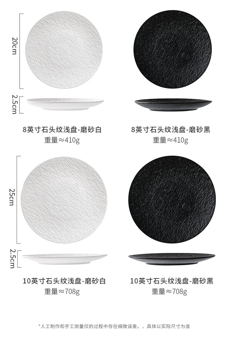 8inch 돌무늬 얕은 접시-매트 블랙