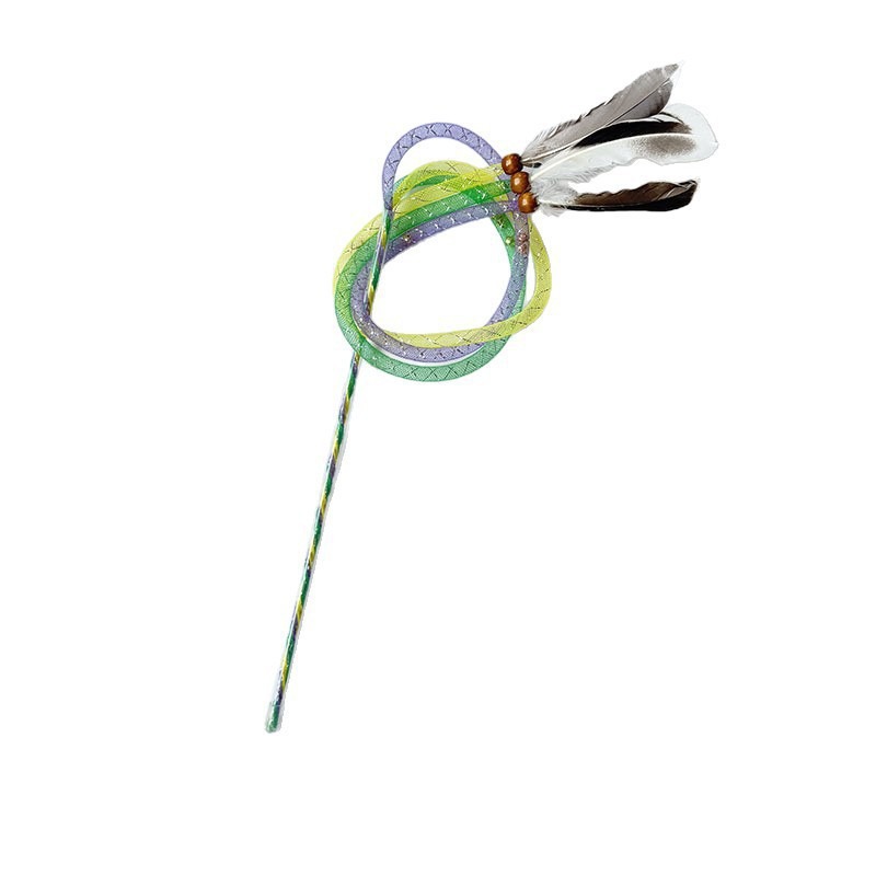 新款弹力逗猫棒网管毛球羽毛逗猫棒玩具互动自嗨解闷猫咪玩具