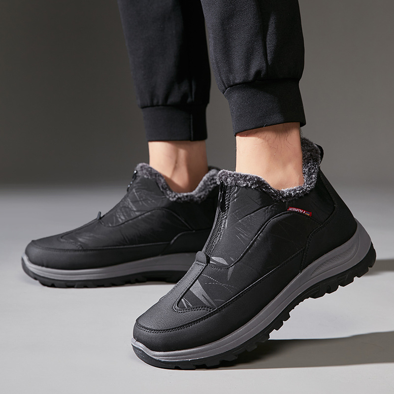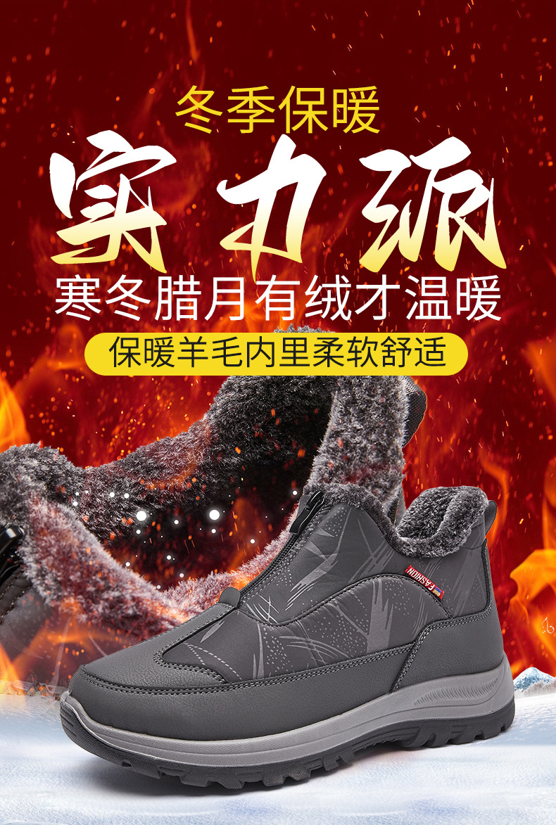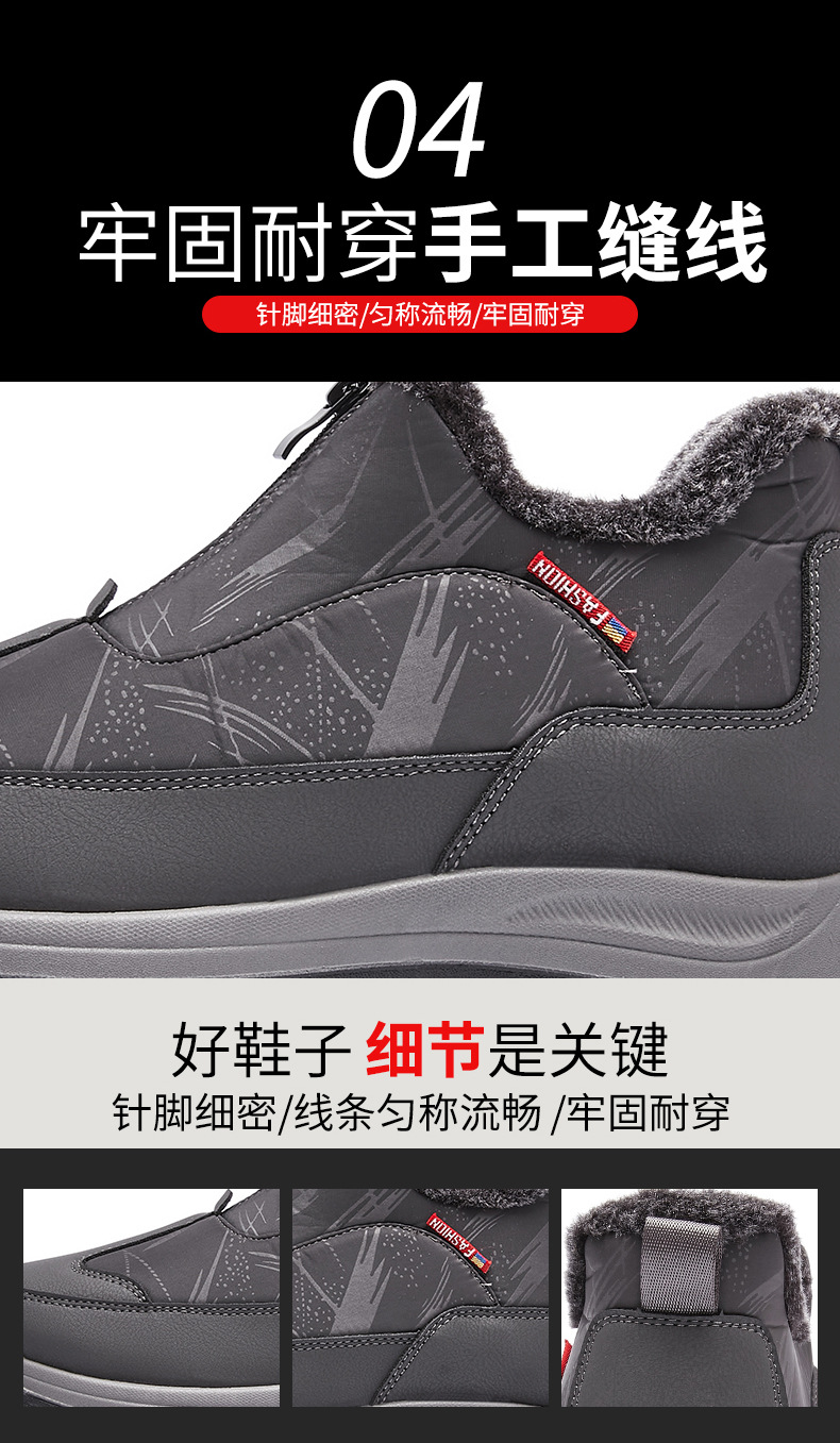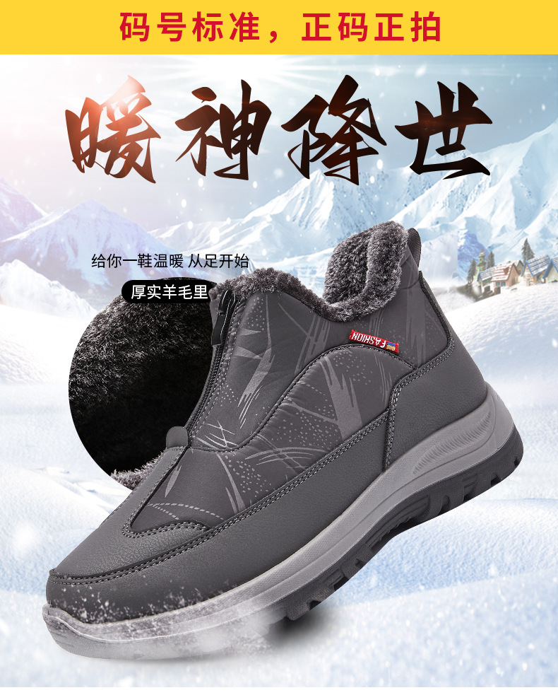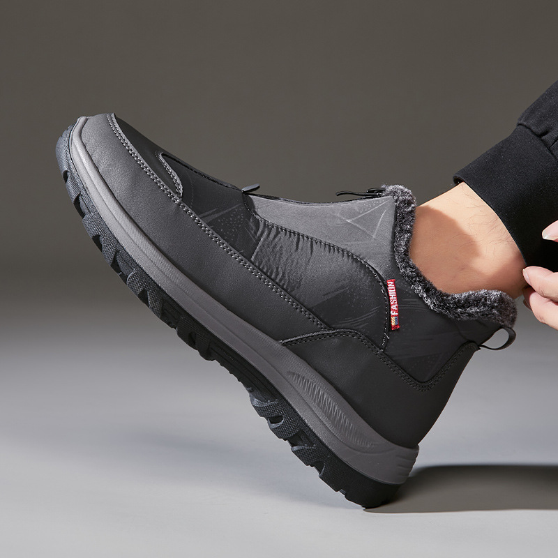 겨울철 남성용 올드 베이징 면화, 벨벳으로 두껍고 따뜻함, 중년 및 노인 아빠 천 신발, 노인을 위한 미끄럼 방지 및 방수 스노우 부츠