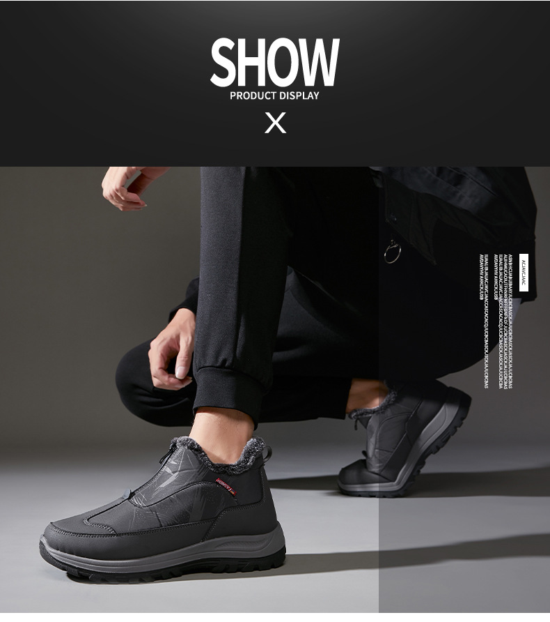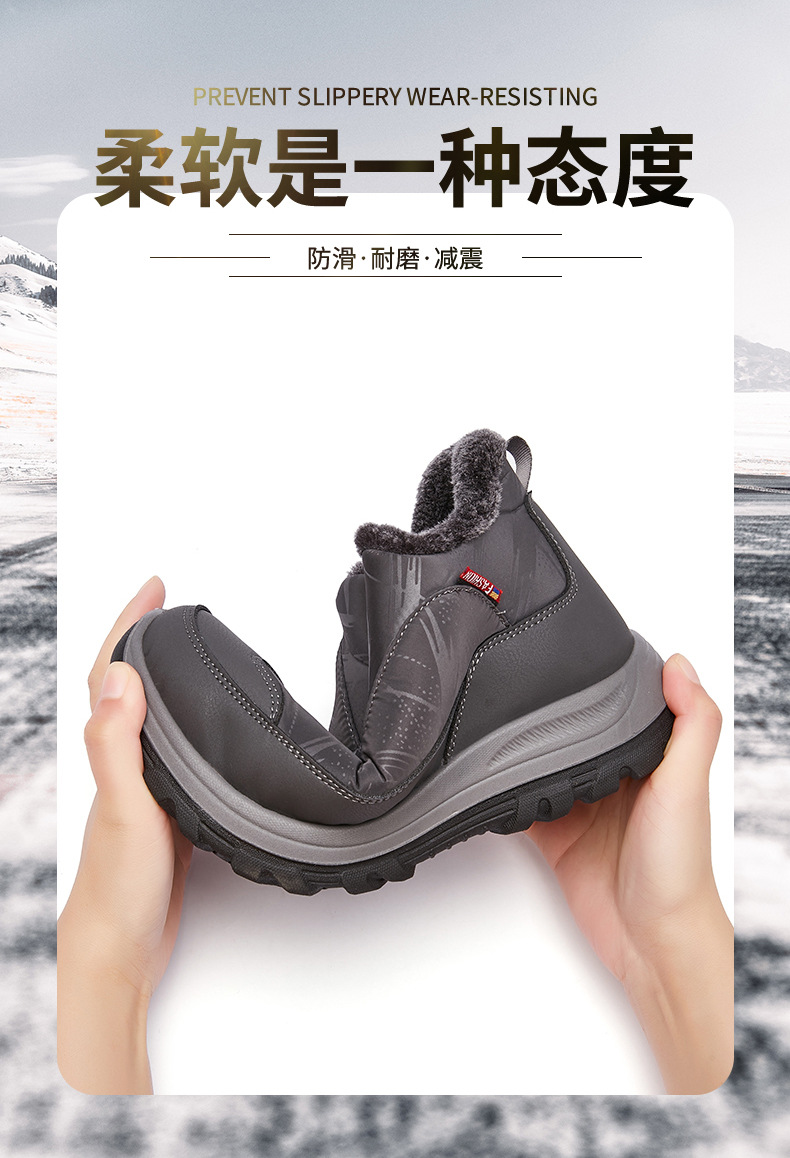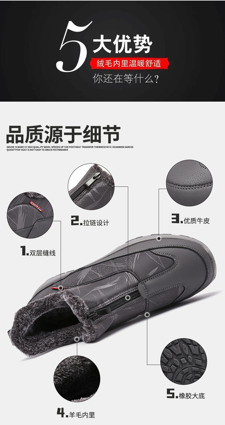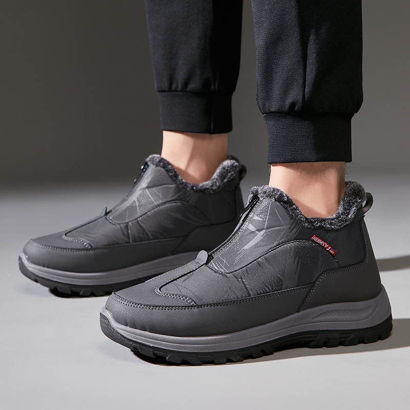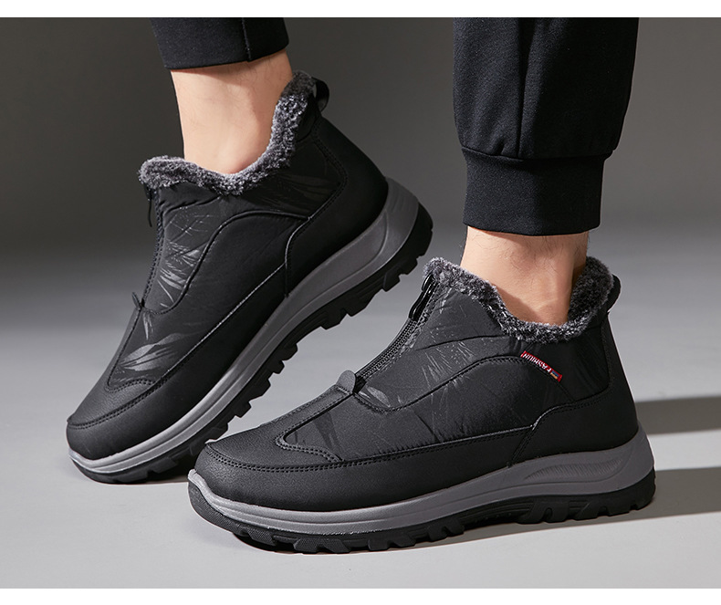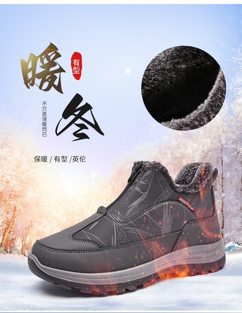겨울철 남성용 올드 베이징 면화, 벨벳으로 두껍고 따뜻함, 중년 및 노인 아빠 천 신발, 노인을 위한 미끄럼 방지 및 방수 스노우 부츠