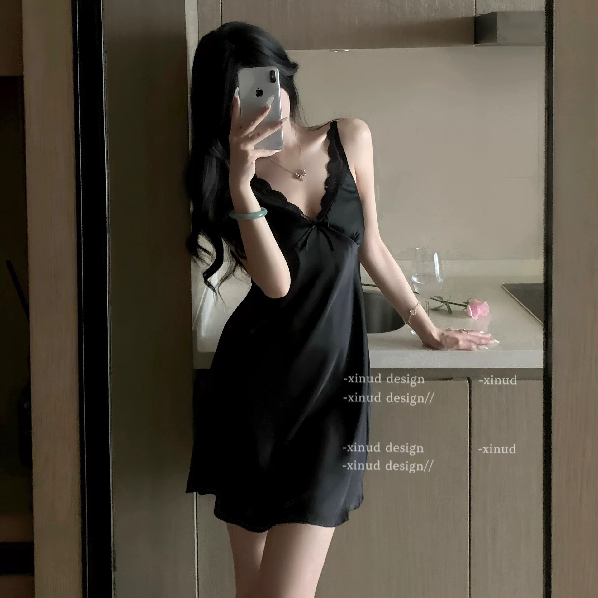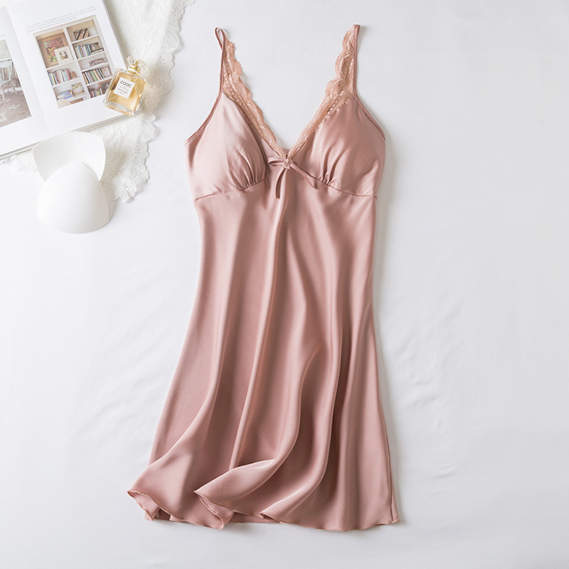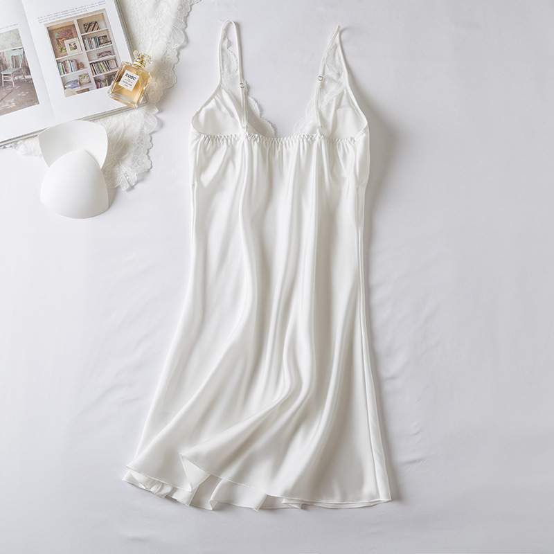 섹시한 잠옷 여성 여름 얇은 얼음 실크 슬링 Nightdress 여성 Deep V 유혹 섹시한 란제리