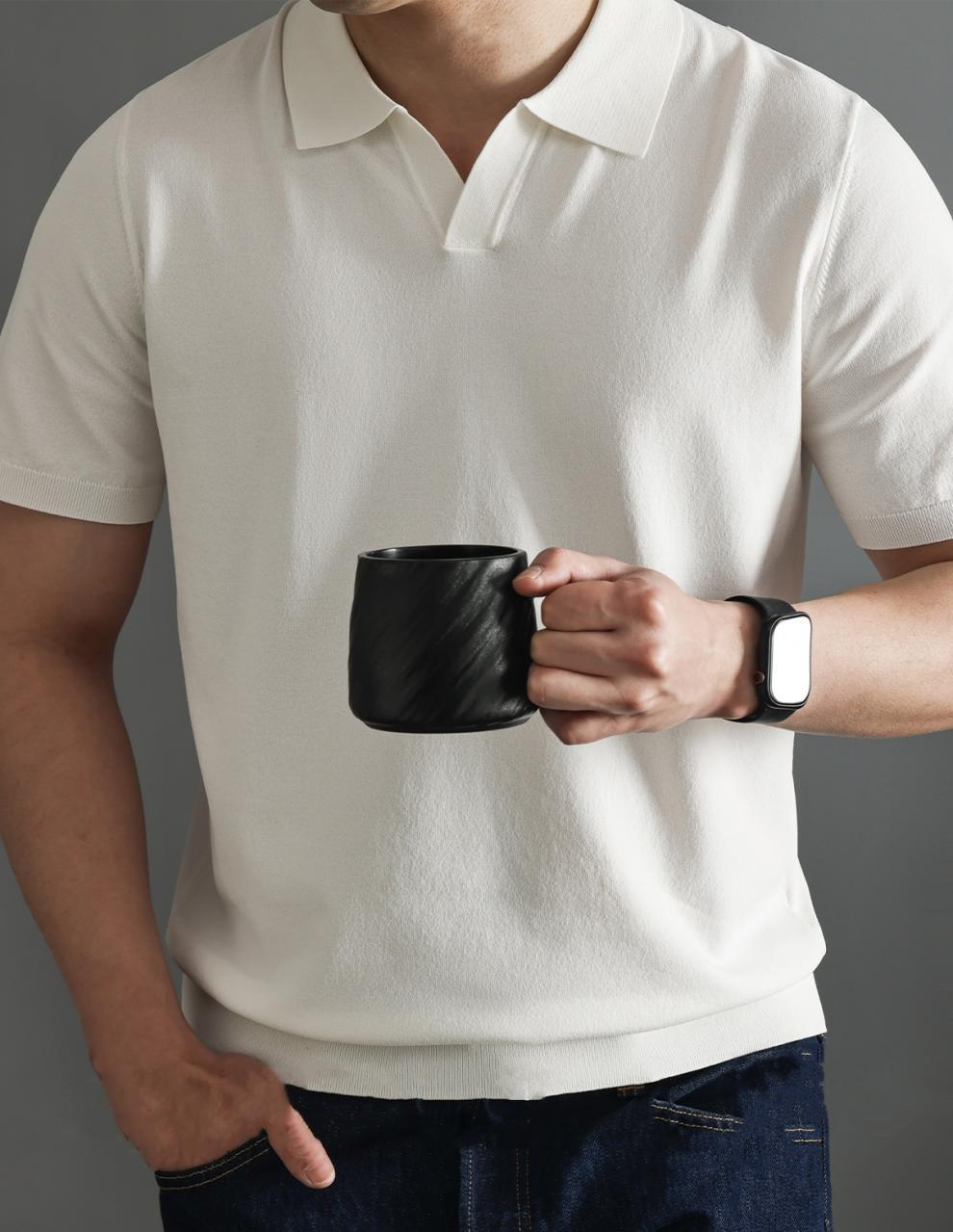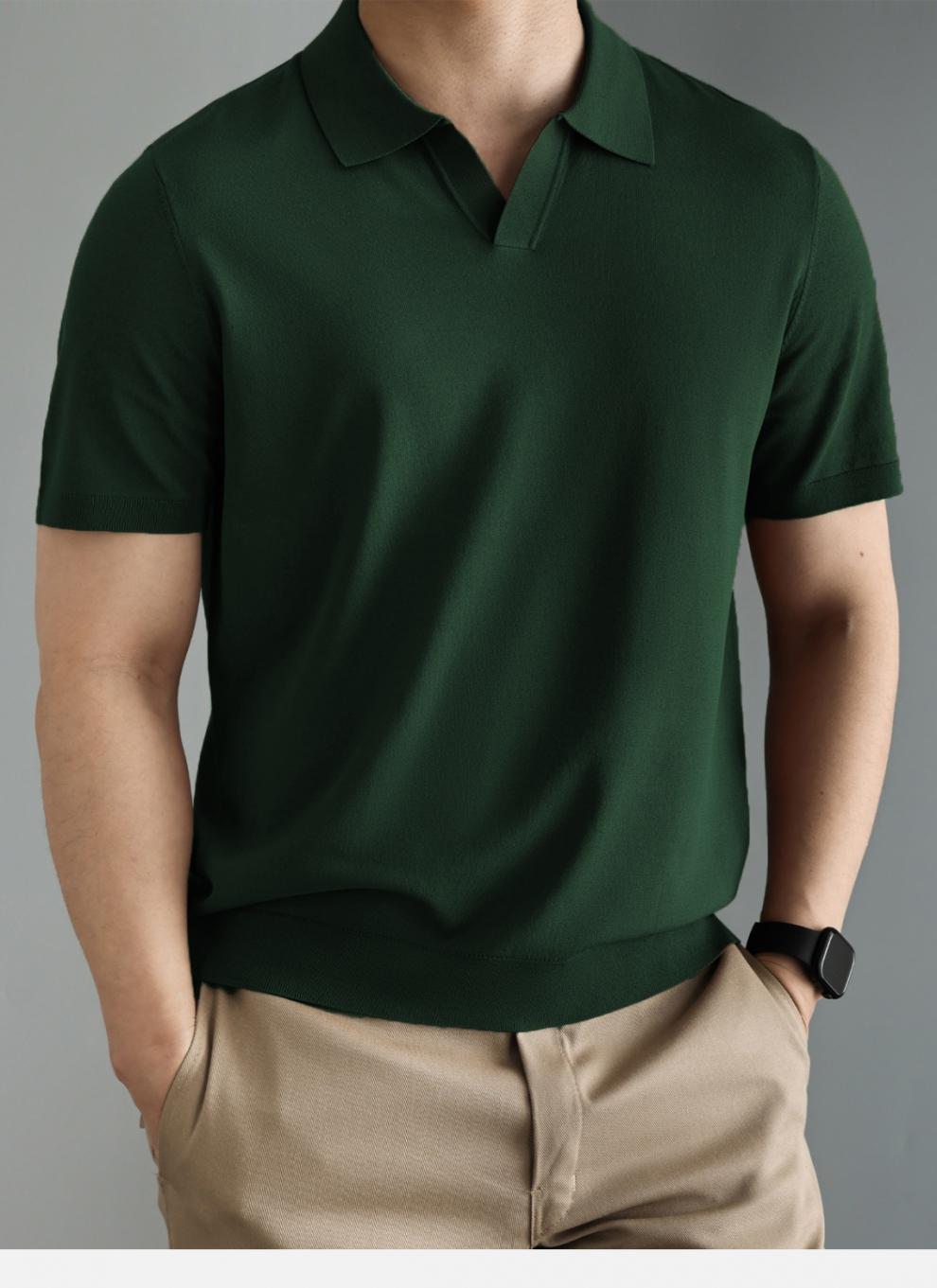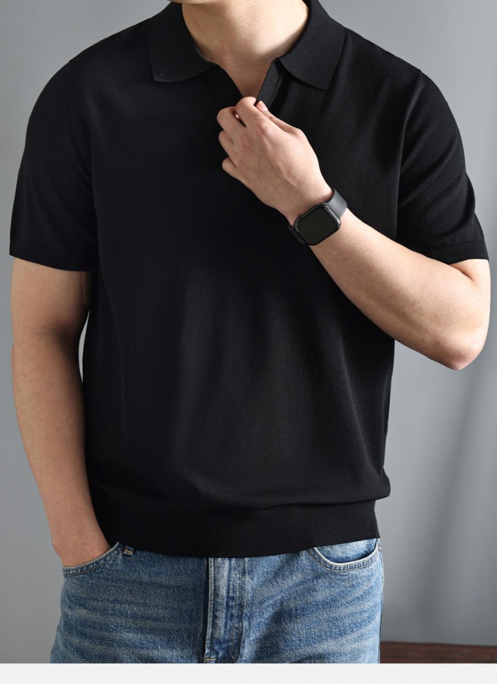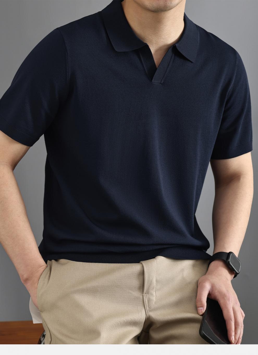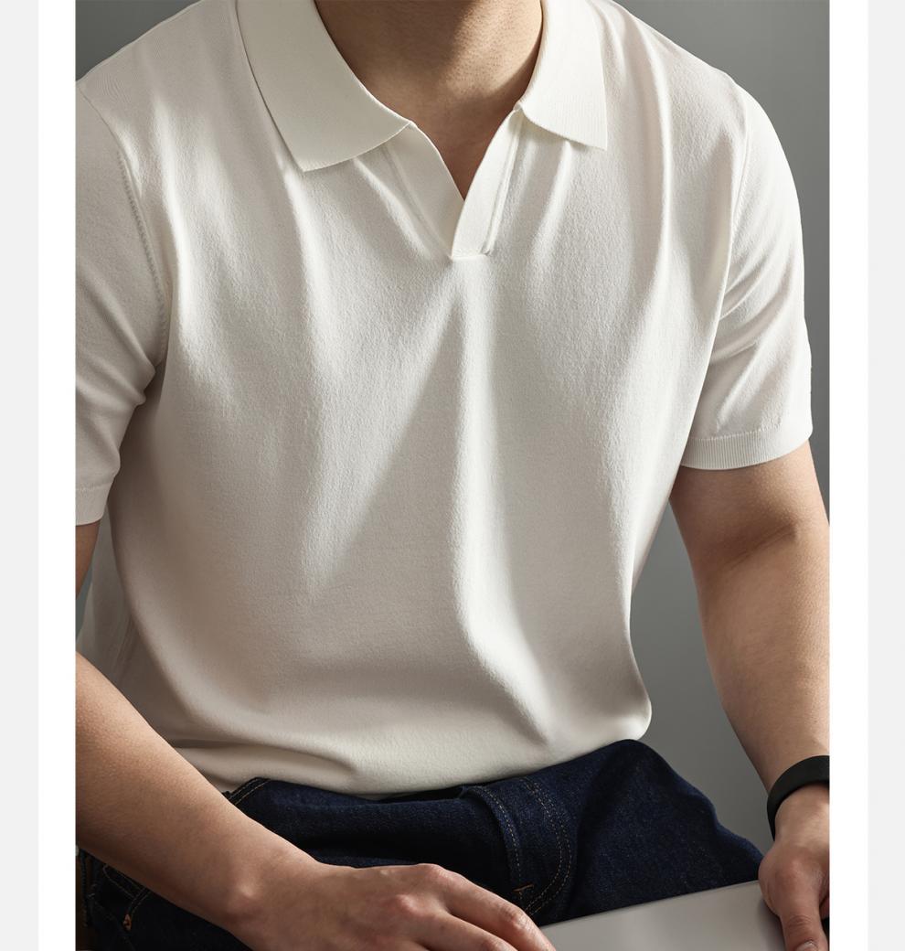 하이 엔드 니트 반팔 남성용 이탈리아 갈매기 칼라 통근 폴로 셔츠 비즈니스 신사 옷깃 멋진 단색 티셔츠 새로운