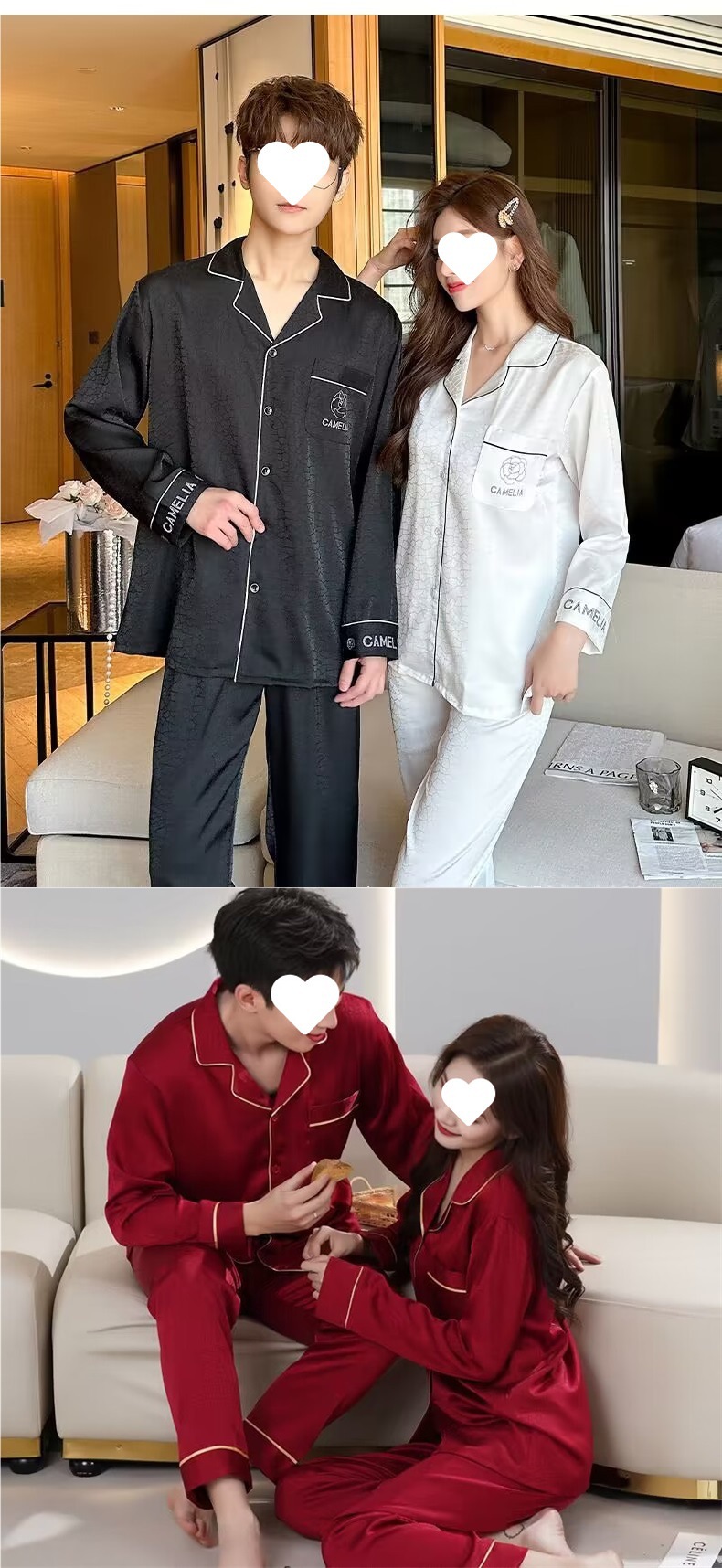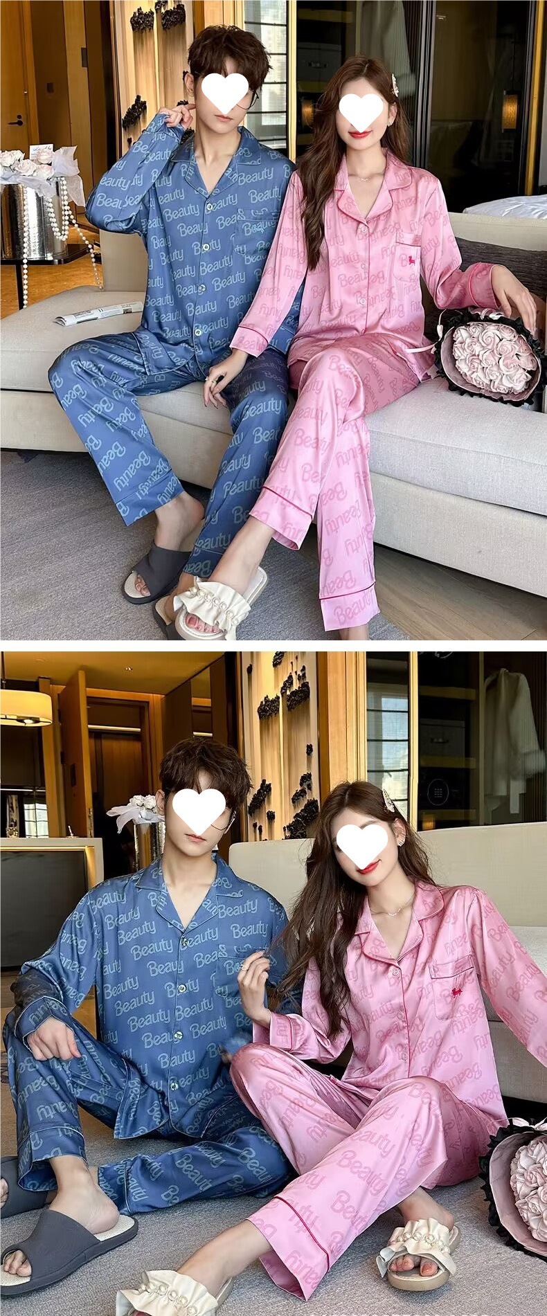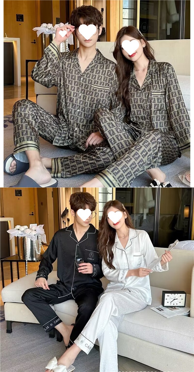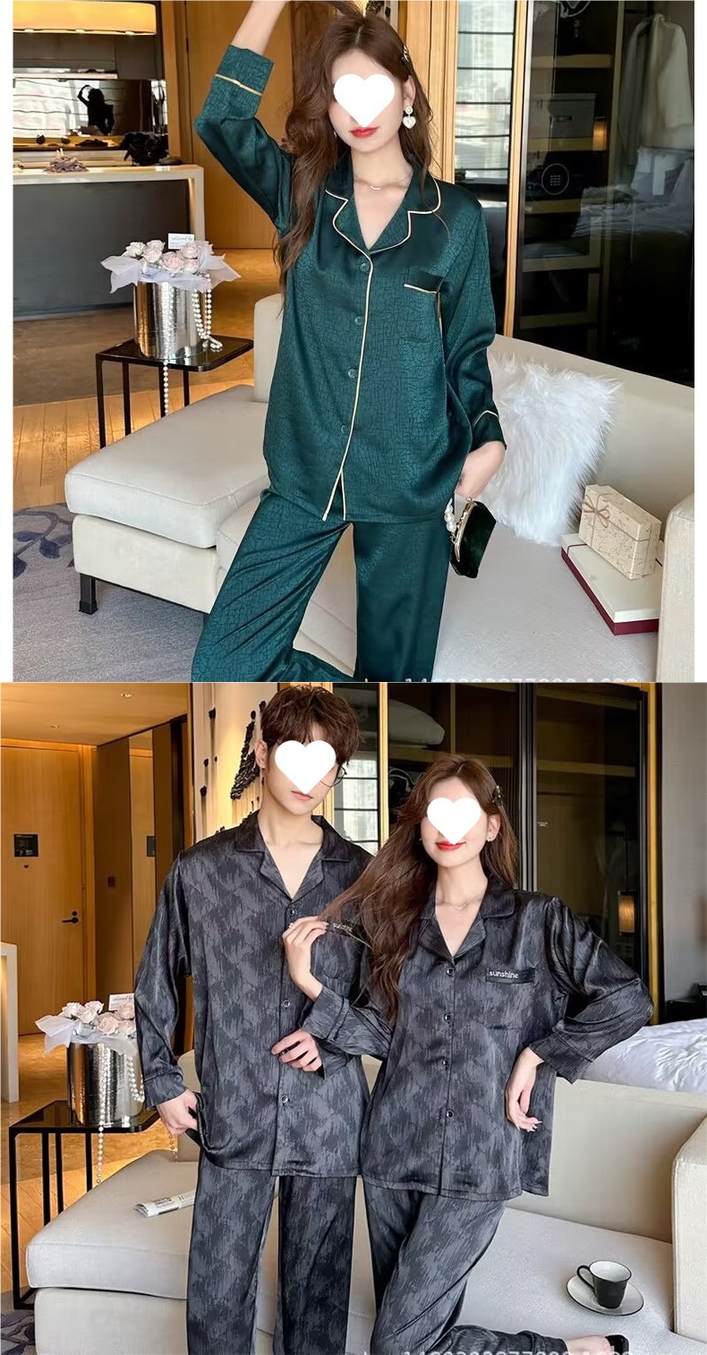 커플 실크 잠옷 긴팔 바지 플러스 사이즈 남성과 여성의 뽕나무 실크 여름 컬러 투피스 양복 실크