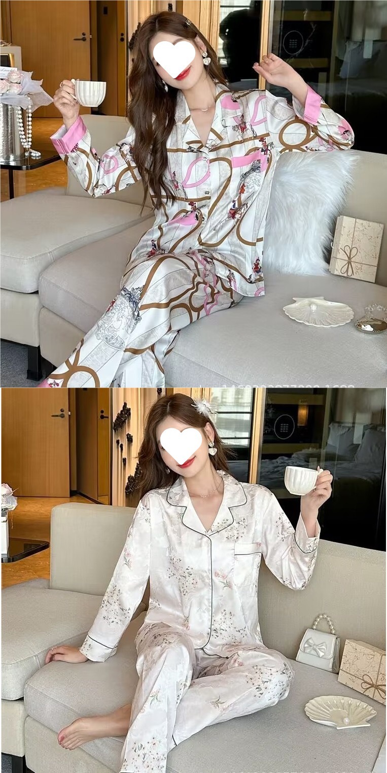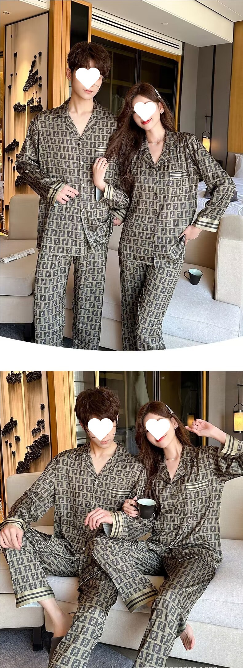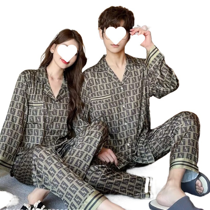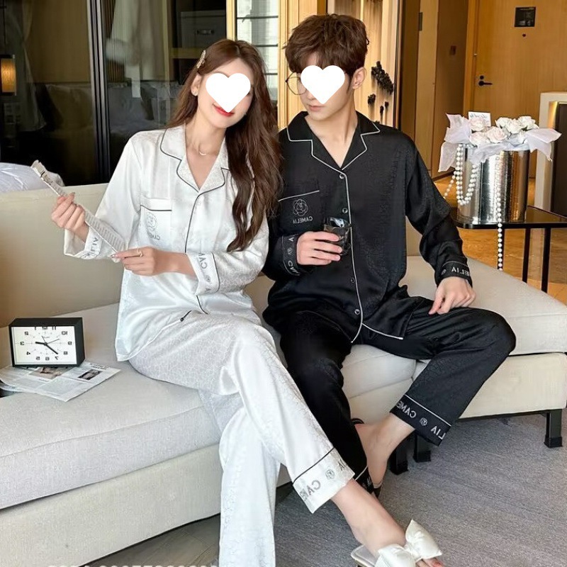 커플 실크 잠옷 긴팔 바지 플러스 사이즈 남성과 여성의 뽕나무 실크 여름 컬러 투피스 양복 실크