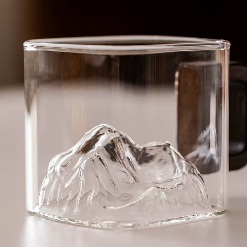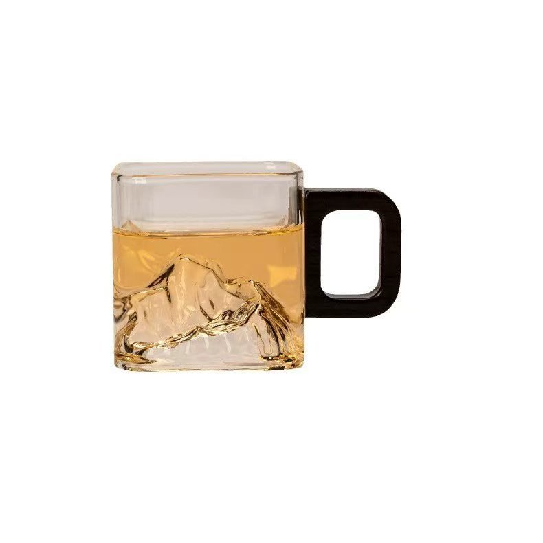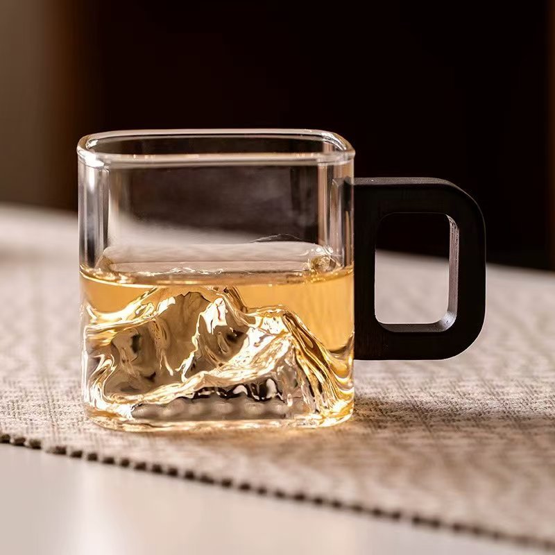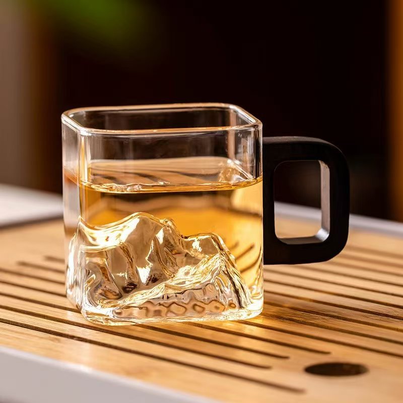 나무 손잡이가 있는 작은 사각형 차 컵 제조업체 투명 유리 나무 손잡이가 있는 사각형 차 컵 쿵푸 작은 차 그릇 유리 컵