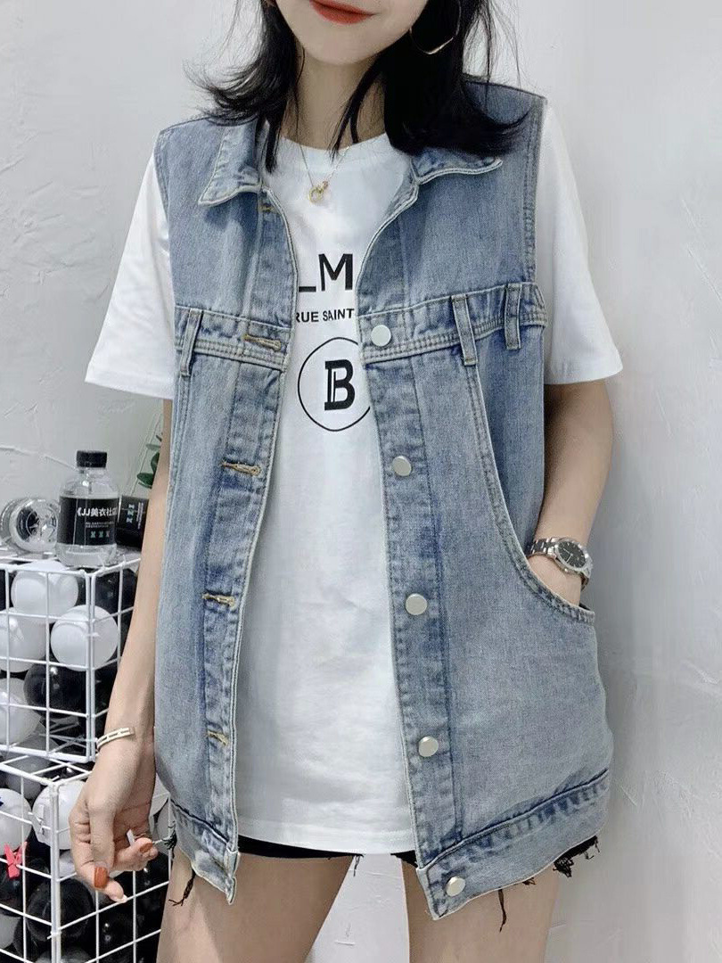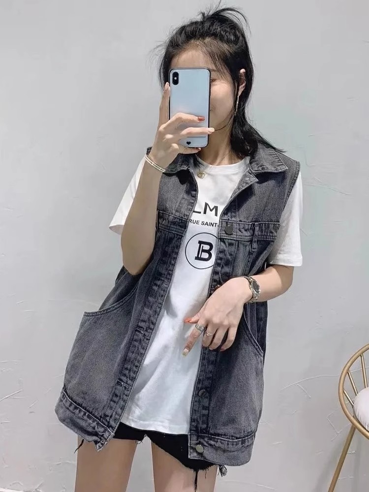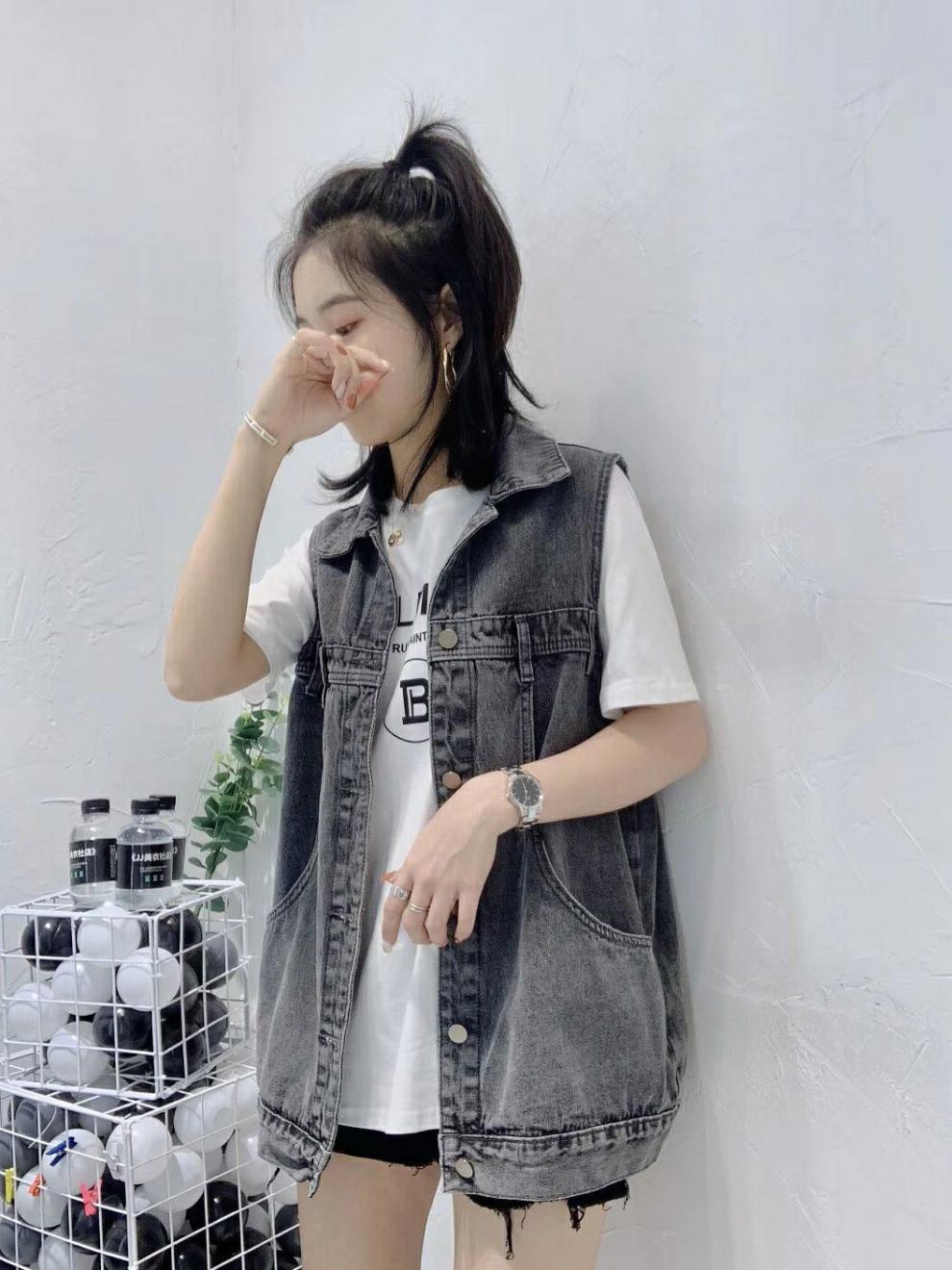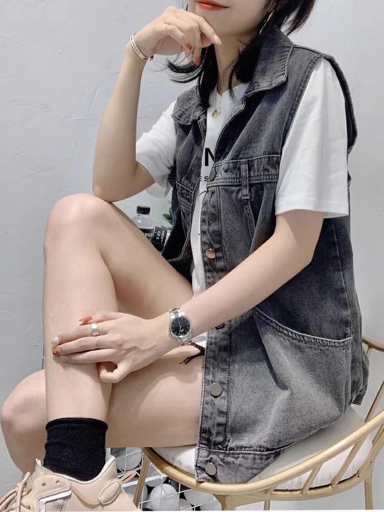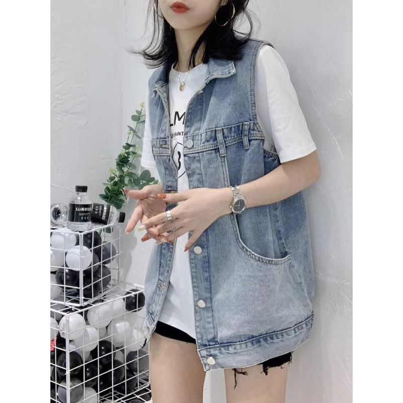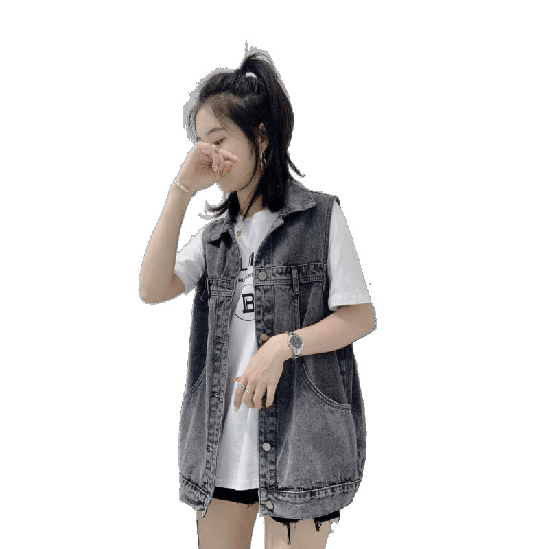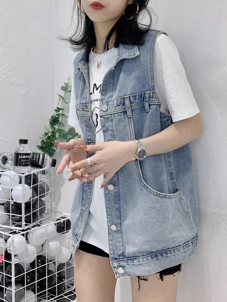 봄과 가을 새로운 스타일 데님 조끼 여성 플러스 사이즈 느슨한 민소매 캐주얼 다목적 조끼 작업복 양복 조끼 트렌디