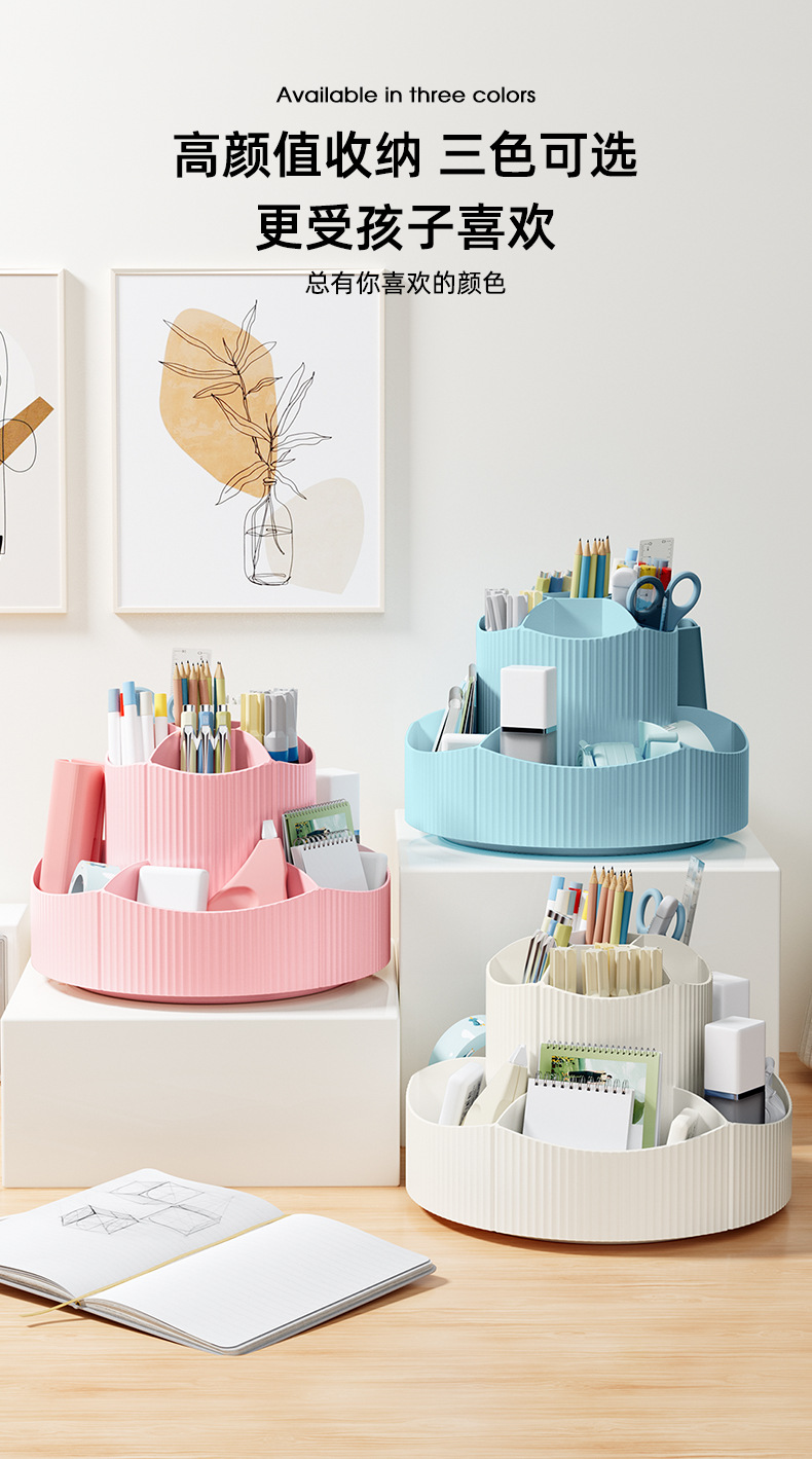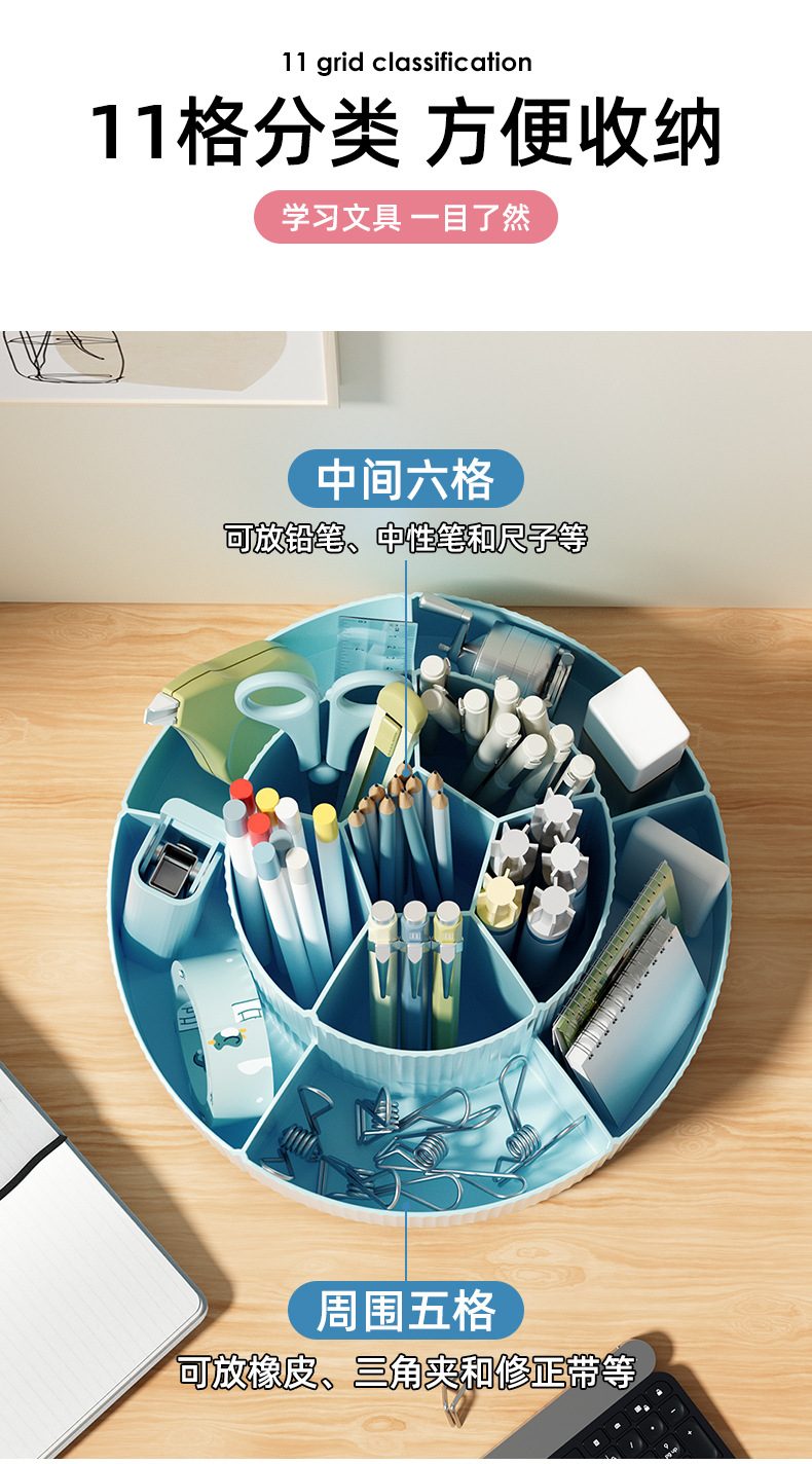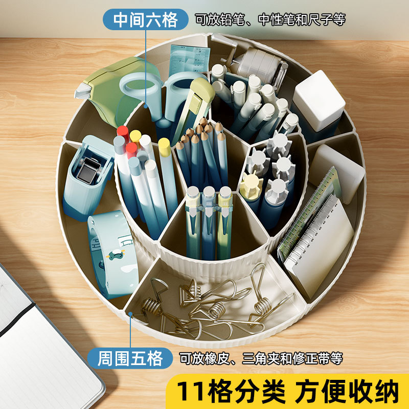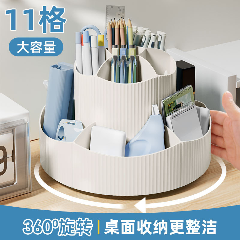 11 그리드 대용량 회전 펜 홀더 보관 상자 사무실 학생 데스크탑 편지지 보관 어린이 소녀 다기능