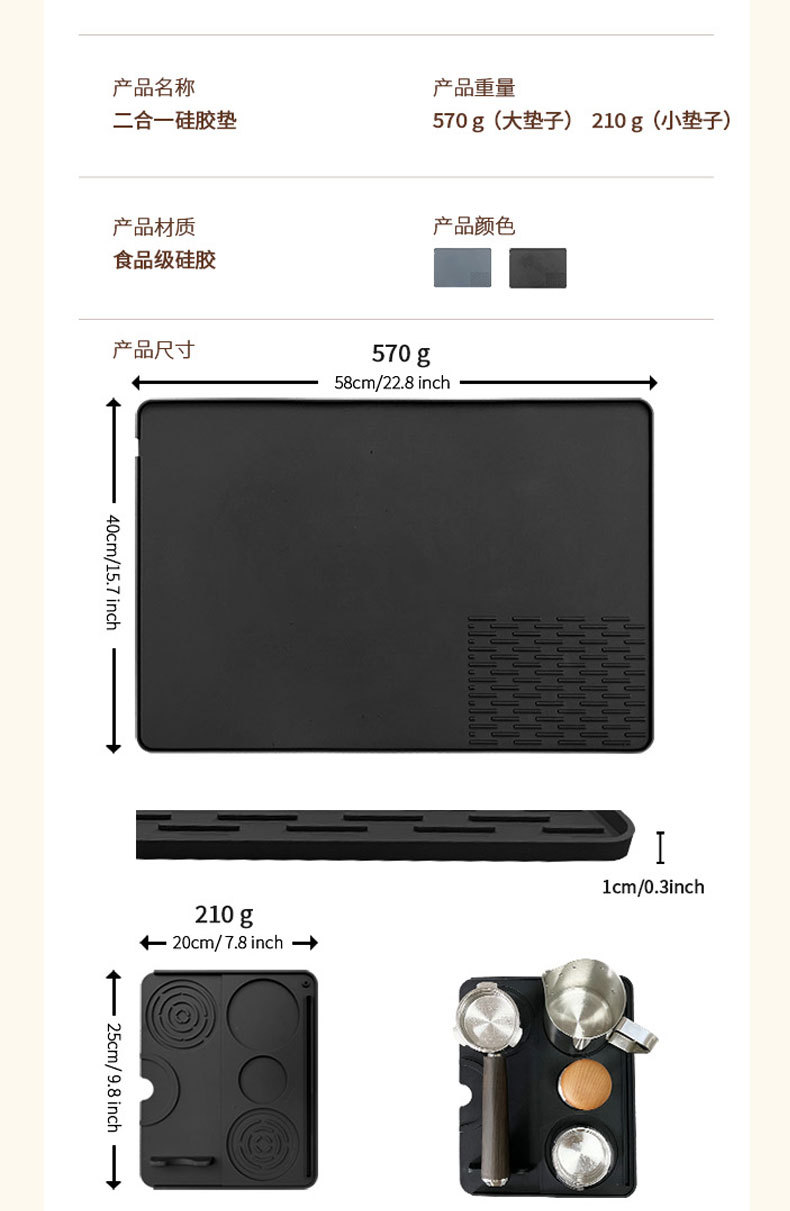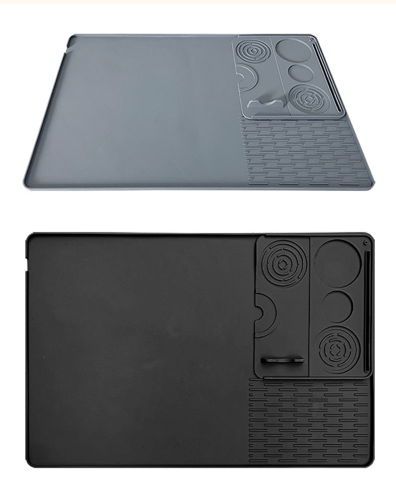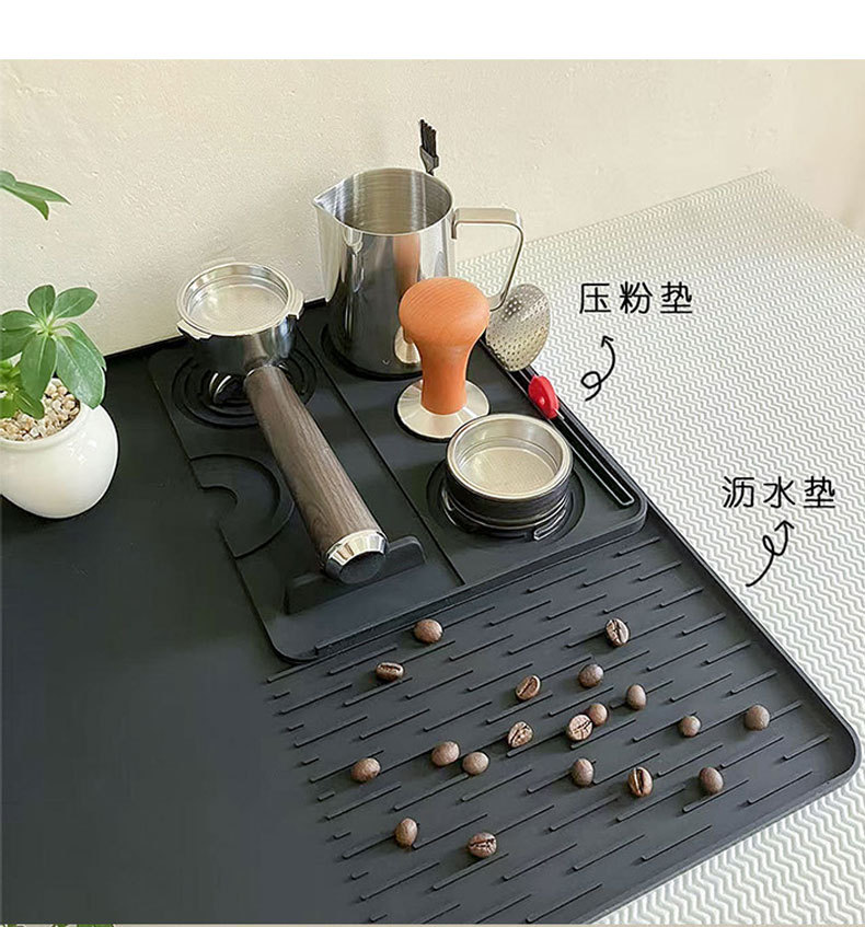 그레이 실리콘 커피머신 매트 + 탬핑 매트(2-in-1 세트)
