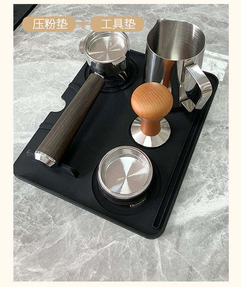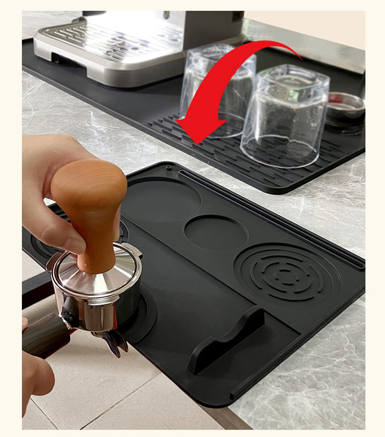 블랙 실리콘 커피머신 매트 + 탬핑 매트(2-in-1 세트)
