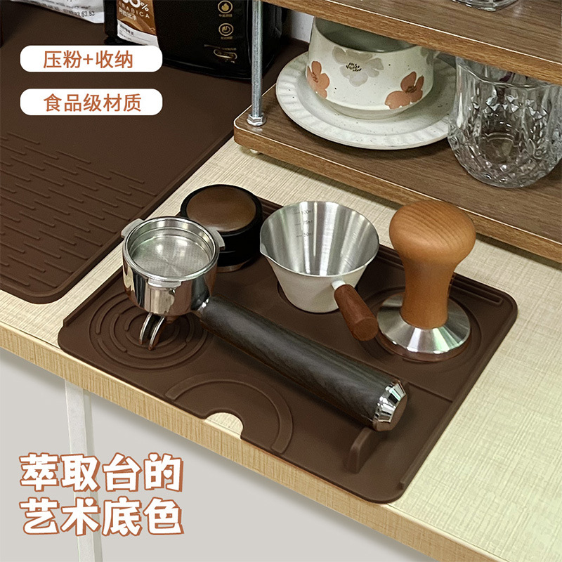 브라운 실리콘 커피머신 매트 + 프레싱 패드(2-in-1 세트)