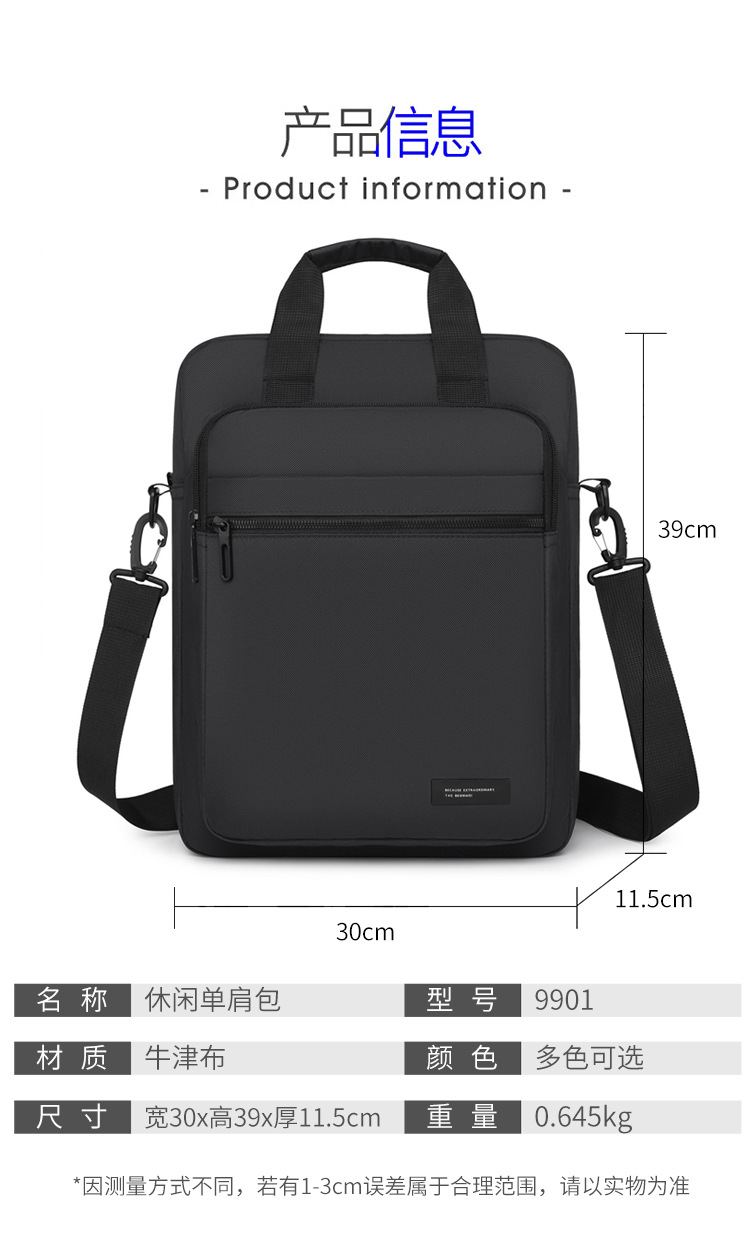 남자 가방 옥스포드 천 숄더백 2025 봄 새로운 국경 간 트렌드 크로스 바디 백 수직 노트북