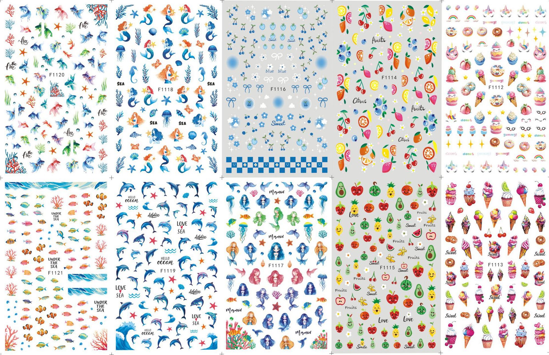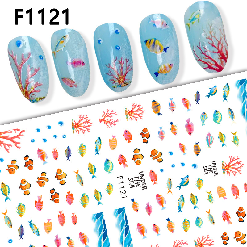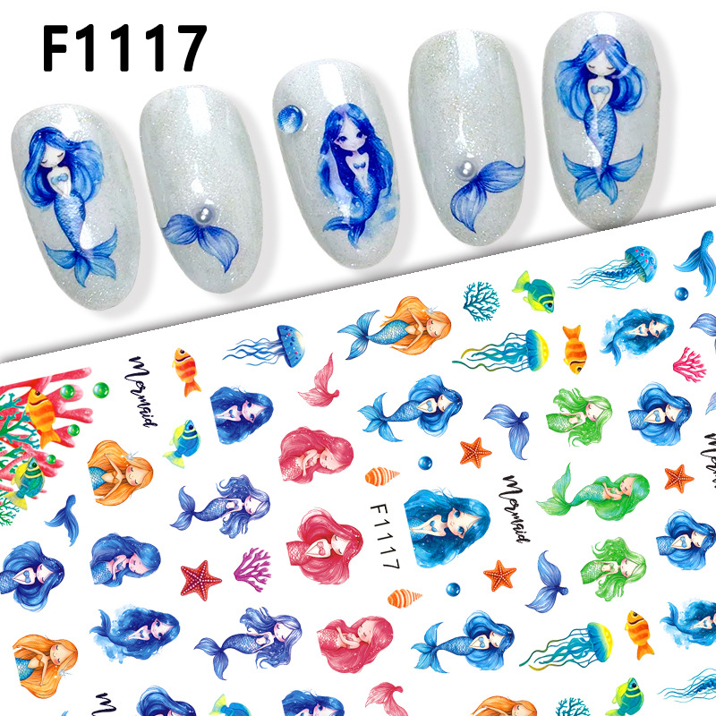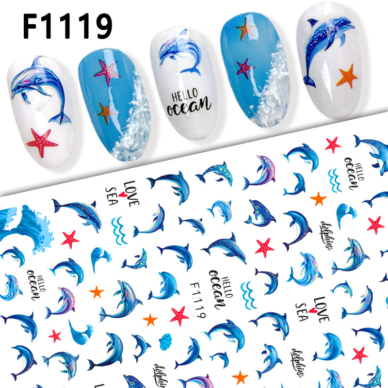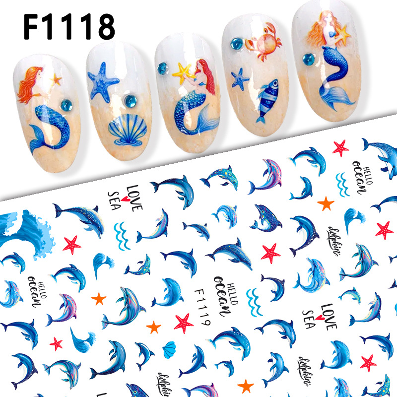 오션 스타일 코코넛 나무 네일 스티커 네일 아트 스티커 열대 잎 불가사리 쉘 인어