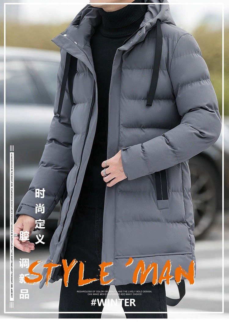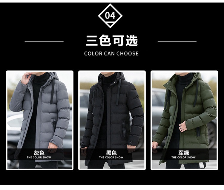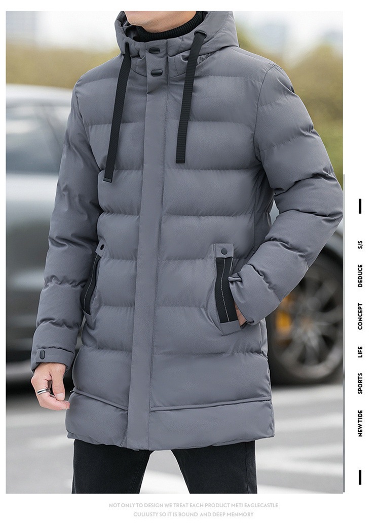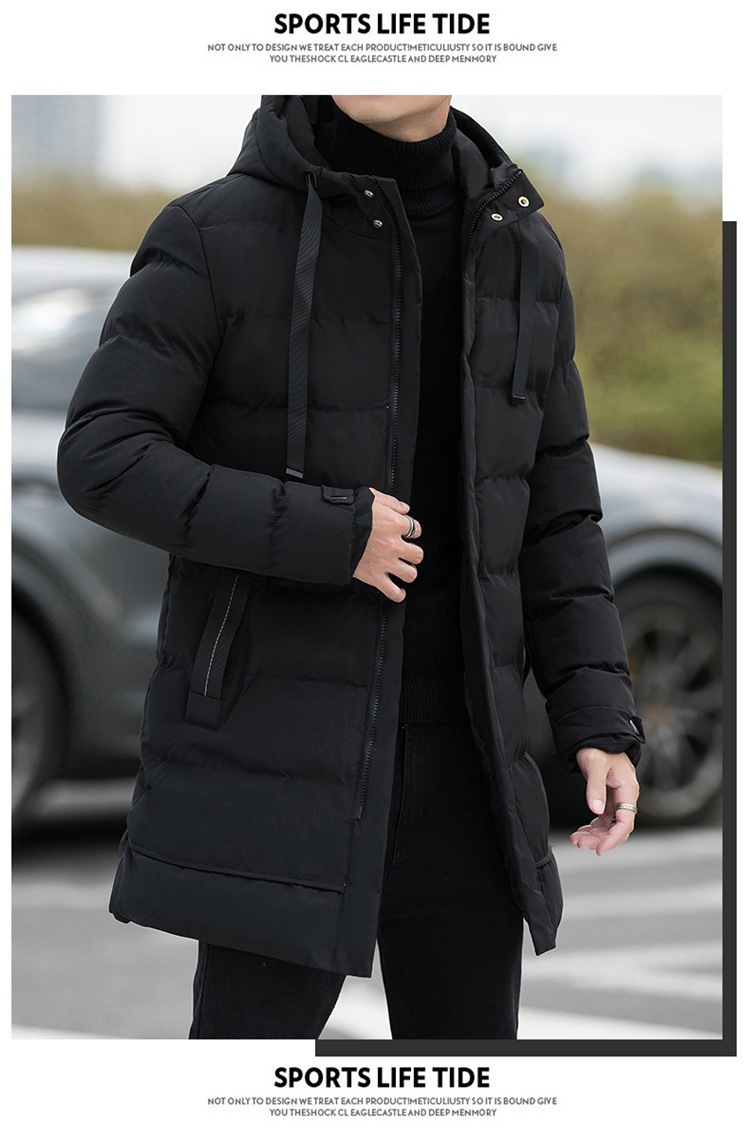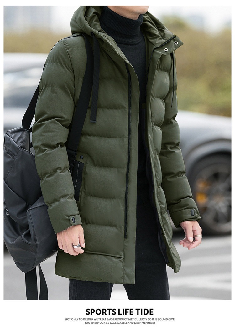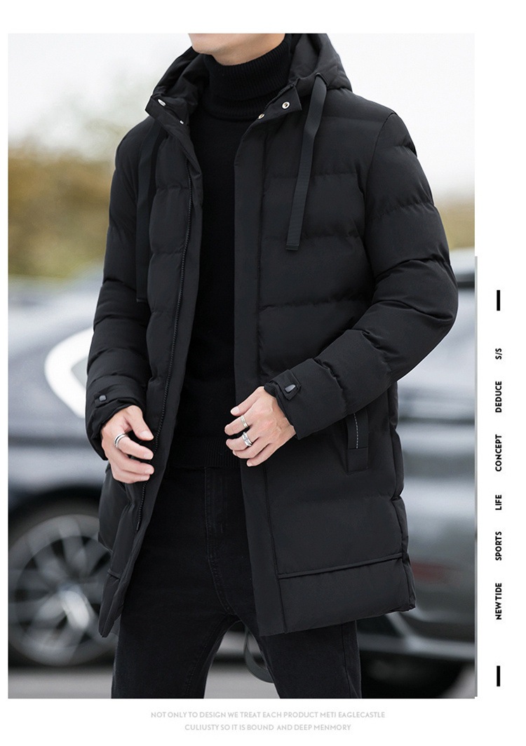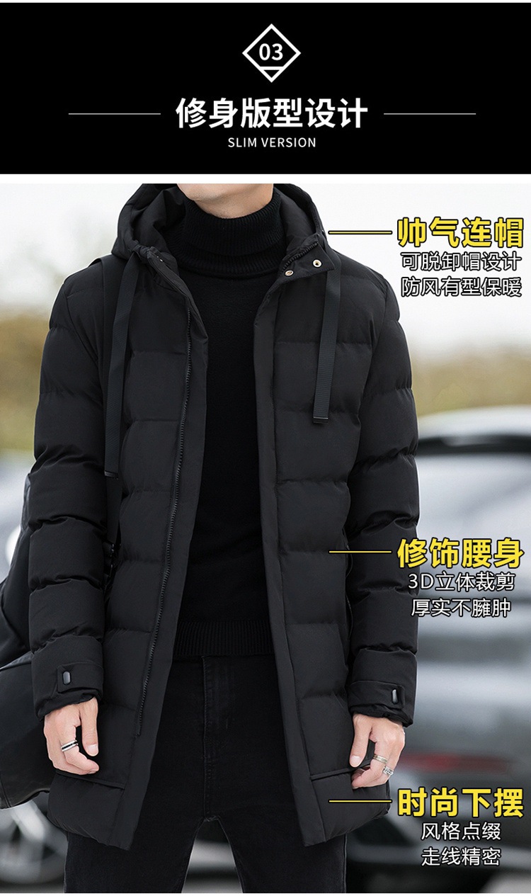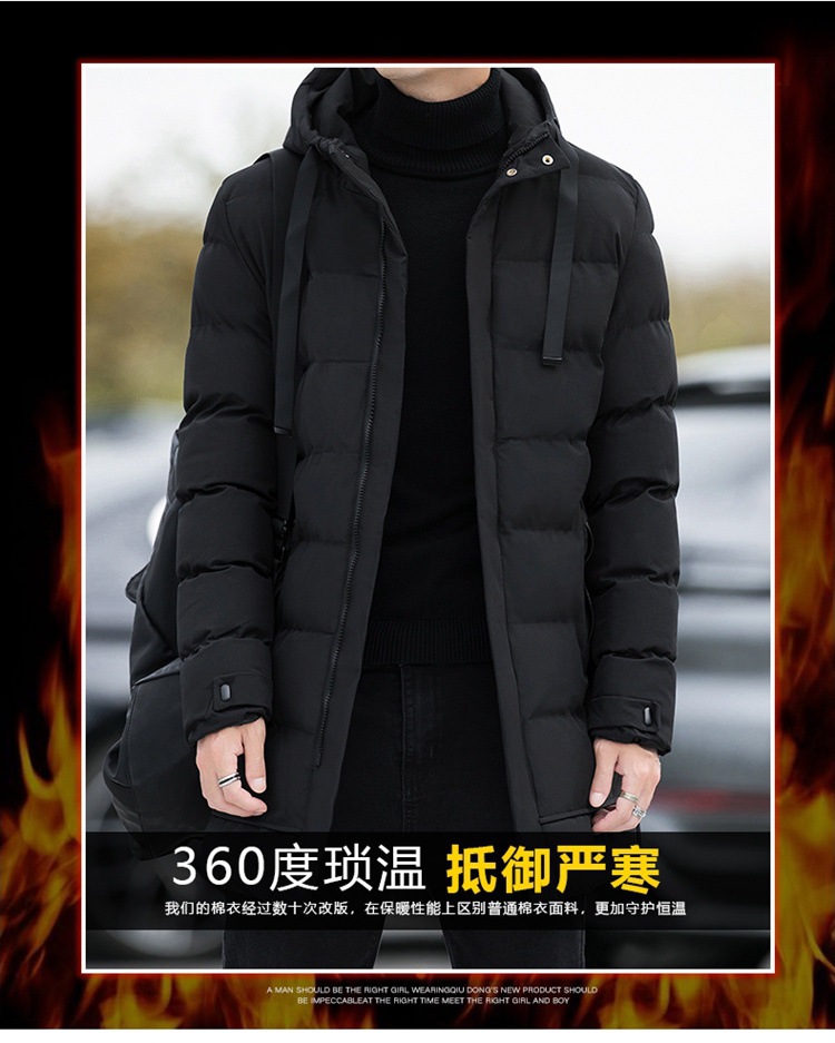 겨울 중간 길이 두꺼운 후드 방한 면 코트 남성 코트 한국 스타일 면 패딩 재킷 다운 면 코트 겨울 코트