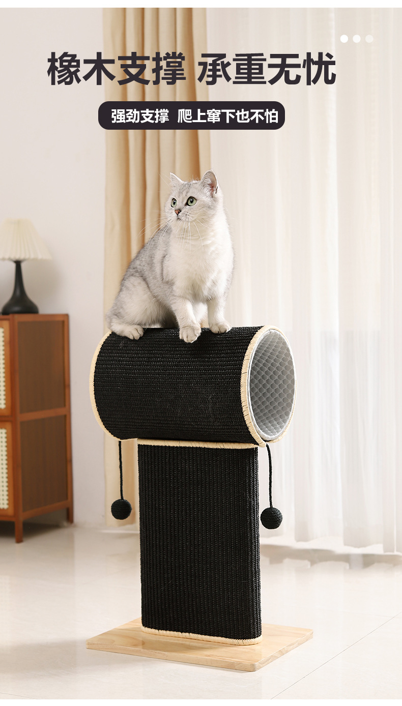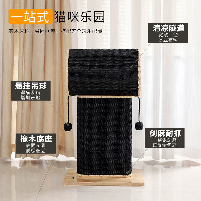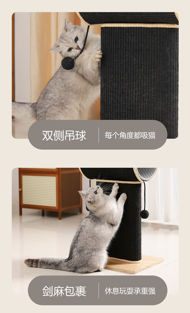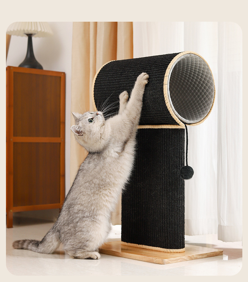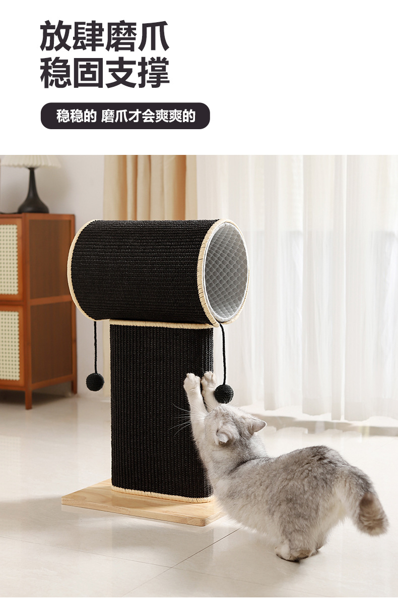 고양이 스크래쳐, 내마모성, 부스러기 잘 안뜨는 고양이 스크래쳐 기둥, 사이잘 클로보드, 원목 고양이 클로보드, 스탠드형 클라이밍 프레임, 일체형 고양이 장난감
