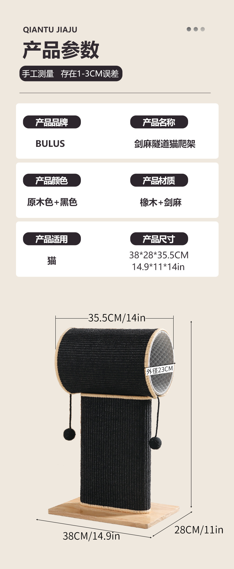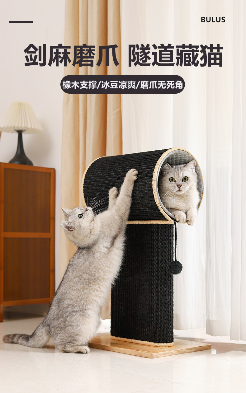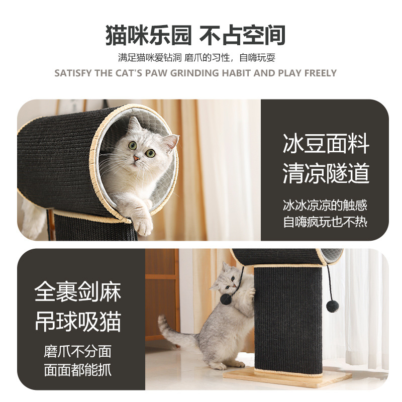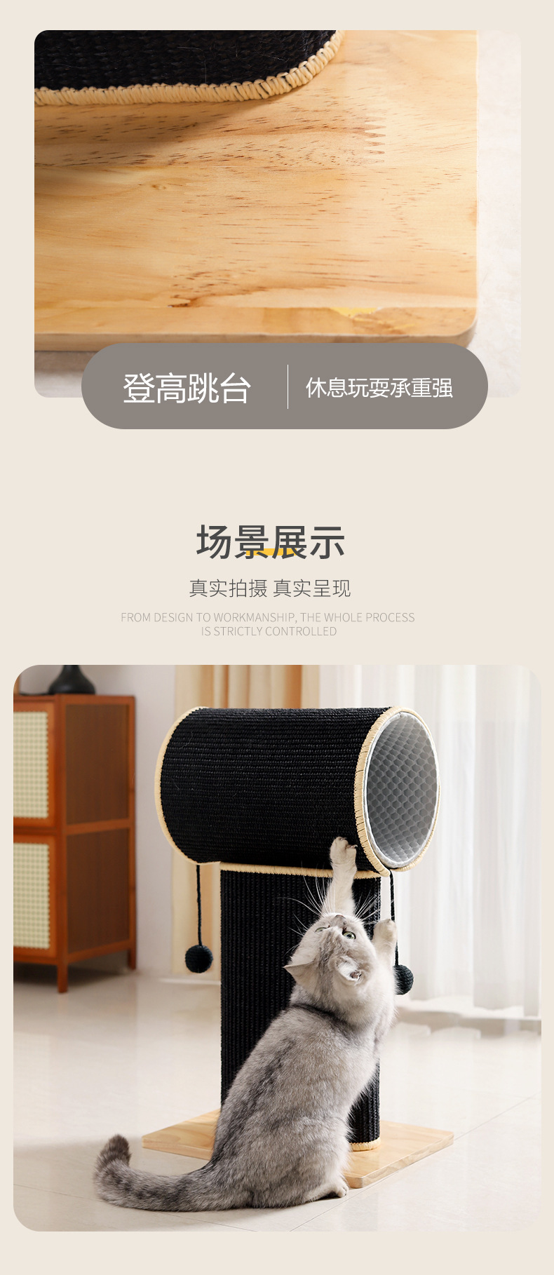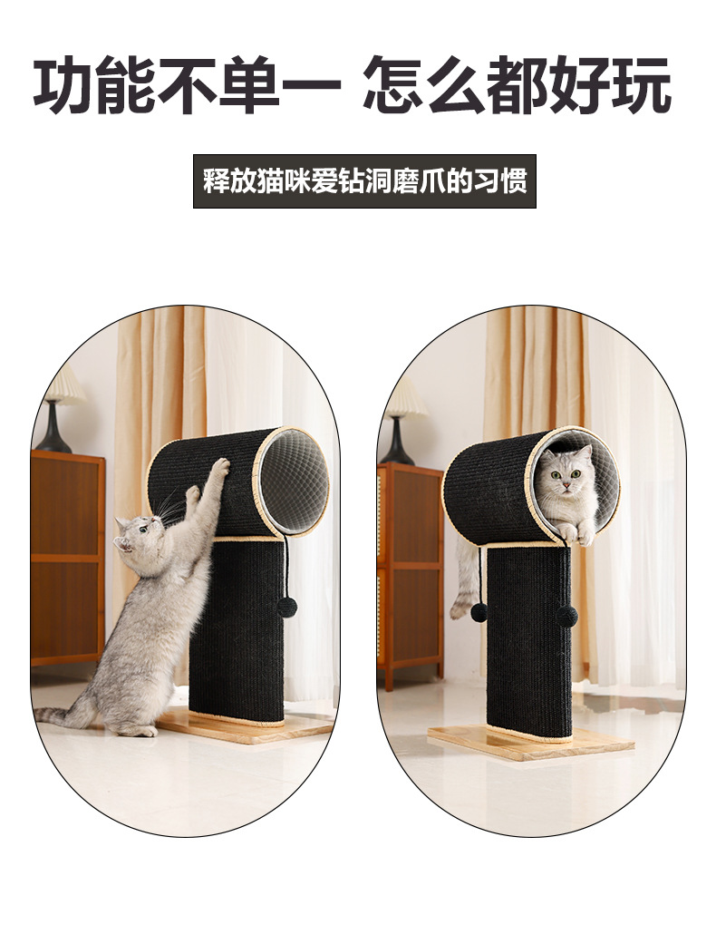 고양이 스크래쳐, 내마모성, 부스러기 잘 안뜨는 고양이 스크래쳐 기둥, 사이잘 클로보드, 원목 고양이 클로보드, 스탠드형 클라이밍 프레임, 일체형 고양이 장난감