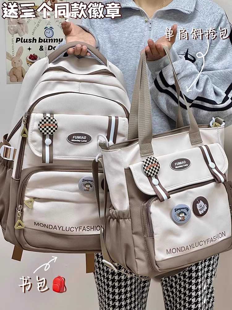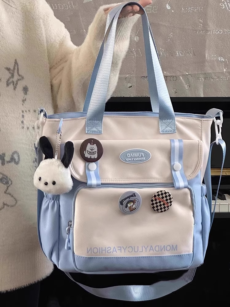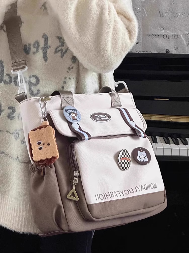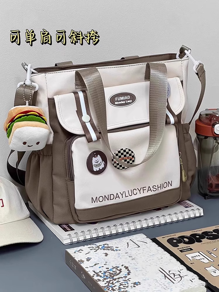 일본 Ins 대비 컬러 학생 핸드백 틸리지 백 캔버스 중학교 학생 대용량 클래스 가방 여성용 크로스 바디 백