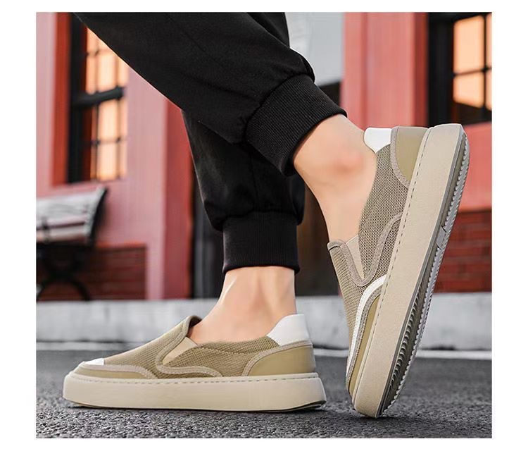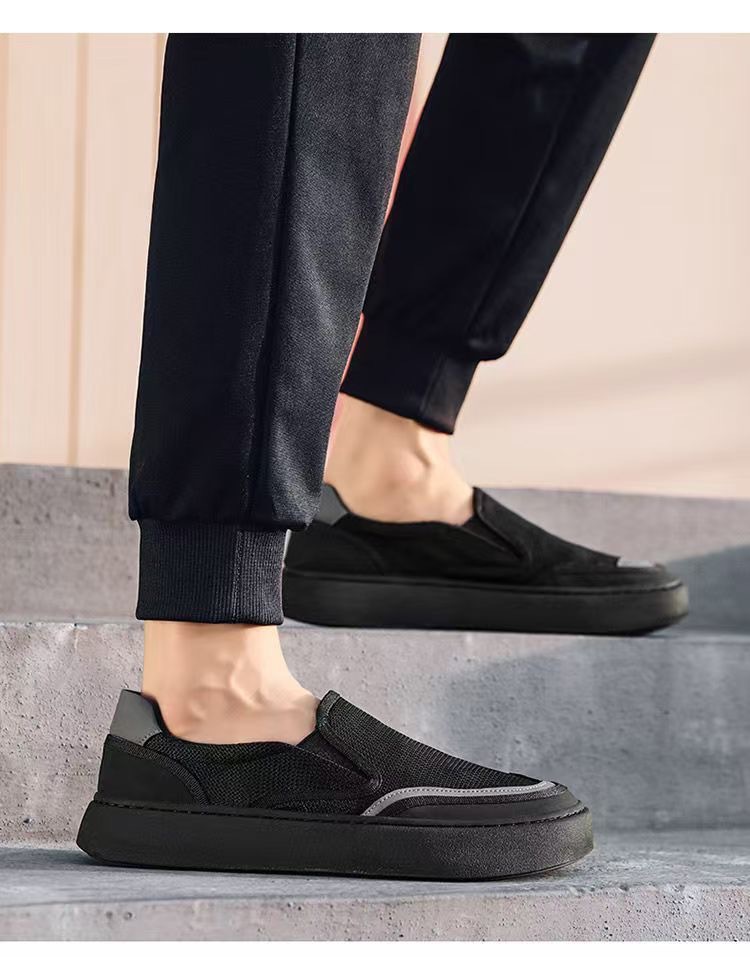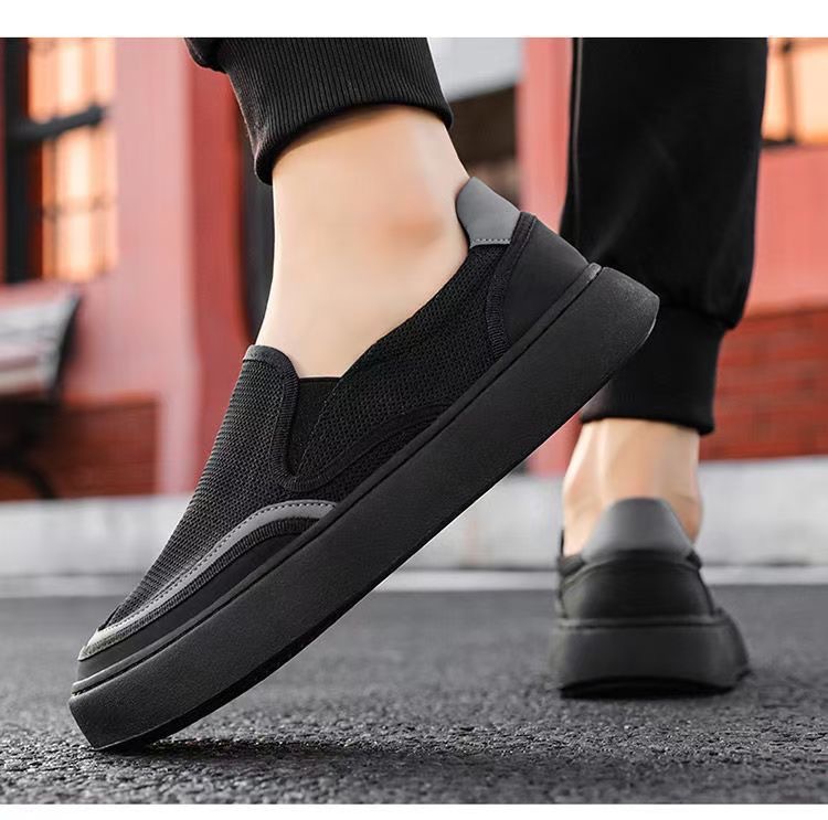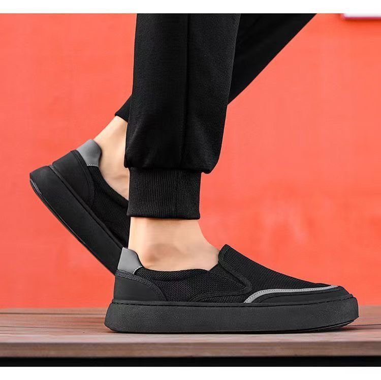 여름 캐주얼 신발 통기성 캔버스 신발 얇은 메쉬 남성 보드 신발 블랙 슬립 온 운동화 게으른 신발