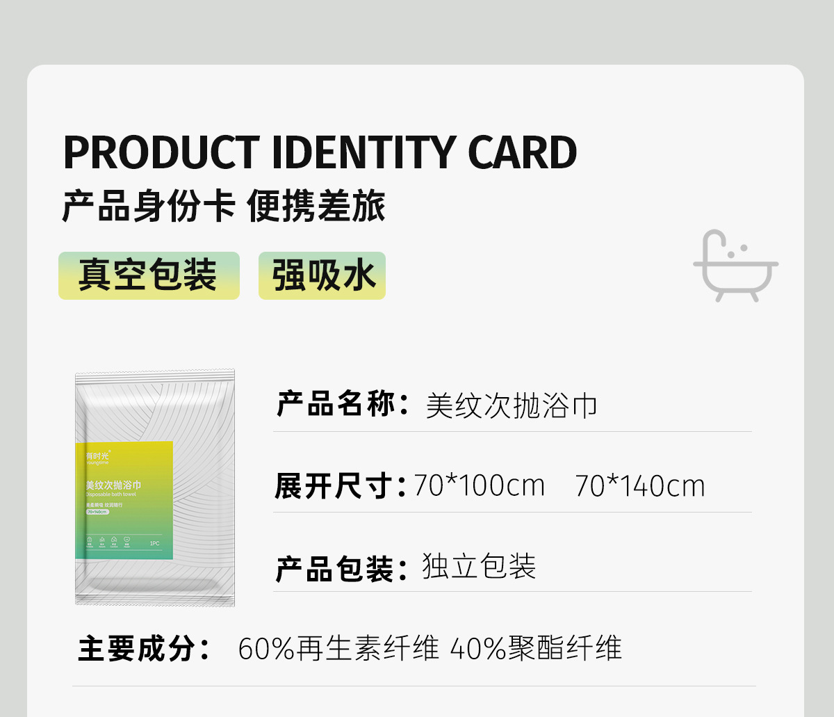 [공간 절약을 위한 진공 압축] 목욕 타올 1팩, 70*140cm