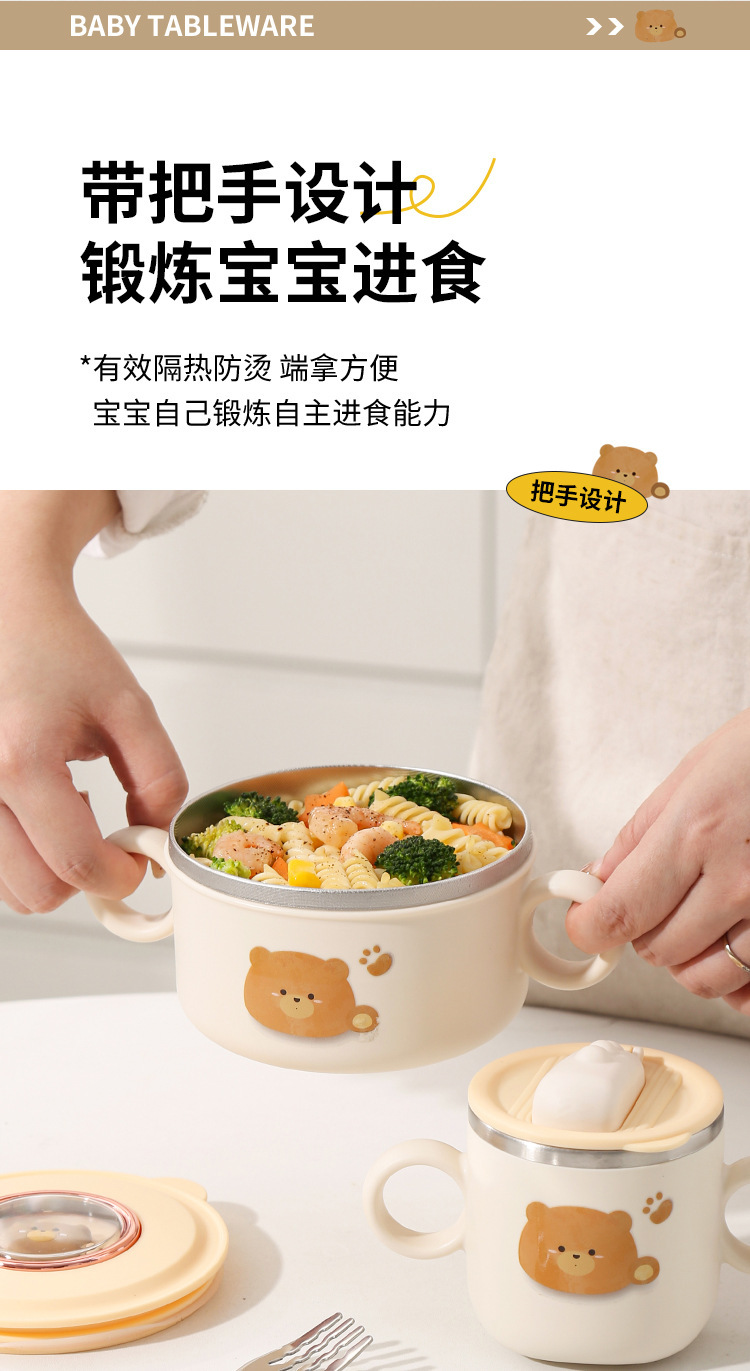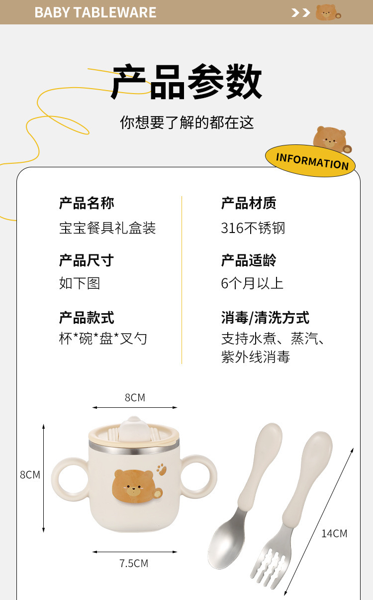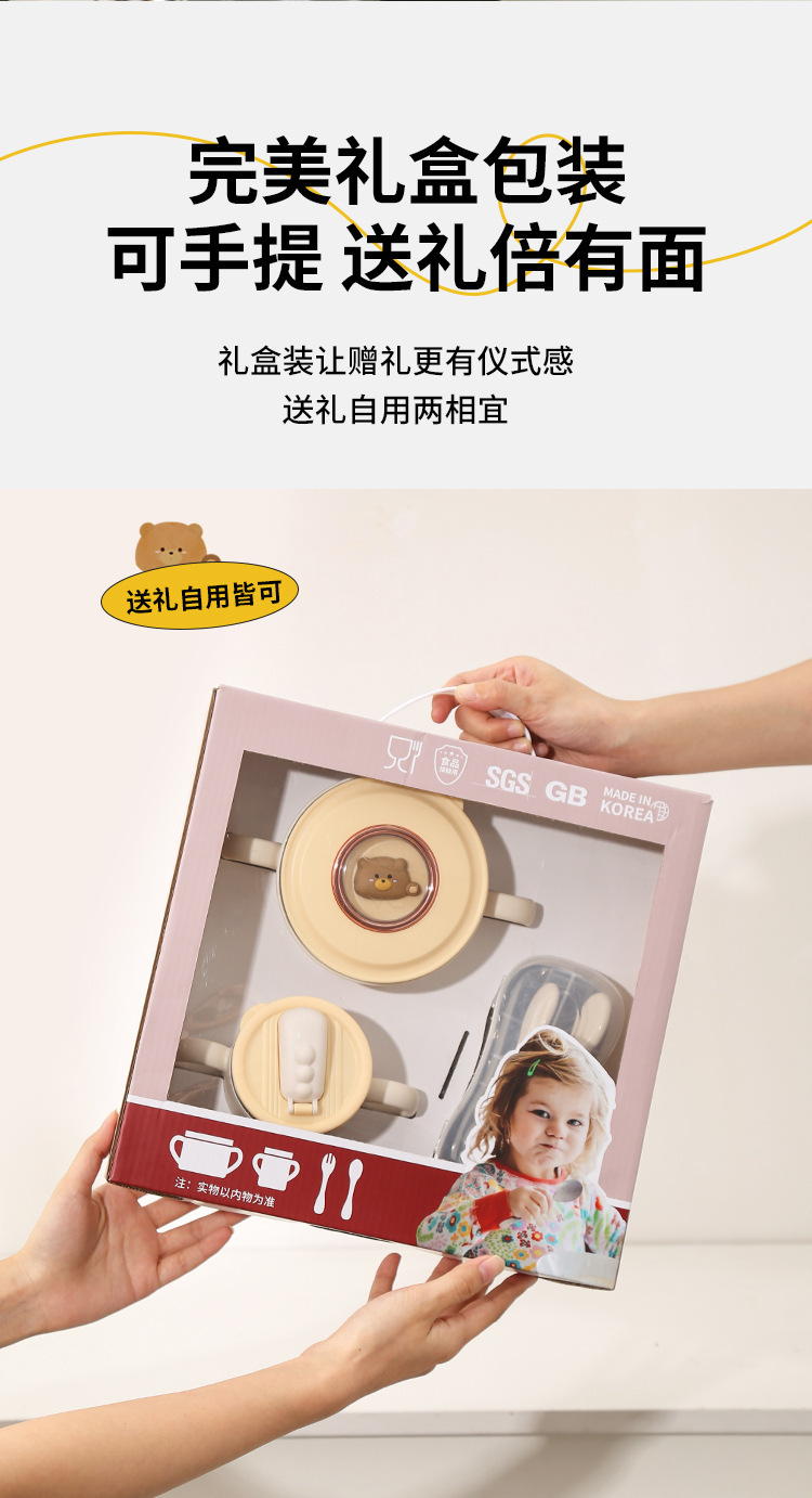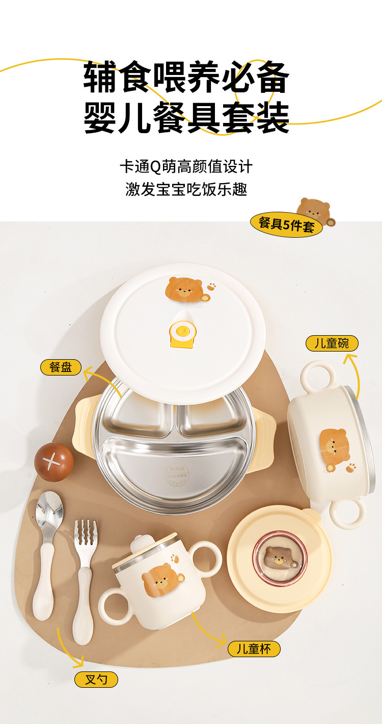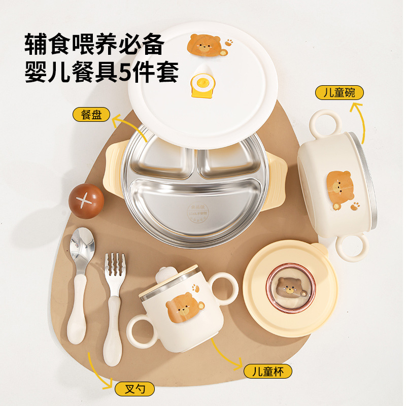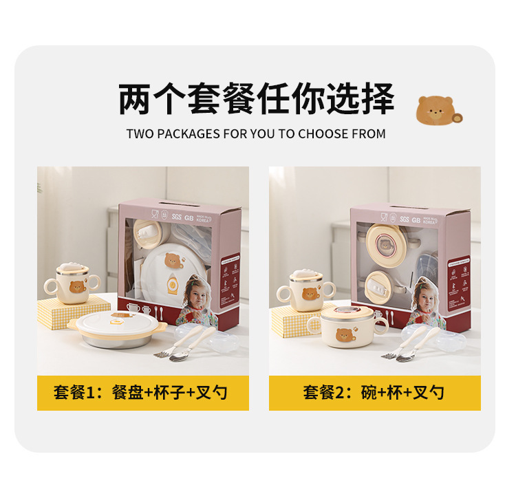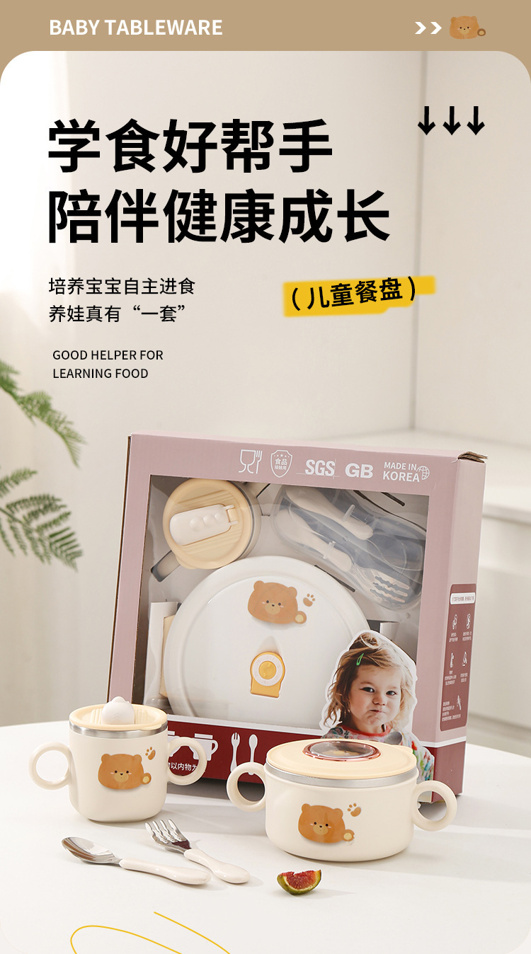 316 스테인레스 스틸 만화 어린이 세트 그릇 아기 유아 음식 그릇 먹는 식기 생일 선물 상자