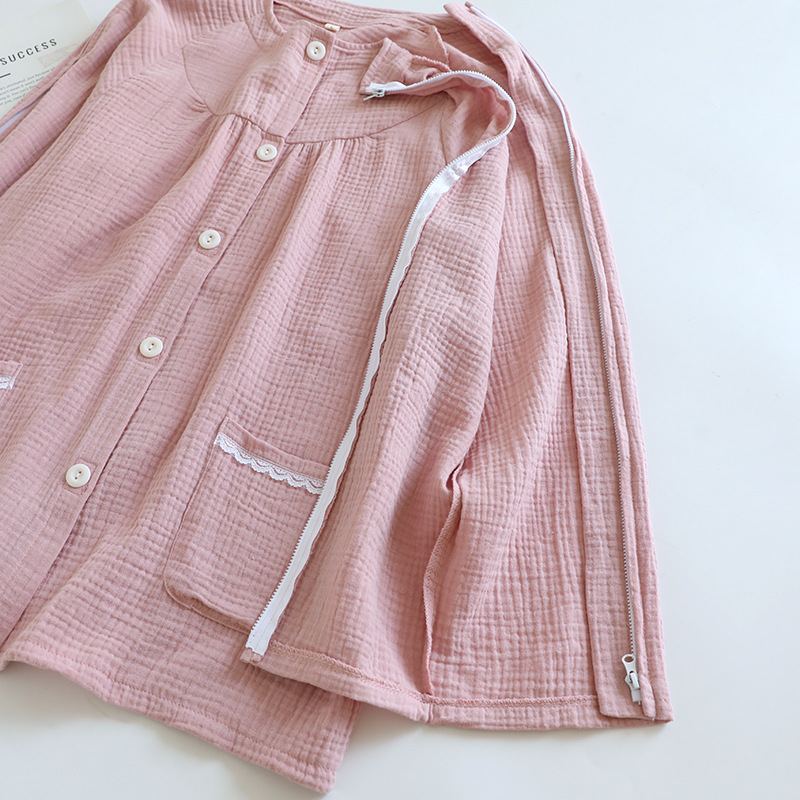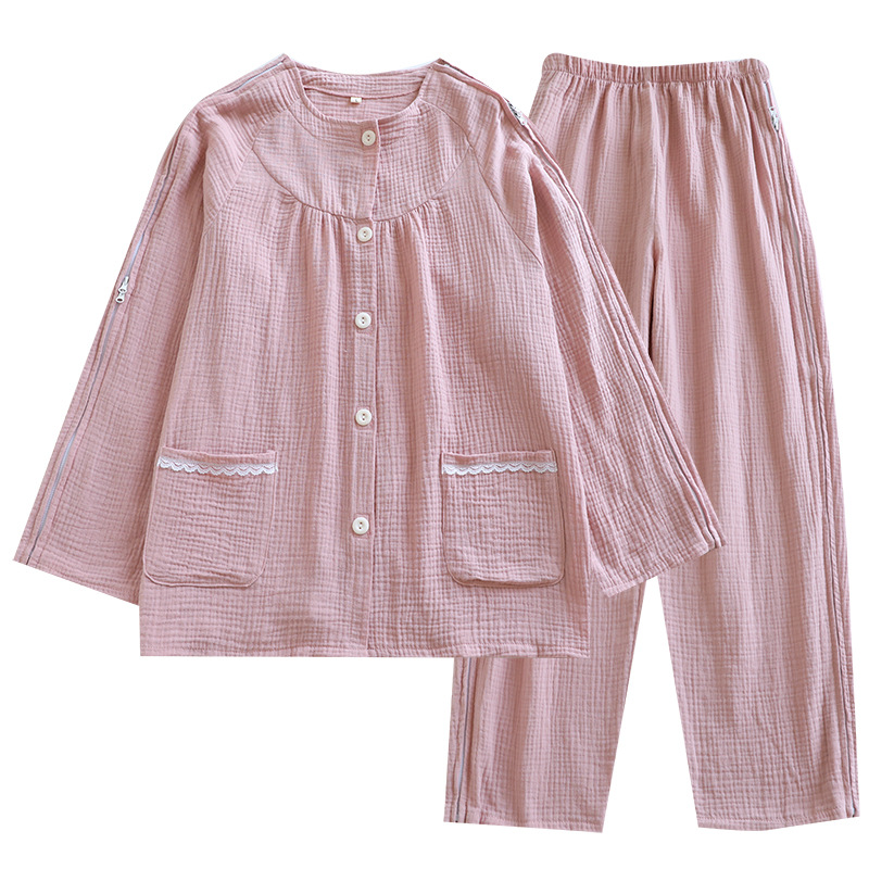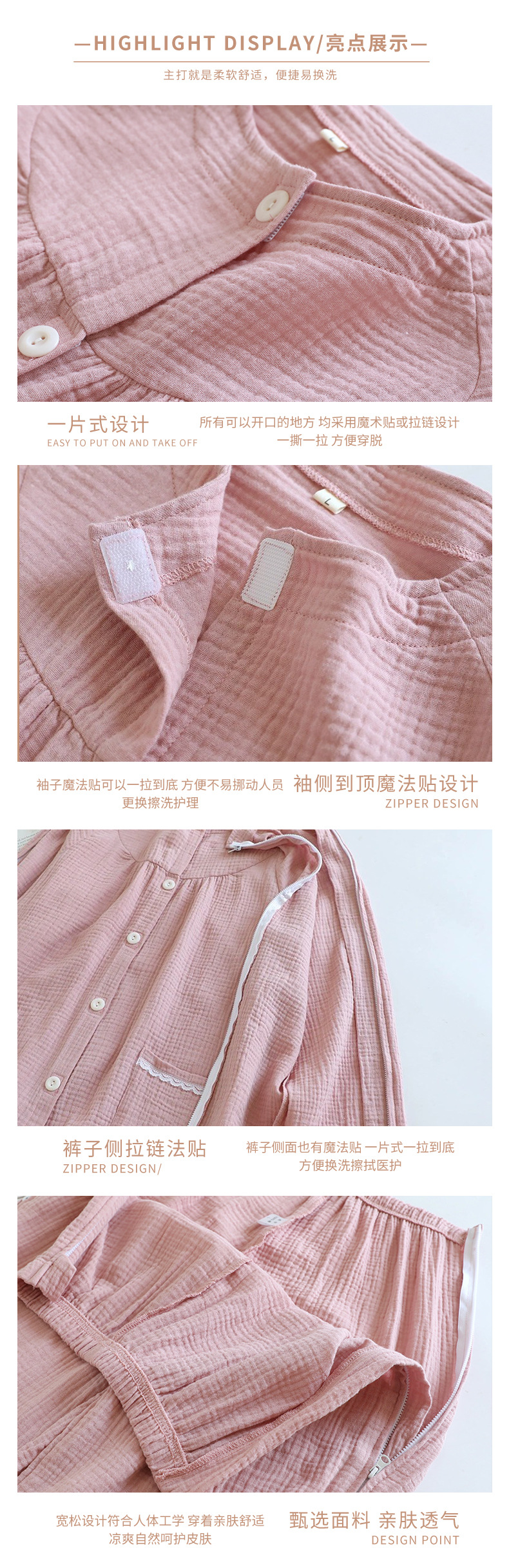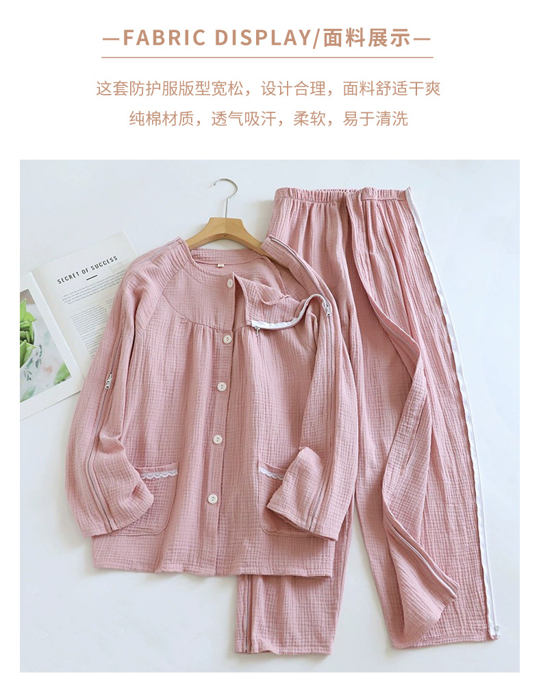 탈착이 용이한 여성용 단색 수술 후 골절 및 마비 침대 간호복 순면 얇은 통기성 투석 및 항암 재활복
