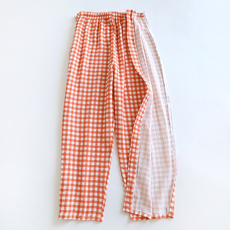 여성용 주황색 체크무늬 거즈 간호복 싱글피스 팬츠