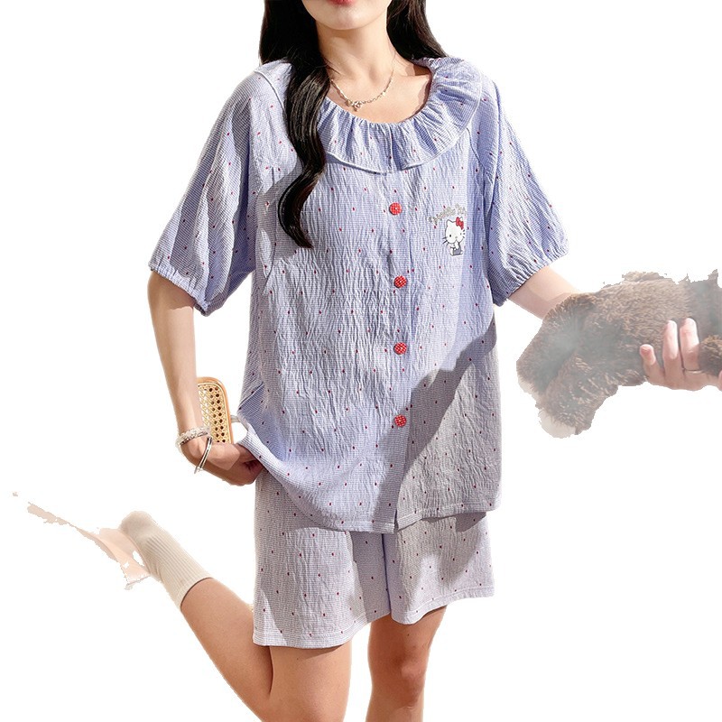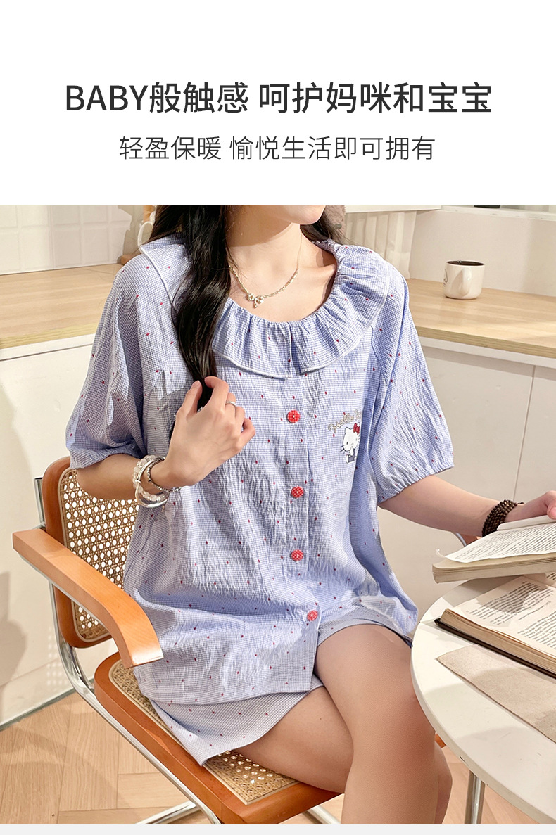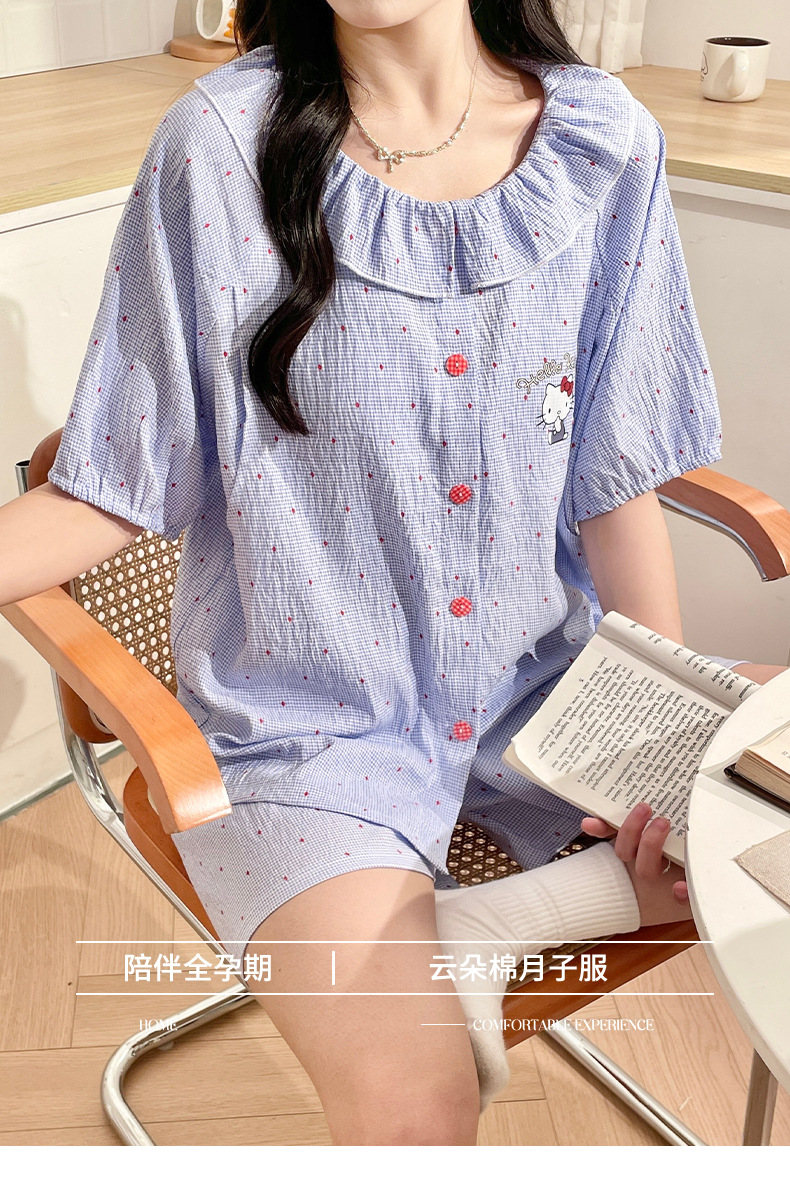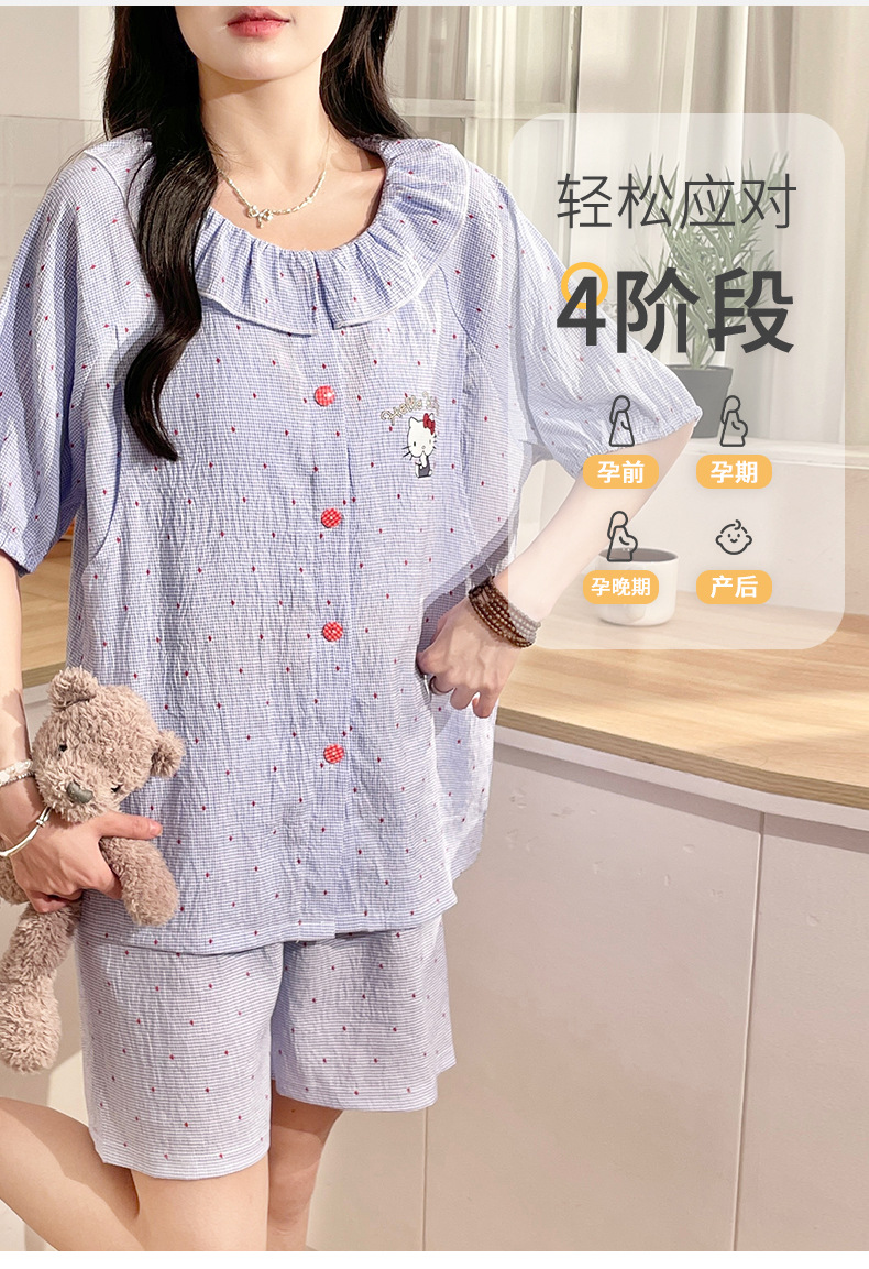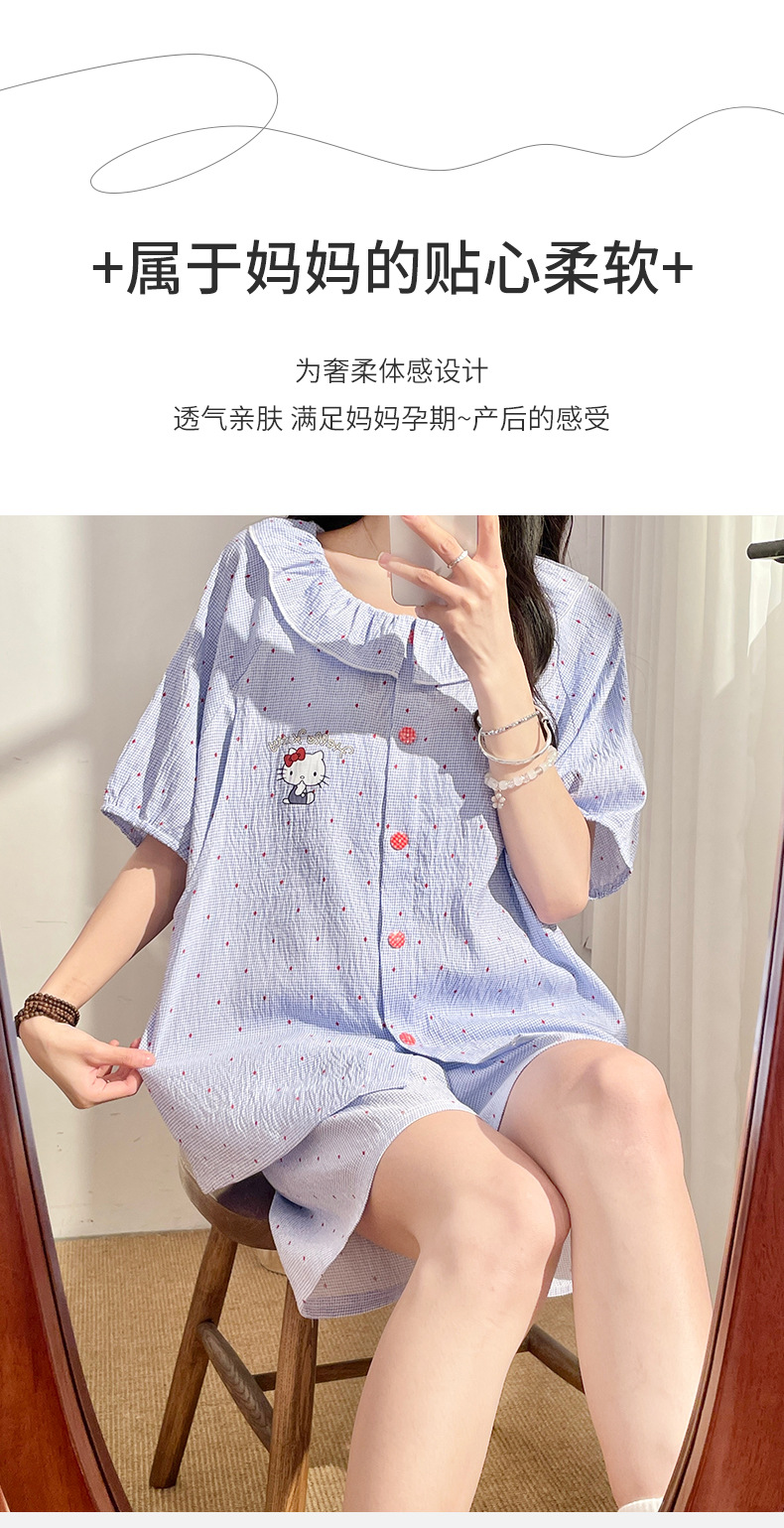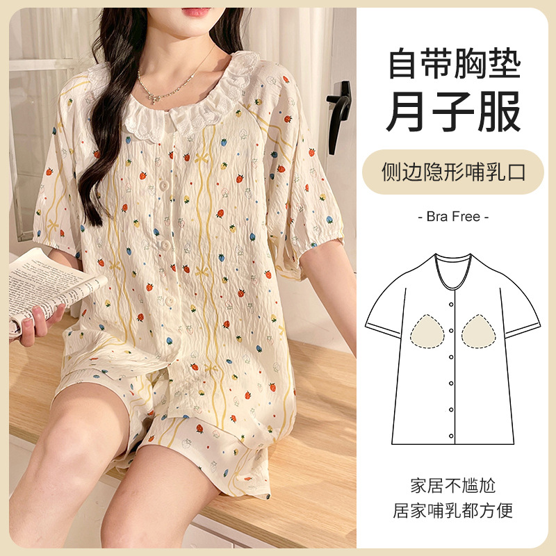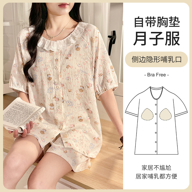 유두패드가 있는 클라우드 코튼 산후복, 여름용 얇은 산후 잠옷, 반팔반바지, 수유복, 산후복