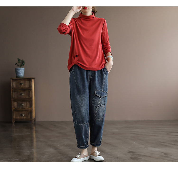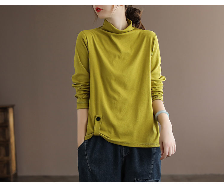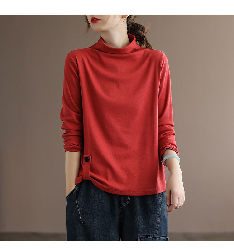 새로운 하이 넥 솔리드 컬러 다목적 긴팔 티셔츠 여성 플러스 사이즈 여성 루즈 슬리밍 셔츠 탑 트렌디 가을